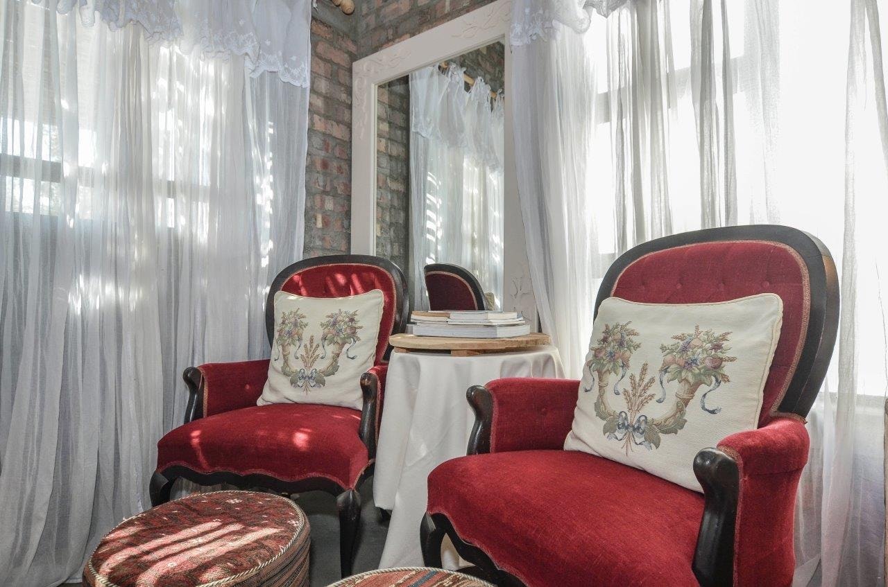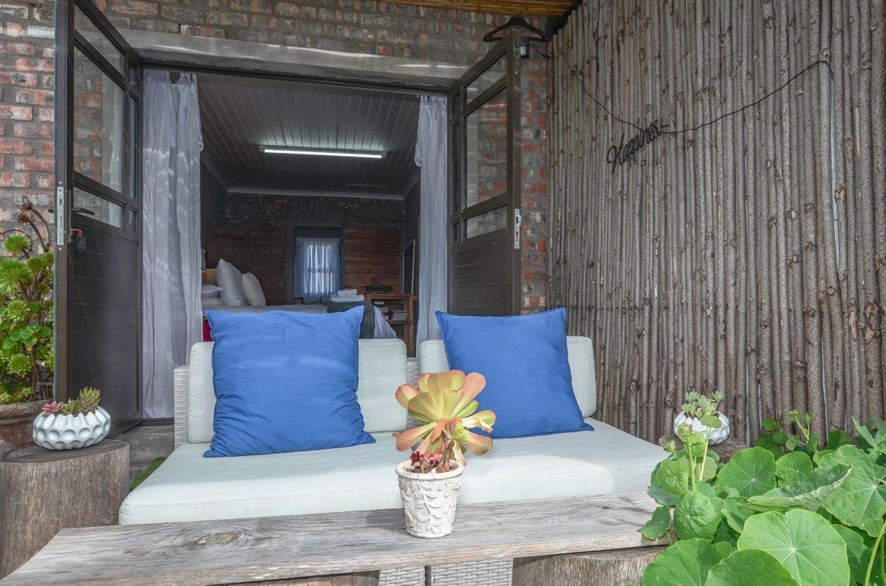 Die leefarea het sitplek, 'n TV met stroomdienste, 'n lessenaar en 'n kombuisie wat met 'n yskassie, eenplaatstoof, mikrogolf, broodrooster, lugbraaier en tee- en koffiemaakgeriewe toegerus is. Daar is 'n stoep wat met fynbos omring word.