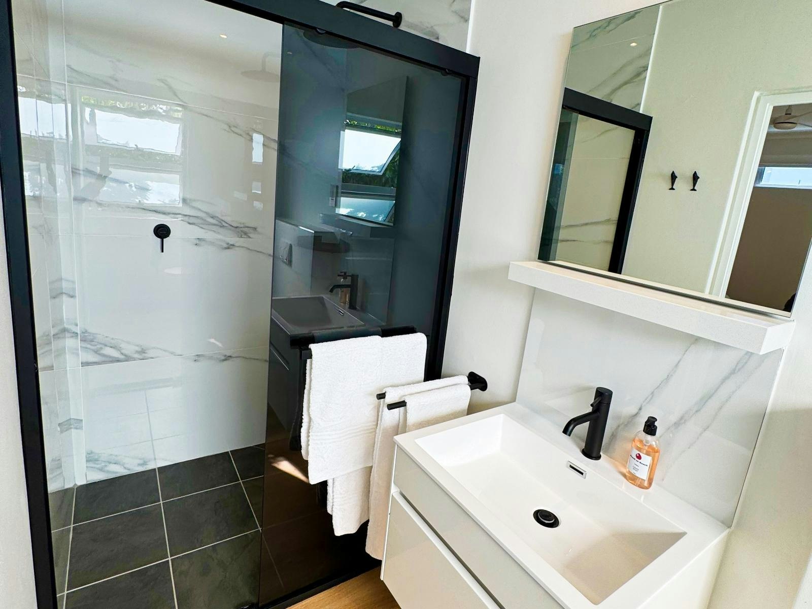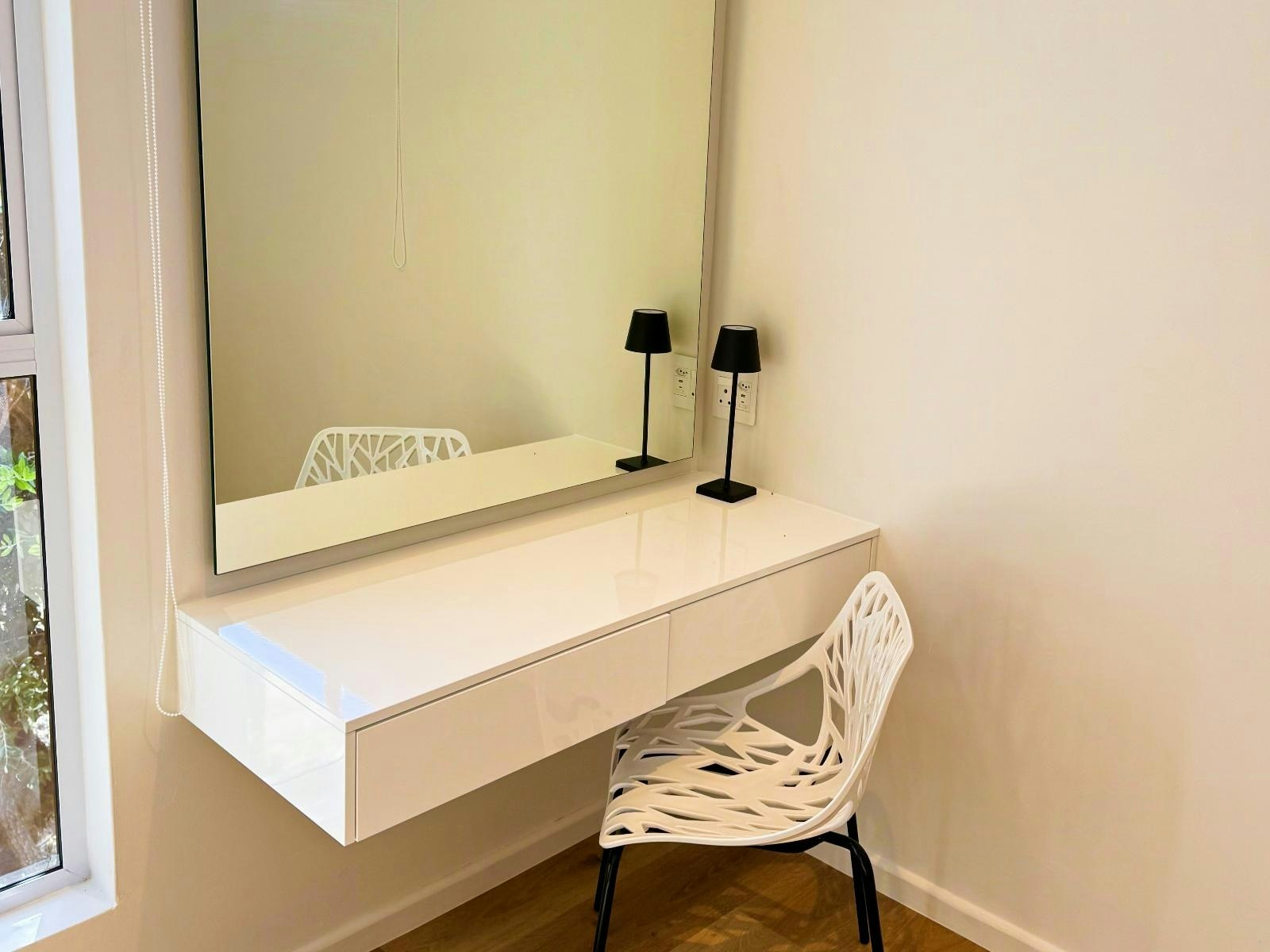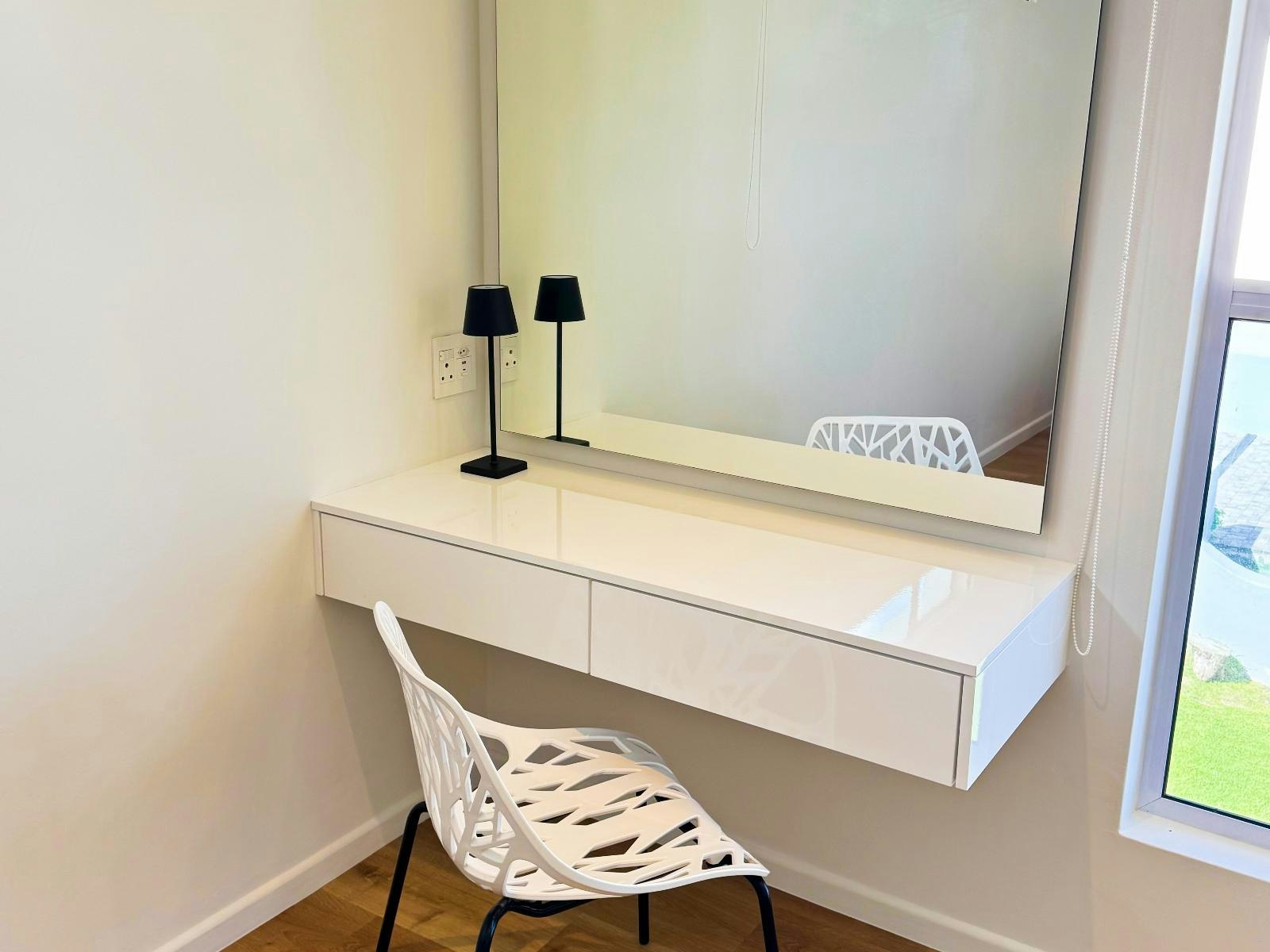 This unit can accommodate up to 6 guests and comprises 3 bedrooms and 3 bathrooms. All 3 of the bedrooms are furnished with a king-size bed and each room has access to their own en-suite bathroom. The first bedroom’s en-suite bathroom is open-plan and is fitted with a bath, shower, washbasin and toilet. The 2 other bedroom’s en-suite bathrooms are fitted with a shower. Linen and bath towels are provided.