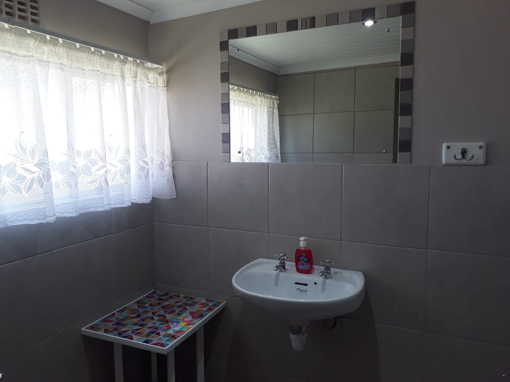 The accommodation can accommodate up to 14 guests across 6 units. Bossiegeur is a spacious self-catering unit with 2 bedrooms, each with an en-suite bathroom fitted with a shower. The main bedroom has a double bed, while the second bedroom has 2 single beds. The open-plan living area features an indoor braai and a fully equipped kitchen and overlooks the garden.