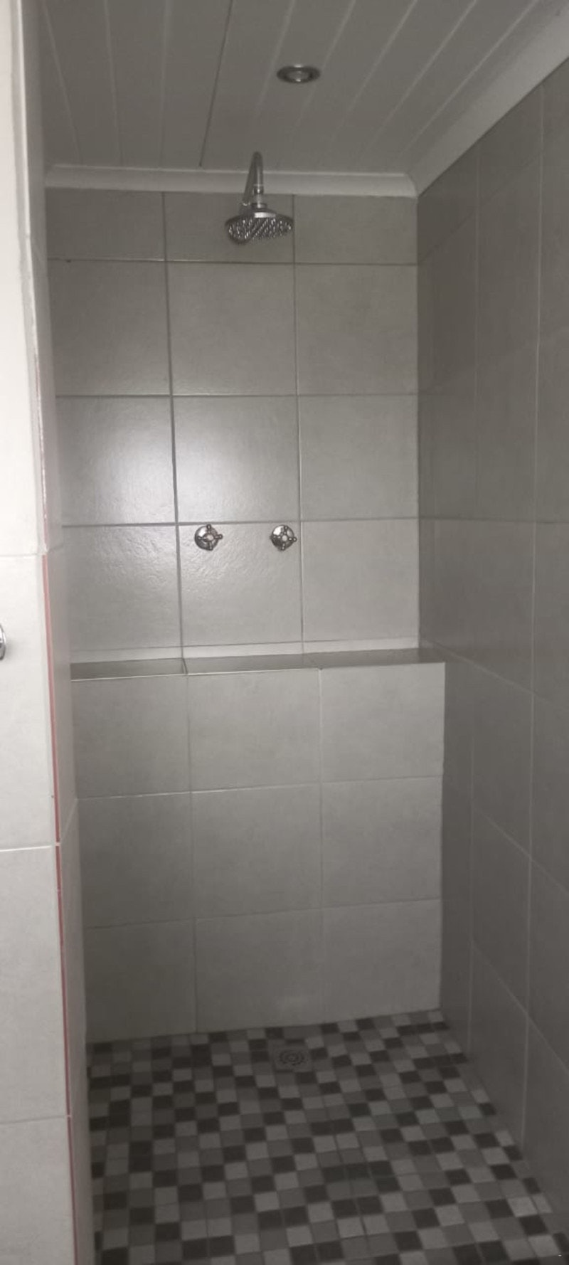 Die Stoepkamer is furnished with 2 single beds and has an en-suite bathroom with a shower. This unit is not fully self-catering but includes a coffee station, microwave, and bar fridge. It has a private entrance from the stoep.