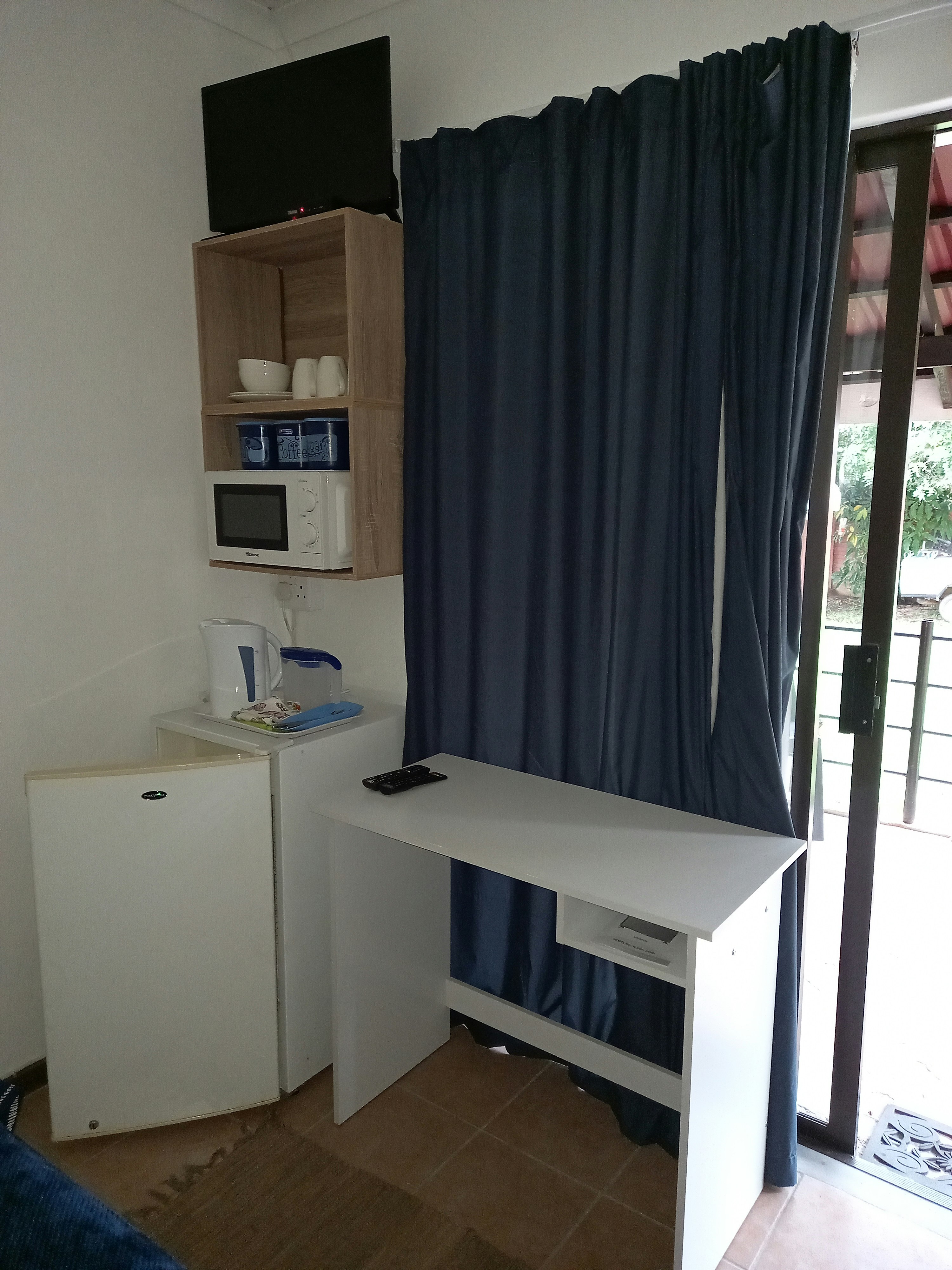 The first unit has a private entrance and is furnished with a double bed. It has a private bathroom fitted with a shower and a toilet. For convenience, linen and towels are provided. The kitchenette is equipped with a microwave, a bar fridge, as well as tea- and coffee-making facilities. The unit also has a TV with DStv.