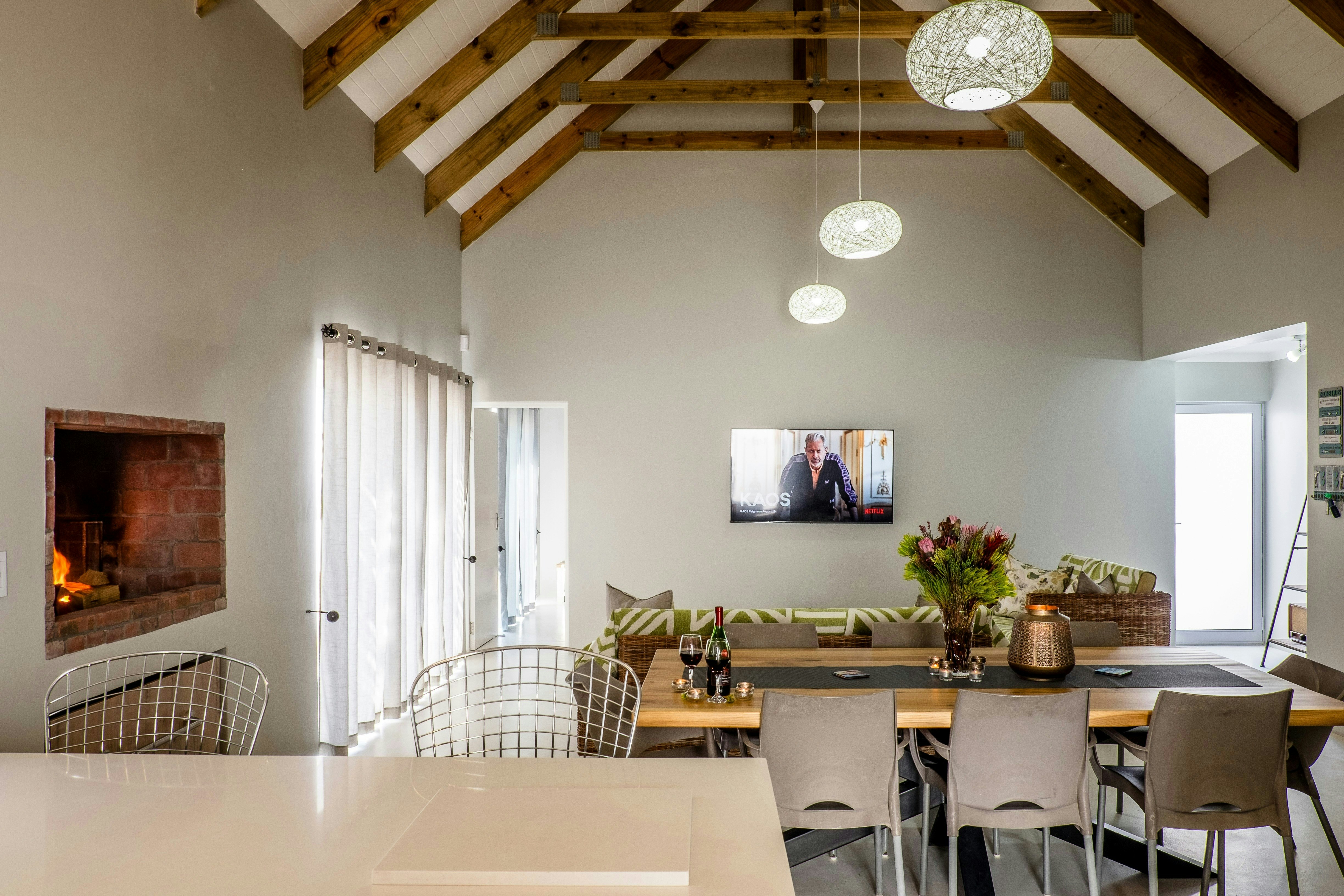 Die oopplan-leefarea beskik oor 'n kombuis wat volledig toegerus is met 'n gasstoof, elektriese oond, mikrogolf, yskas-vrieskas, koffiemasjien, skottelgoedwasser, eetgerei en breekware asook 'n ontbyttoonbank met stoele. Vanuit hierdie kombuis lei 'n eetarea met oorgenoeg sitplek vir almal om hul maaltye saam te geniet. Hierdie spasie het ook 'n ingeboude braai. Die sitarea het gemaklike sitplek en 'n slim-TV. Toegang tot gratis WiFi is beskikbaar.
