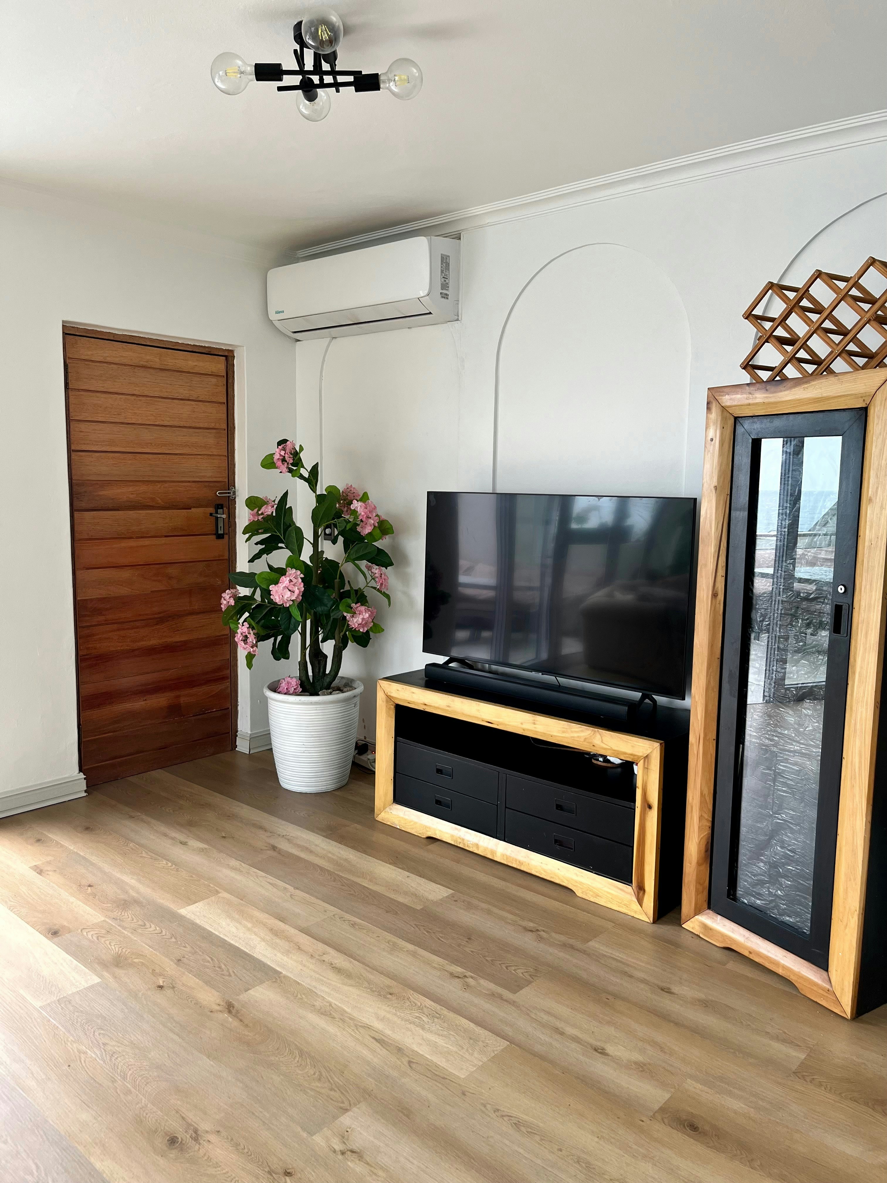Dié woonstel bied slaapplek aan 6 gaste en beskik oor 3 slaapkamers en 2 badkamers. Die hoofslaapkamer het 'n koningingrootte-bed en 'n en suite-badkamer met 'n stort. Die ander 2 slaapkamers het elk 2 enkelbeddens en gaste deel 'n tweede badkamer met 'n stort-oor-bad. Alle linne word voorsien, maar gaste moet hul eie handdoeke saambring.