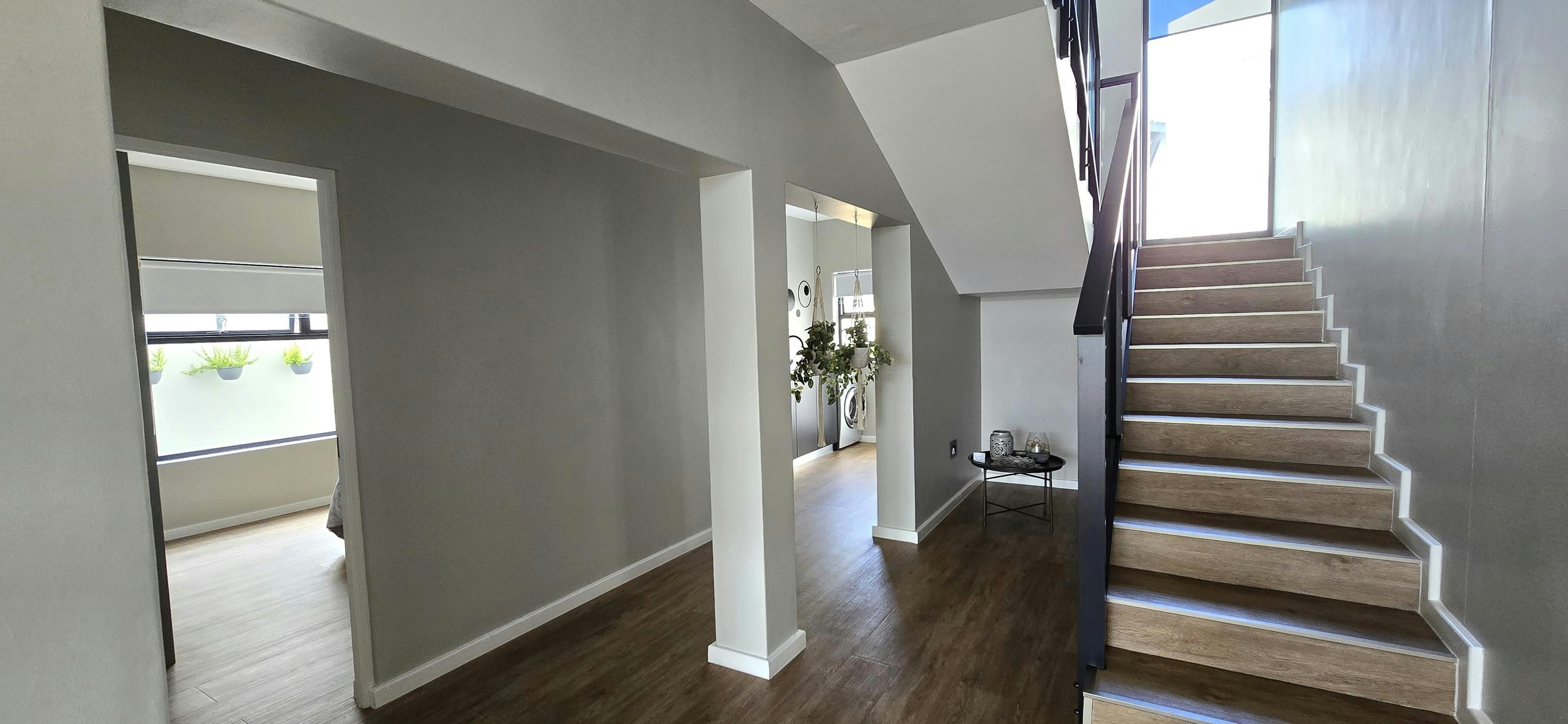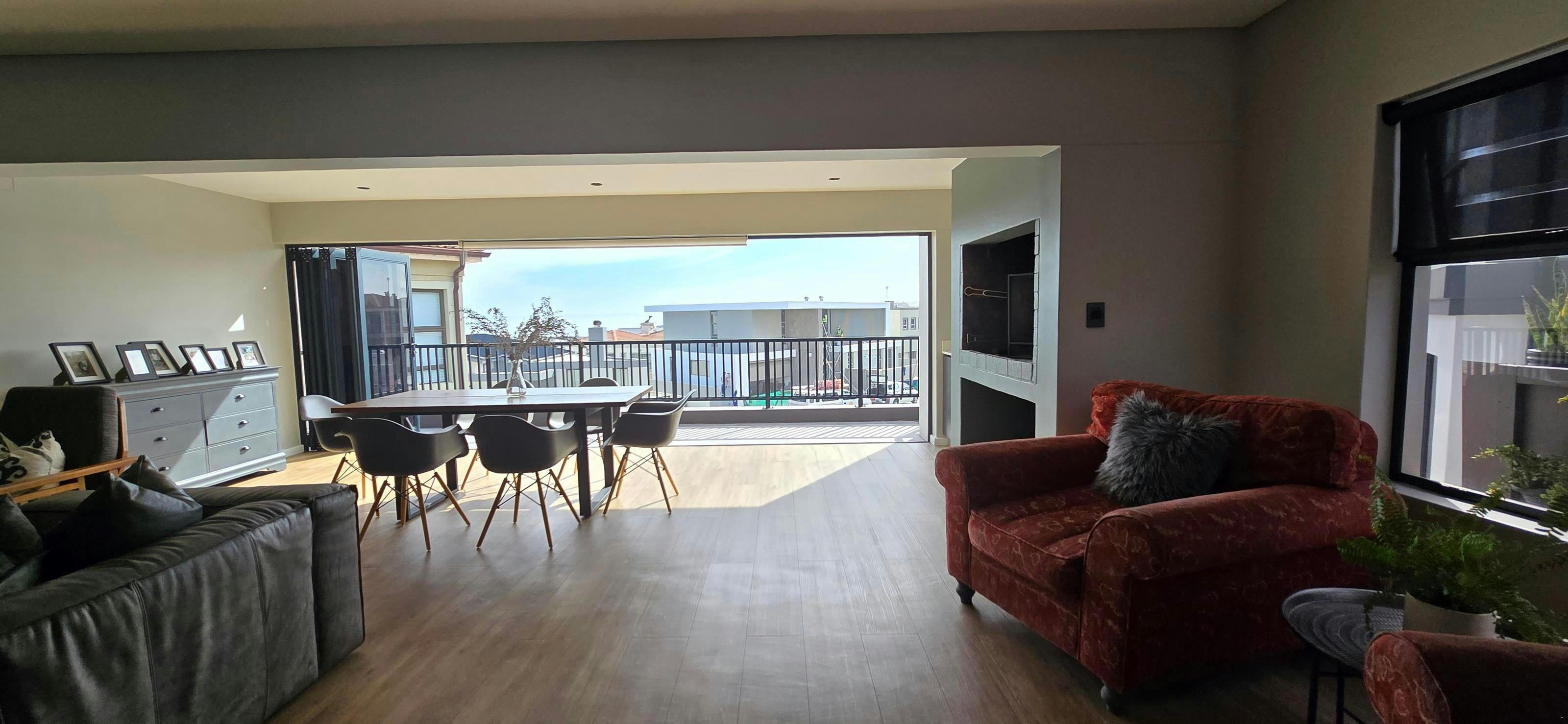 The kitchen is well-equipped with fridge-freezer, microwave, gas stove, dishwasher, cutlery, crockery, and tea- and coffee-making facilities. A washing machine is available downstairs. The living area includes a TV, comfortable couches, a dining table, and a built-in braai opening onto a balcony. Complimentary Wi-Fi and secure parking are available to guests during their stay.