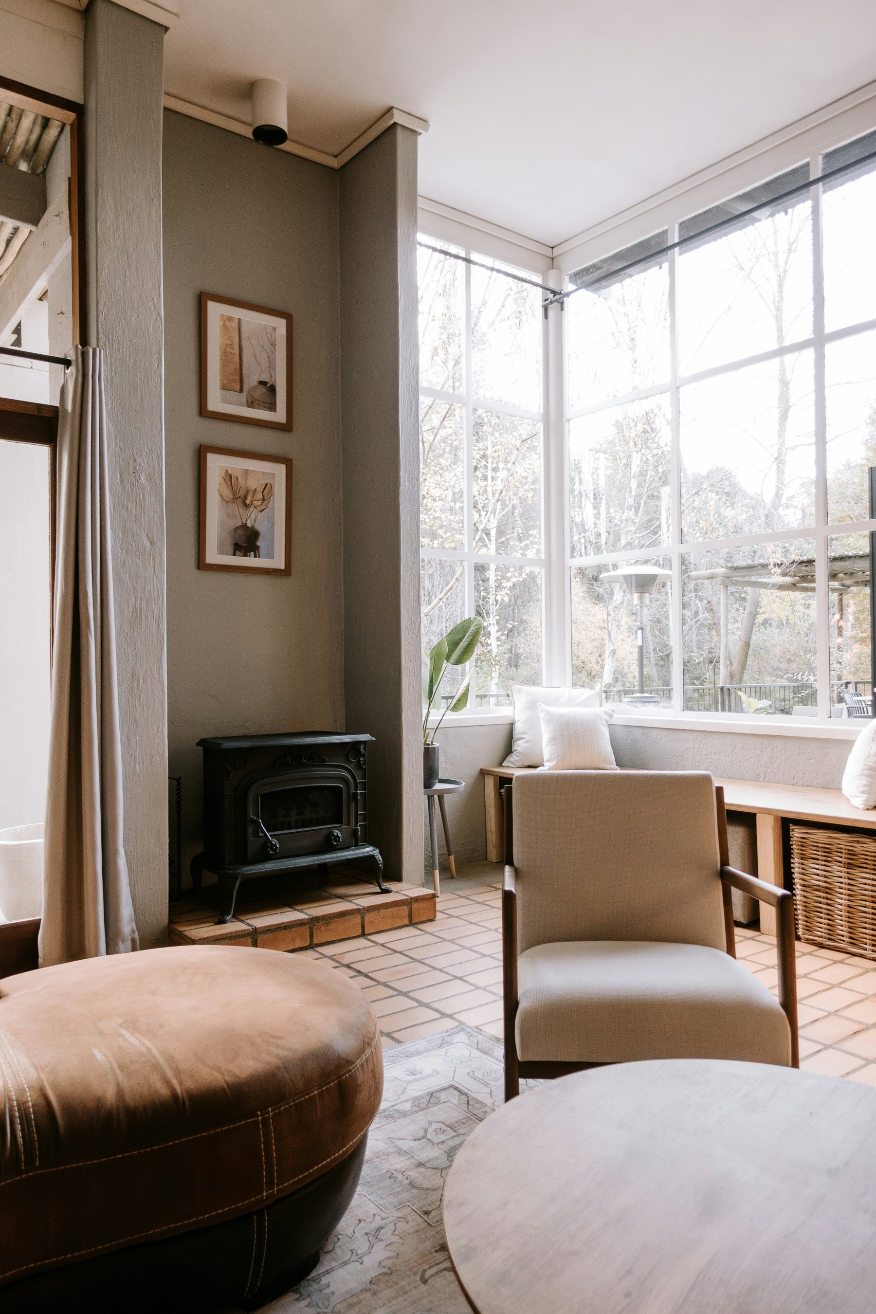 Die leefarea beskik oor 'n sitkamer met gemaklike sitplek, 'n TV en 'n kaggel. Die kombuis is volledig toegerus met 'n yskas, gasstoof, oond, mikrogolfoond en Nespresso-koffiemasjien.