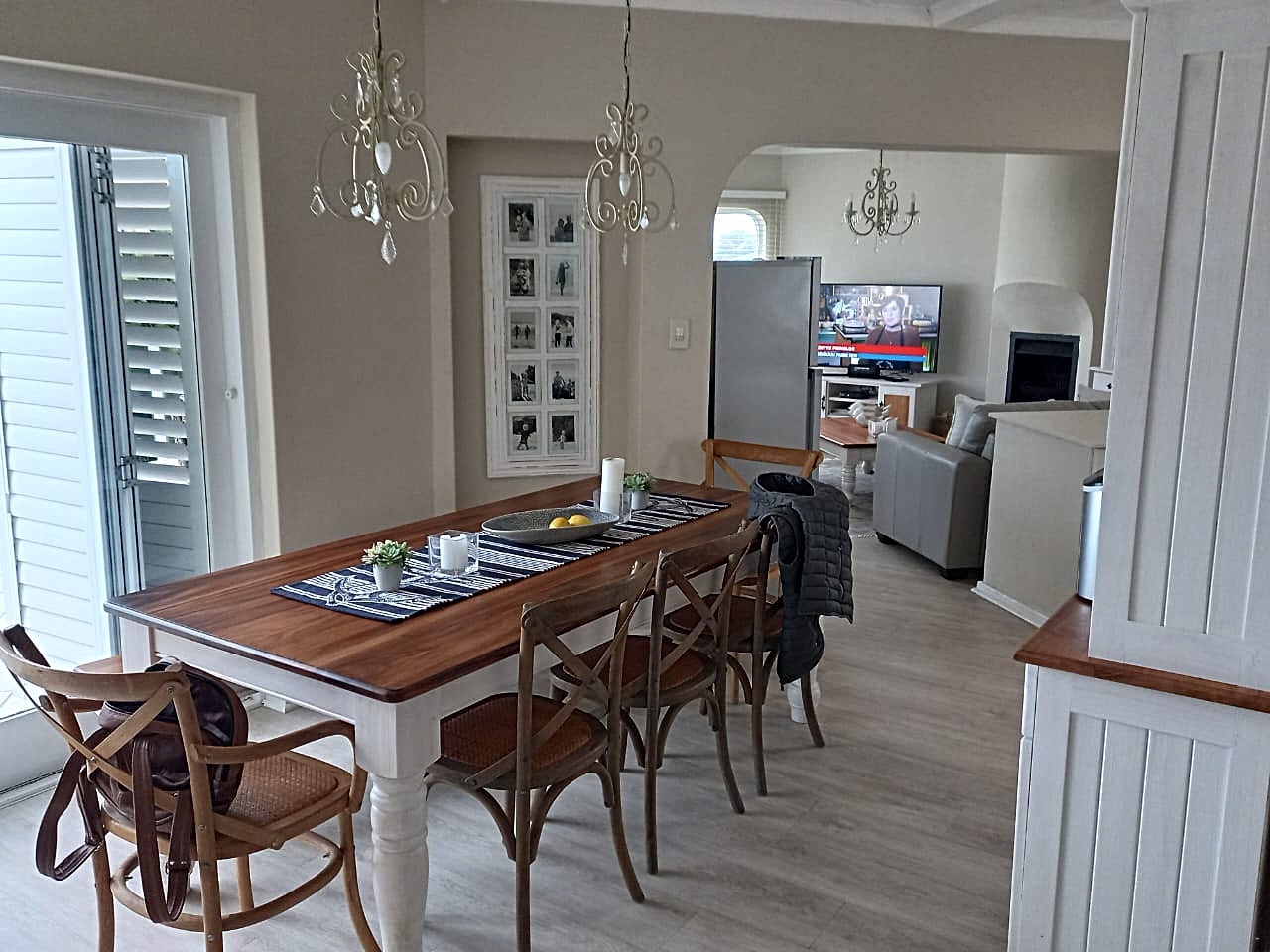 Die ruim leefarea beskik oor 'n kombuis wat met 'n gasstoof, elektriese oond, mikrogolf, yskas-vrieskas, Nespresso-koffiemasjien, eetgerei, breekware en 'n skottelgoedwasser toegerus is. Die kombuis grens aan 'n etenstafel met genoeg sitplek sodat gaste maaltye saam kan nuttig. Die knus sitarea het gemaklike sitplek, 'n kaggel en 'n platskerm-TV met DStv en Netflix. Gratis WiFi is beskikbaar regdeur die huis.