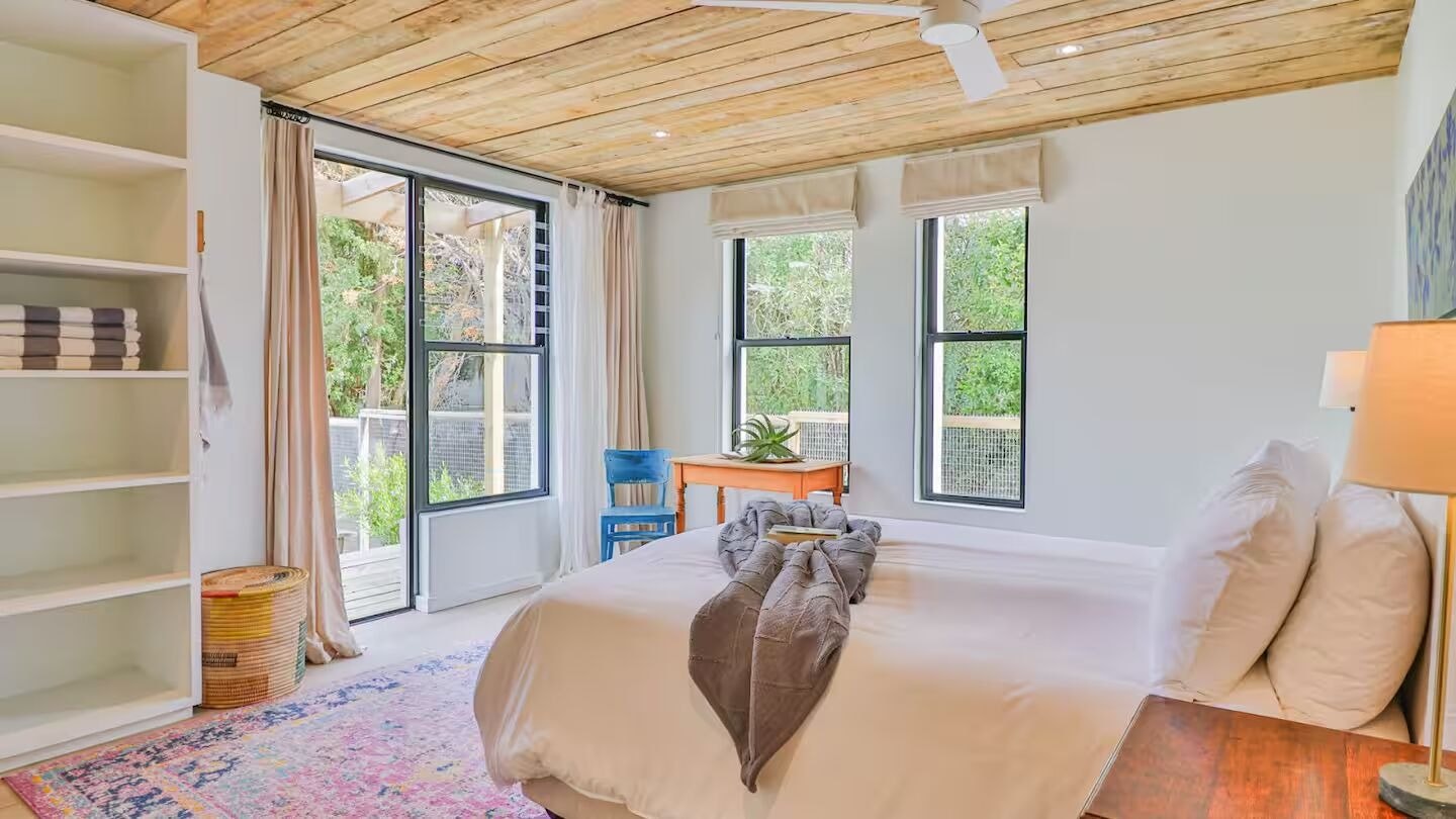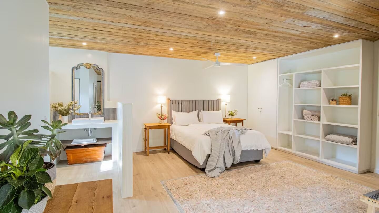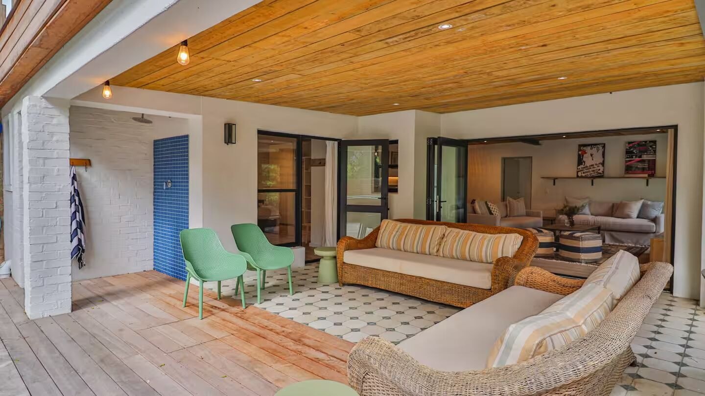 Poplar House is an expansive home that sleeps up to 12 guests in 5 beautifully appointed bedrooms and features 5 bathrooms, 4 of which are en-suite. The property includes a sparkling swimming pool with sun loungers, an outdoor shower, a built-in braai on the deck, and a wood-burning fireplace in the main lounge.