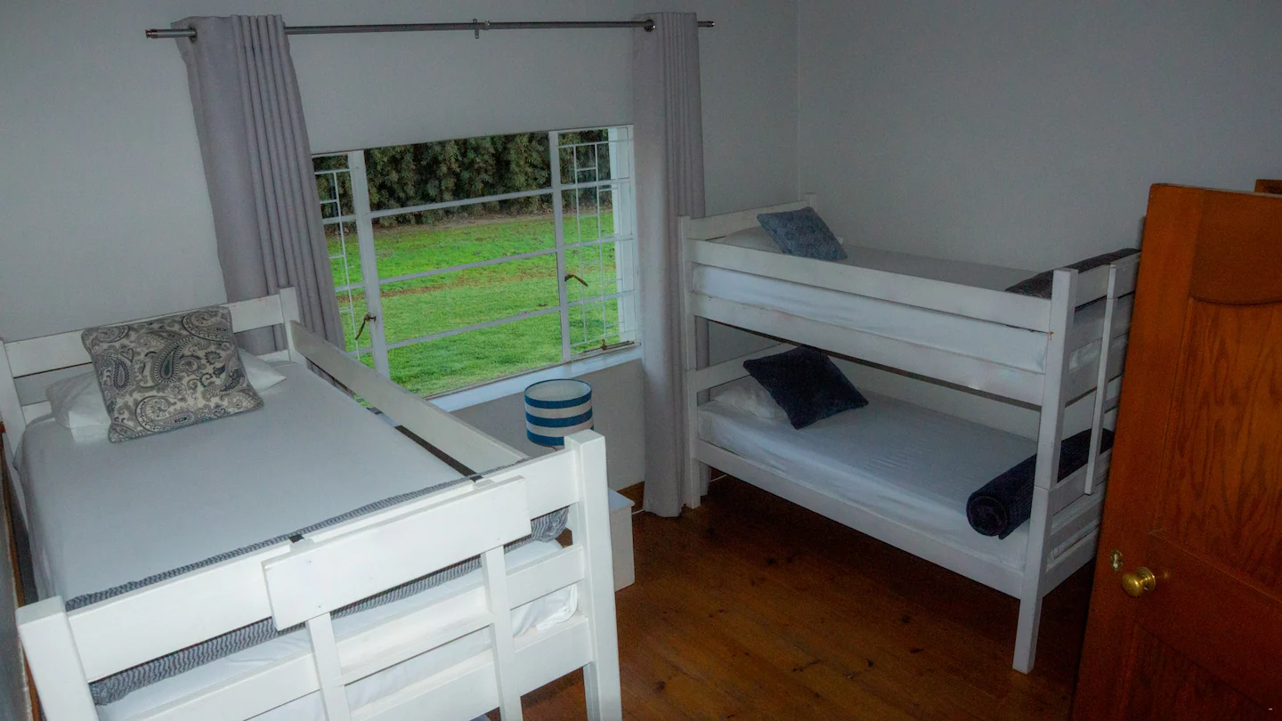 The Farmhouse sleeps 12 guests in 5 bedrooms and is furnished with 2 king-size beds, a queen bed, 2 singles, and 2 bunk beds. There are 3 bathrooms.