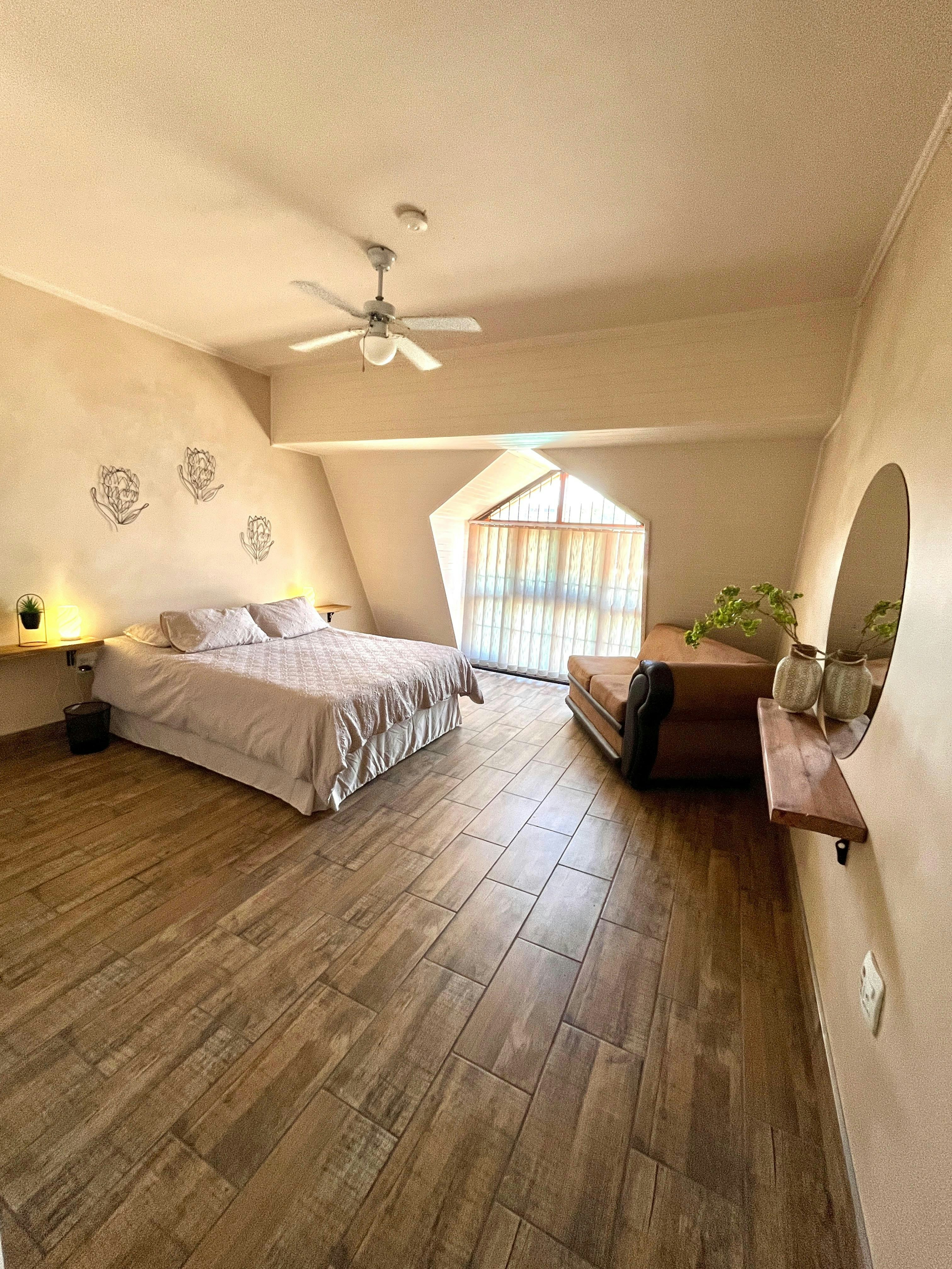 Gaste in Eenheid A kan 'n privaat balkon met sitplek geniet. Plaaslike geriewe soos winkels en restaurante is naby, met die Bram Fischer Internasionale Lughawe ongeveer 13 km weg. Besienswaardighede in die omgewing sluit in die Oliewenhuis Kunsmuseum, SA Pantsermuseum, en Naval Hill Natuurreservaat en Planetarium.