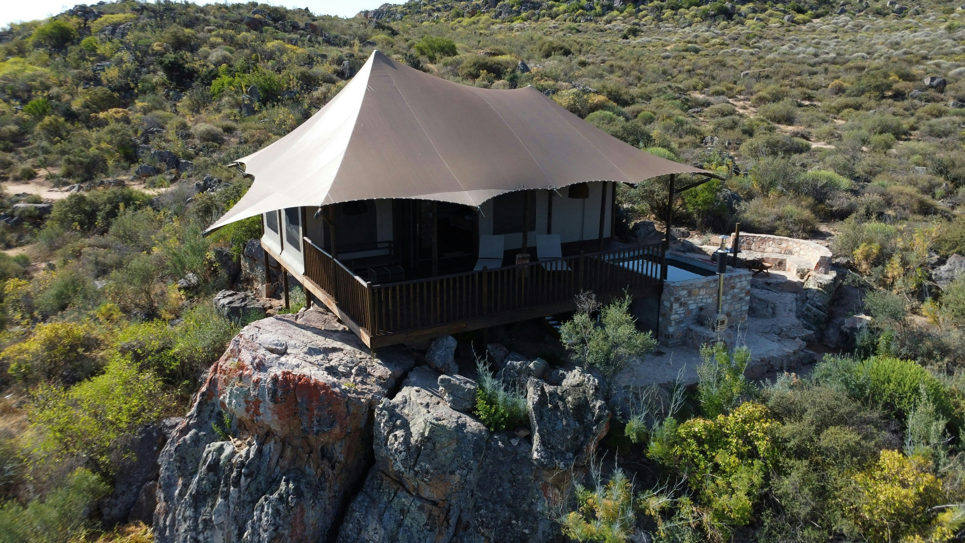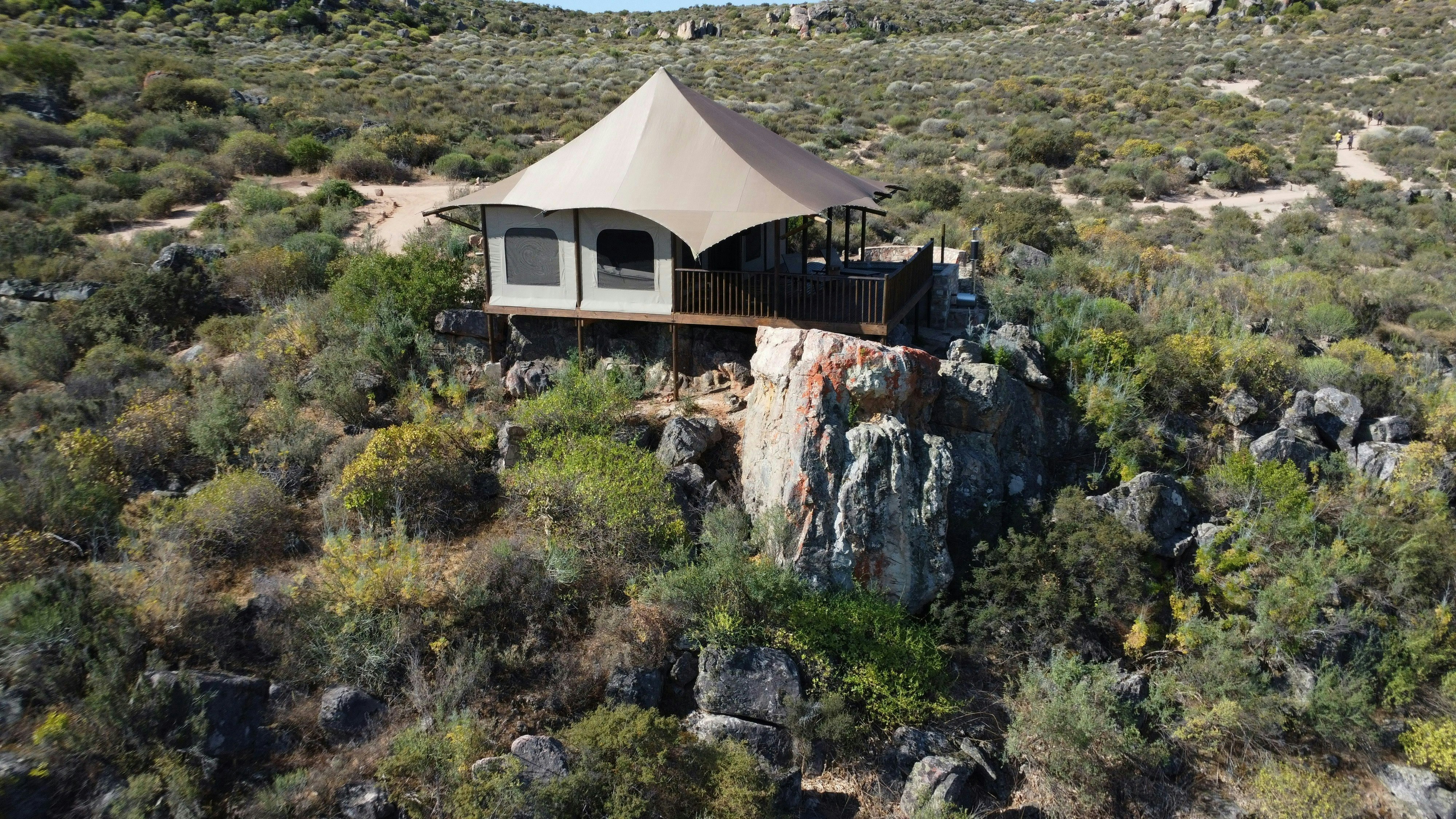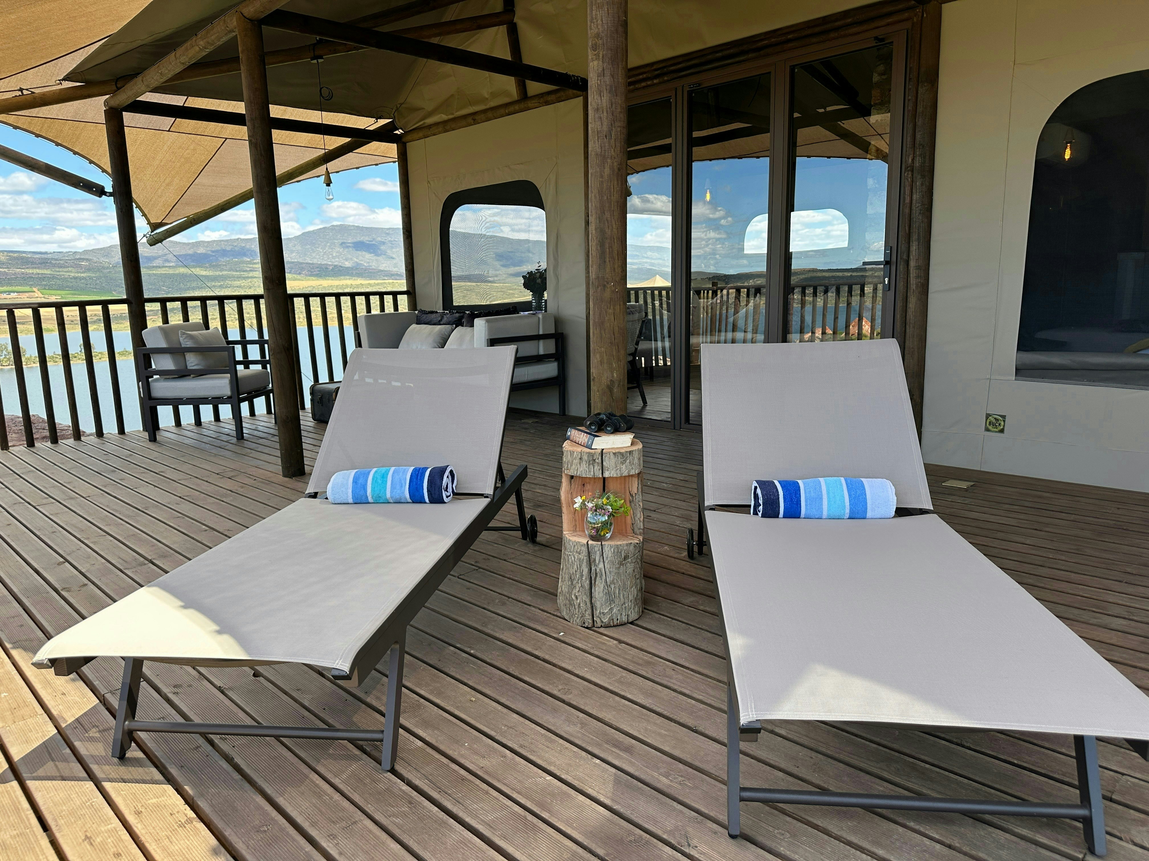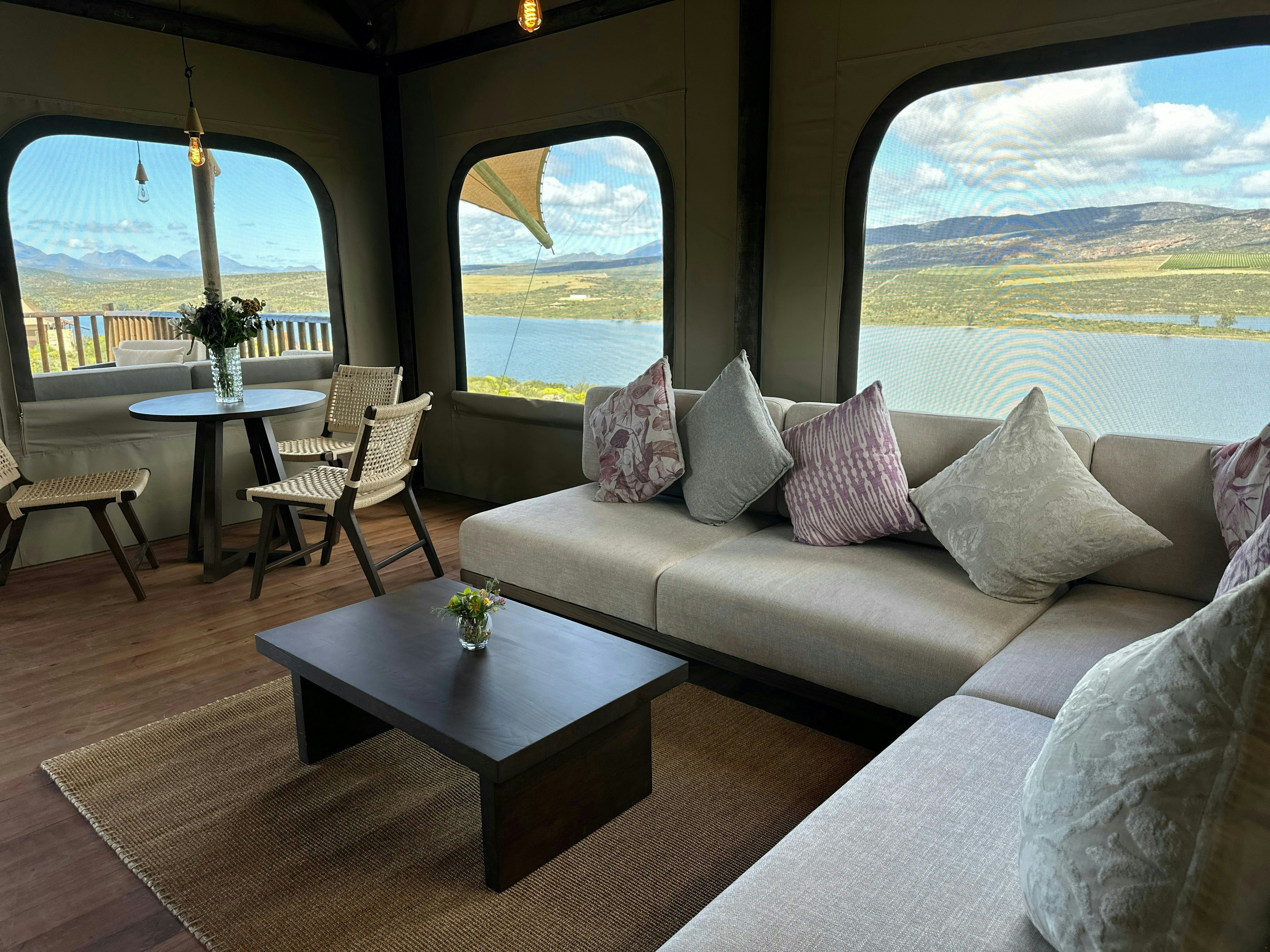 Premium Glamping Villa @ Yamu Lifestyle Resort is 'n unieke wegbreekplek in die pragtige Sederberge, net 2 uur vanaf Kaapstad. Met uitsig oor die rustige Clanwilliam-waterliggaam, kombineer die oord moderne gerief perfek met die skoonheid van die natuur. Gebou met volhoubaarheid in gedagte, werk dit van die kragnetwerk af en word aangedryf deur hernubare energie, wat 'n indrukwekkend lae omgewingsvoetspoor van slegs 7-8% handhaaf.
