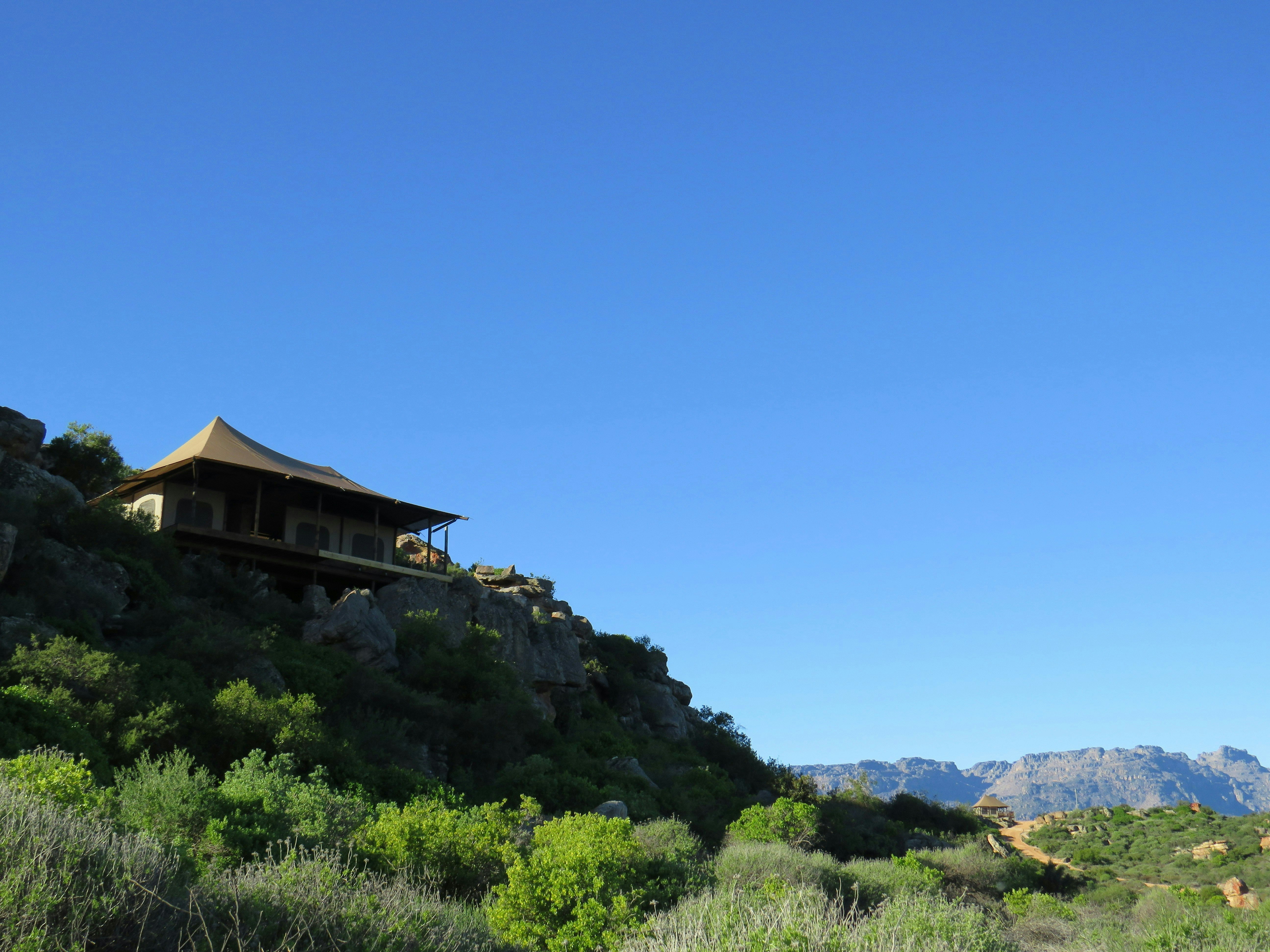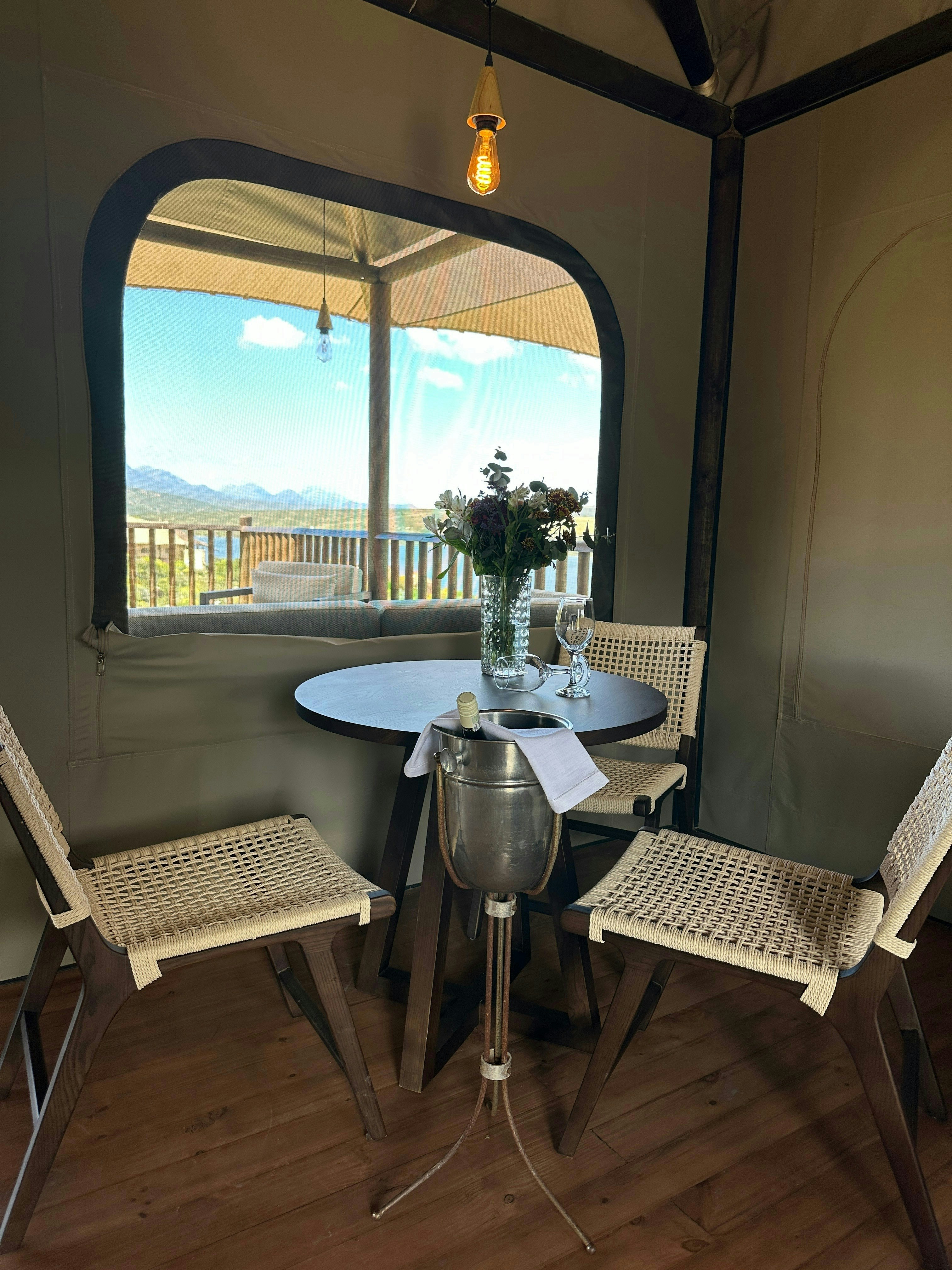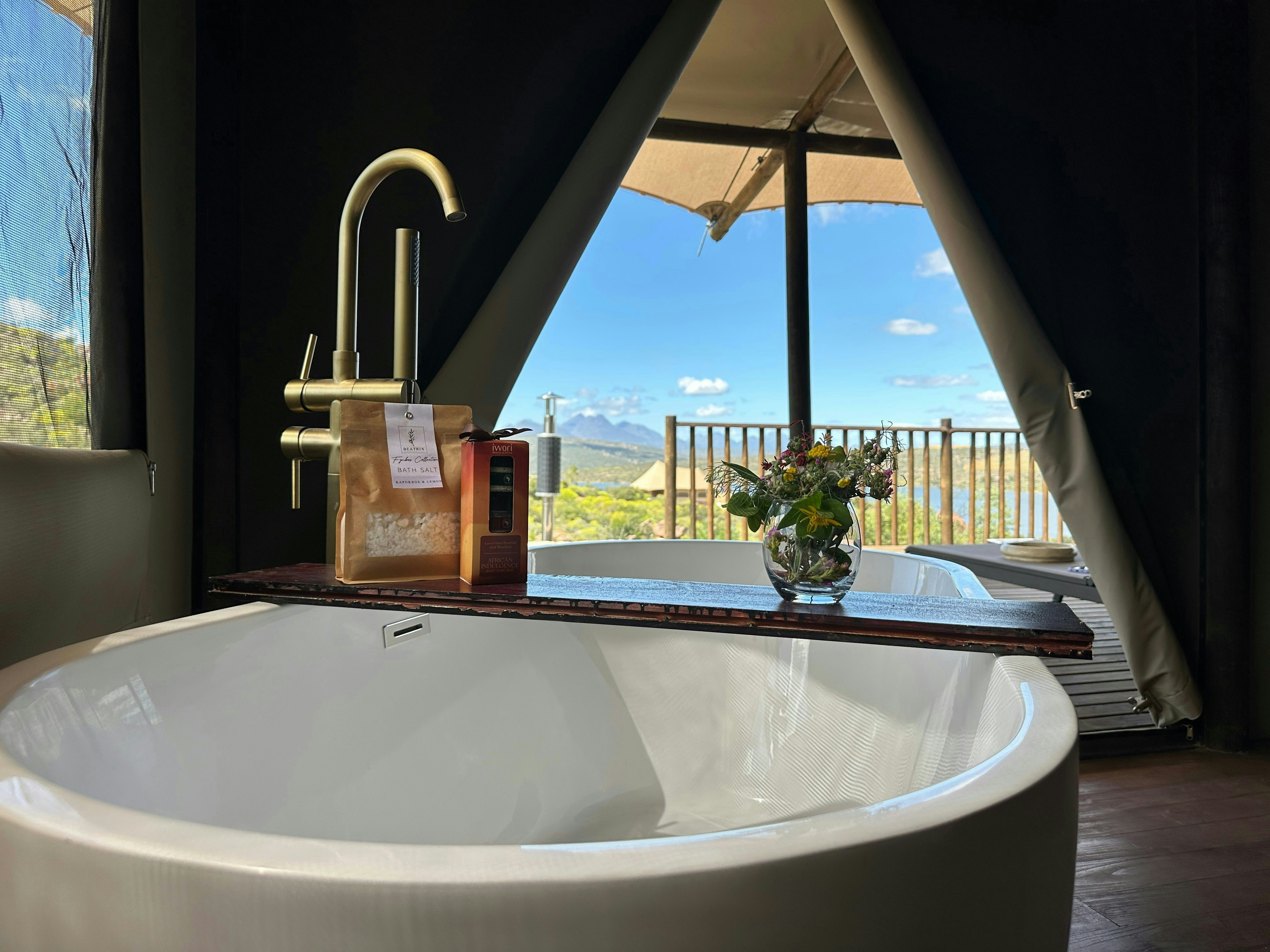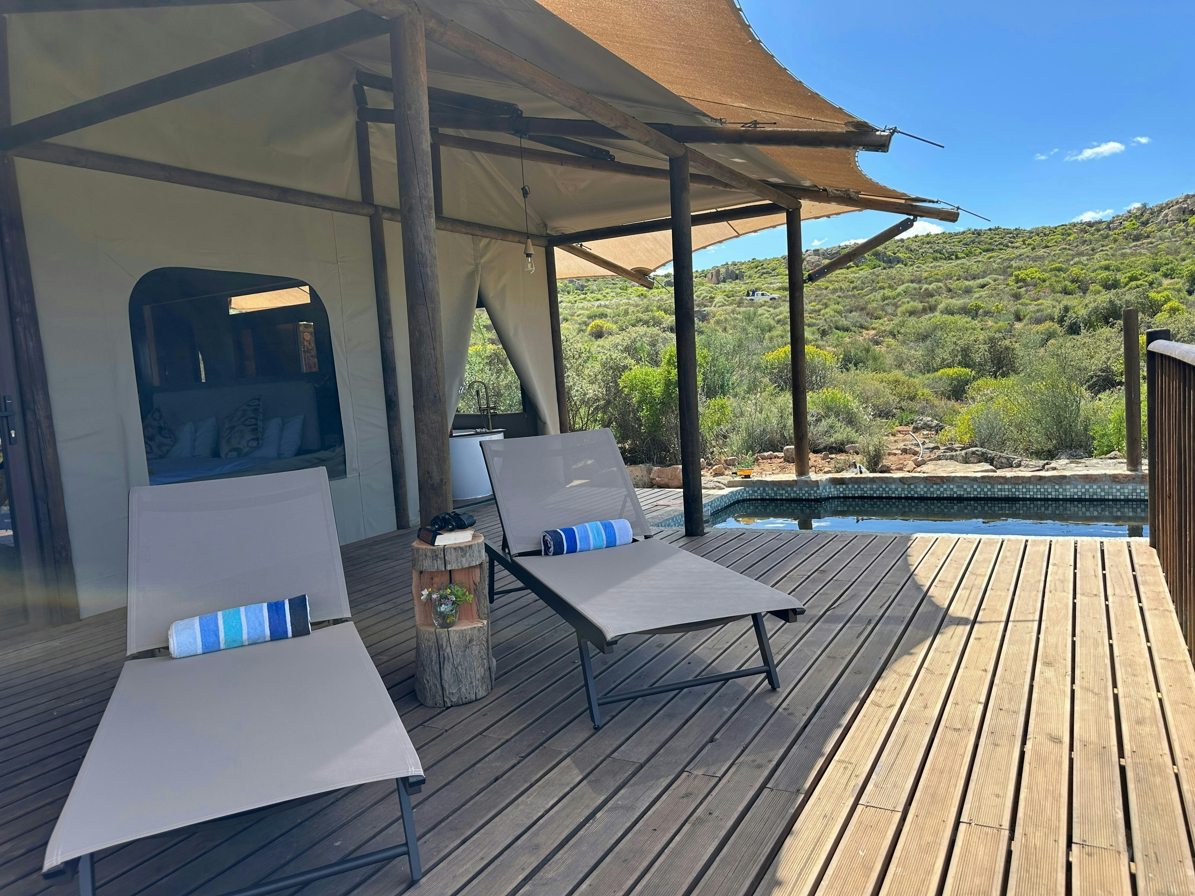 Premium Glamping Villa @ Yamu Lifestyle Resort is 'n unieke wegbreekplek in die pragtige Sederberge, net 2 uur vanaf Kaapstad. Met uitsig oor die rustige Clanwilliam-waterliggaam, kombineer die oord moderne gerief perfek met die skoonheid van die natuur. Gebou met volhoubaarheid in gedagte, werk dit van die kragnetwerk af en word aangedryf deur hernubare energie, wat 'n indrukwekkend lae omgewingsvoetspoor van slegs 7-8% handhaaf.