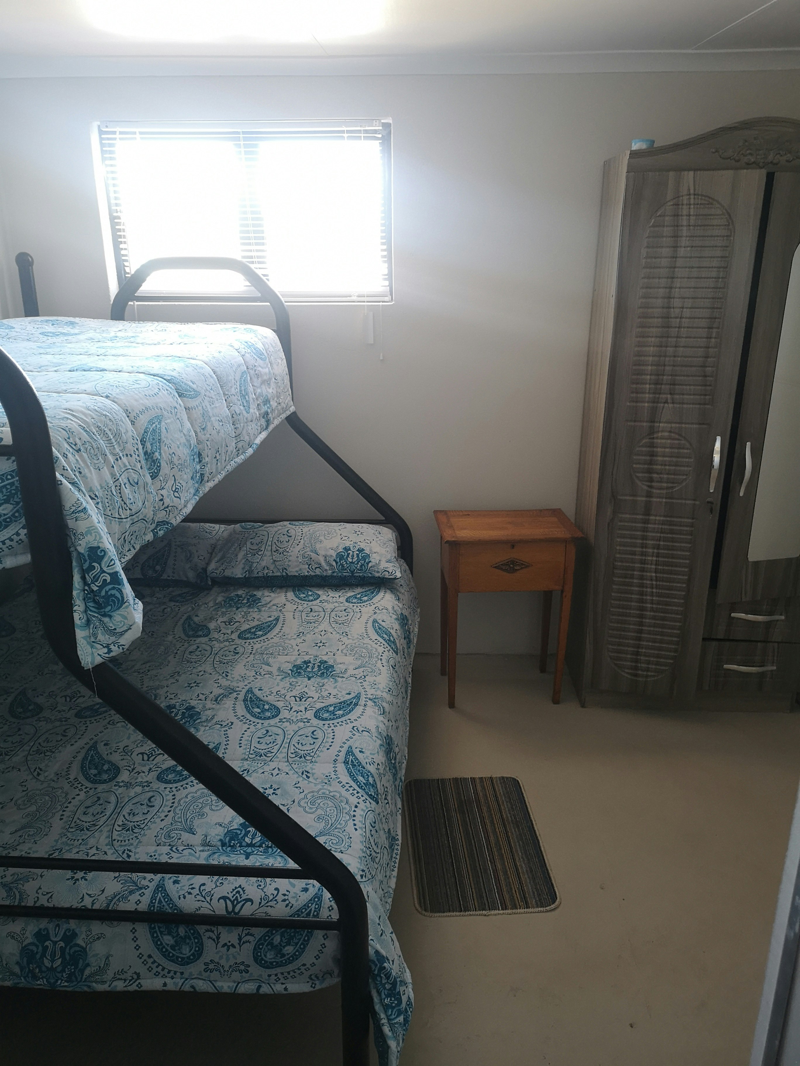 This simple property is ideal for groups and comprises 8 bedrooms and 5 bathrooms. There are 4 bedrooms that are furnished with a double bed, 2 bedrooms with a tri-bunk bed in each, another room with 2 bunk beds, a double bed and a single bed and another room with a single bed. Additionally, there is a double bed and 3 single sleeper couches in the living area. For extra guests, mattresses and bedding can be arranged. Both bath and shower facilities are available in the house. All linen and bath towels are provided; however, guests are required to bring their own beach towels.