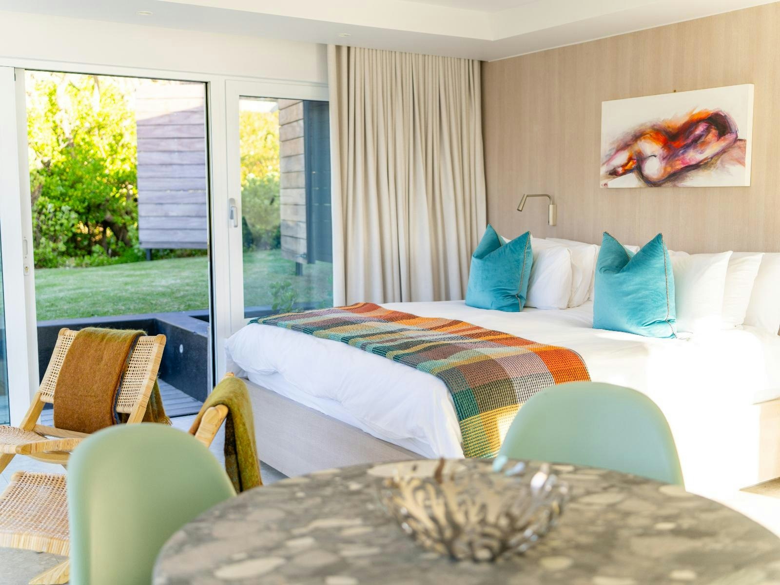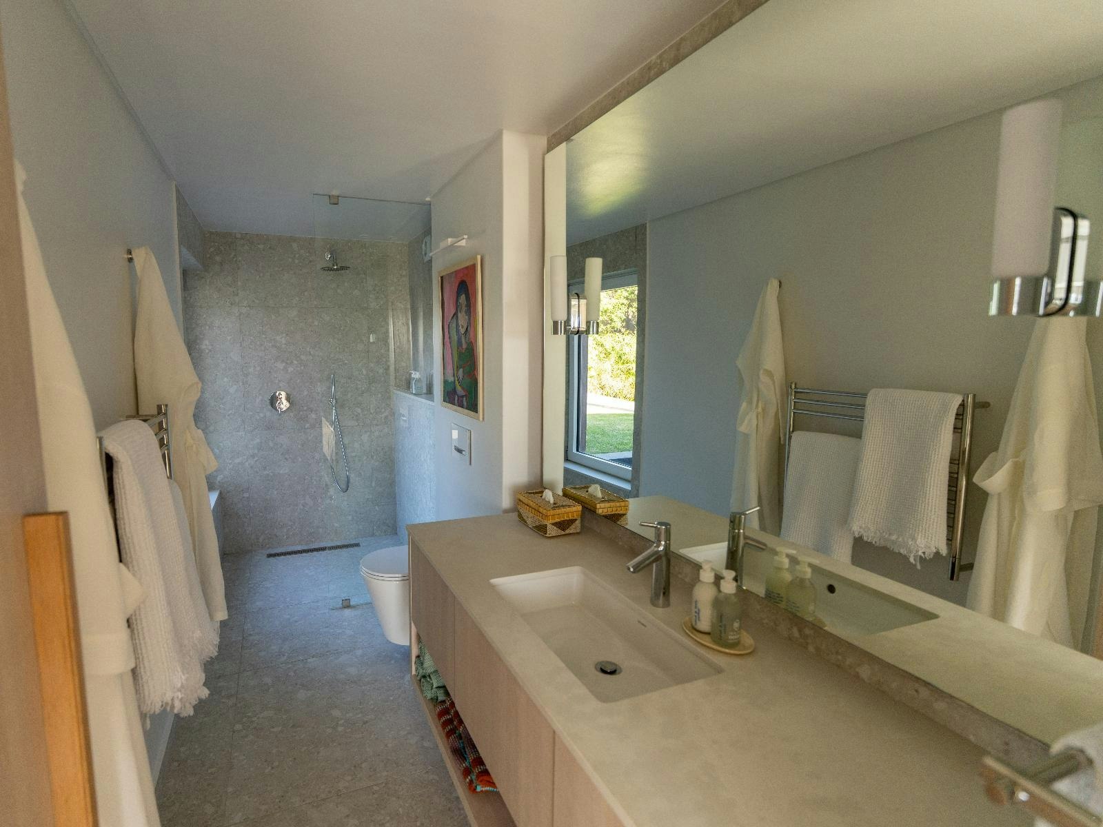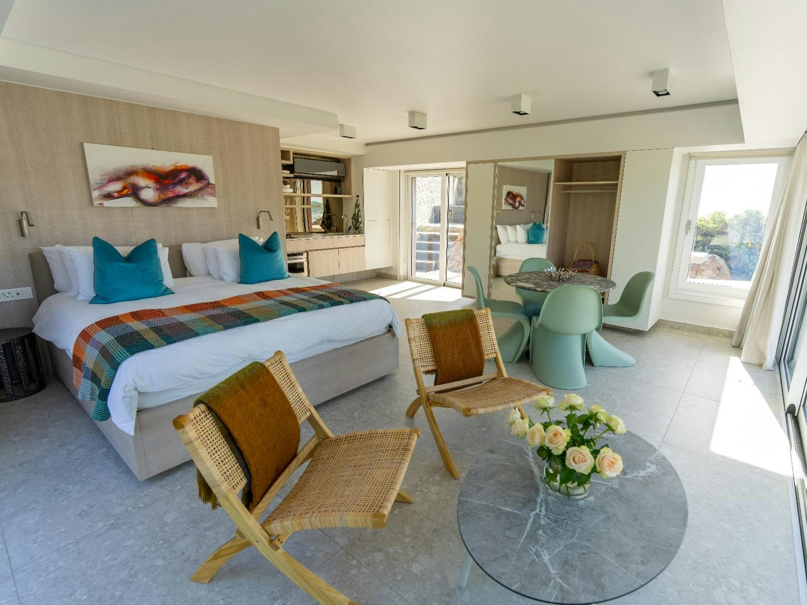 Verblyf word aangebied in 'n selfsorghuis en 'n aparte strandkothuis. Die hoofhuis bied slaapplek vir 8 gaste en bestaan uit 4 slaapkamers, 4 en suite-badkamers, 'n aparte gastetoilet en 'n dubbelmotorhuis. Slaapkamers 1 en 2 is elk ingerig met 'n koninggrootte-bed, slaapkamer 3 bevat 'n koningingrootte-bed en slaapkamer 4 is ingerig met 2 enkelbeddens. Elke slaapkamer het 'n en suite-badkamer met 'n bad, stort, toilet en wasbak. Die strandkothuis is oopplan-uitleg en is ideaal vir 'n ontspanne seekusverblyf. Die slaaparea is ingerig met 'n koninggrootte-bed, terwyl die en suite-badkamer 'n stort, toilet en wasbak het.