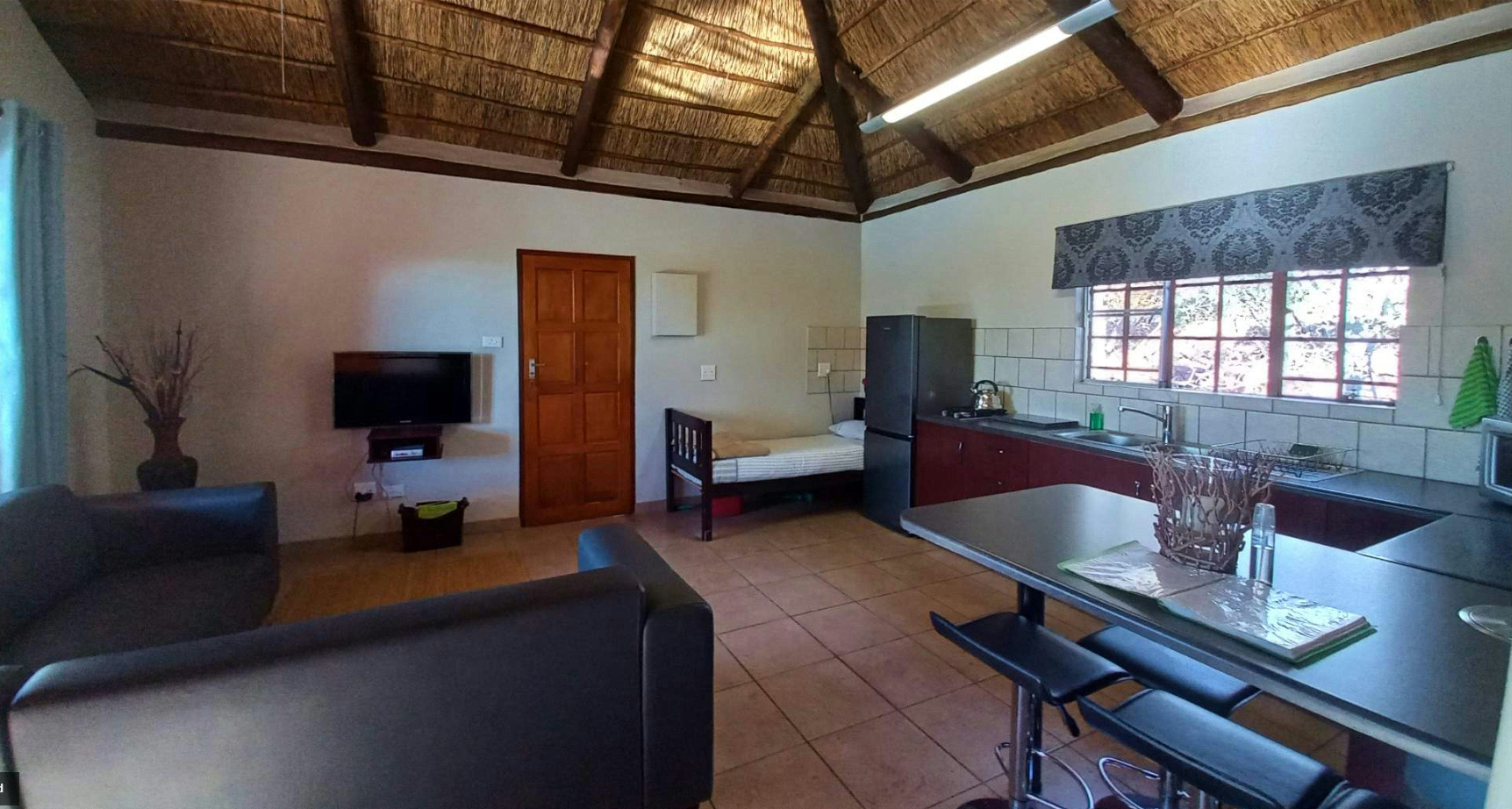 Die eenheid het 'n kombuis wat met 'n yskas-vrieskas, mikrogolfoond, gasstoof, en al die nodige kooktoebehore en skoonmaakmiddels toegerus is. Daar is ook 'n eethoekie en 'n oopplan-sitarea met 'n TV en sekere DStv-kanale.