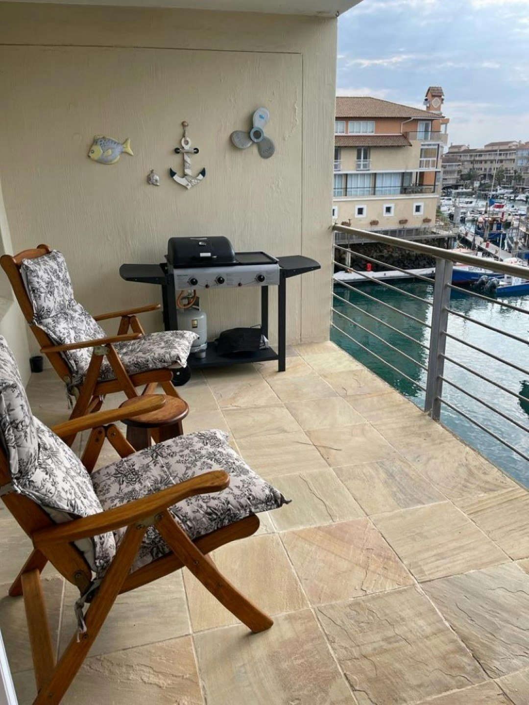 Die oopplan-kombuis is met 'n yskas, stoof, oond, skottelgoedwasser, mikrogolfoond, broodrooster, basiese eetgerei, breekware en tee- en koffiemaakgeriewe toegerus. Daar is 'n sitkamerstel en 'n platskerm-TV met DStv in die sitarea. Gratis WiFi is ook beskikbaar. Daar is 'n etenstafel met stoele en skuifdeure wat na die balkon met pragtige uitsigte oor die marina en die see lei. Verder is daar 'n gasbraai en privaat parkeerplek is op die perseel beskikbaar.