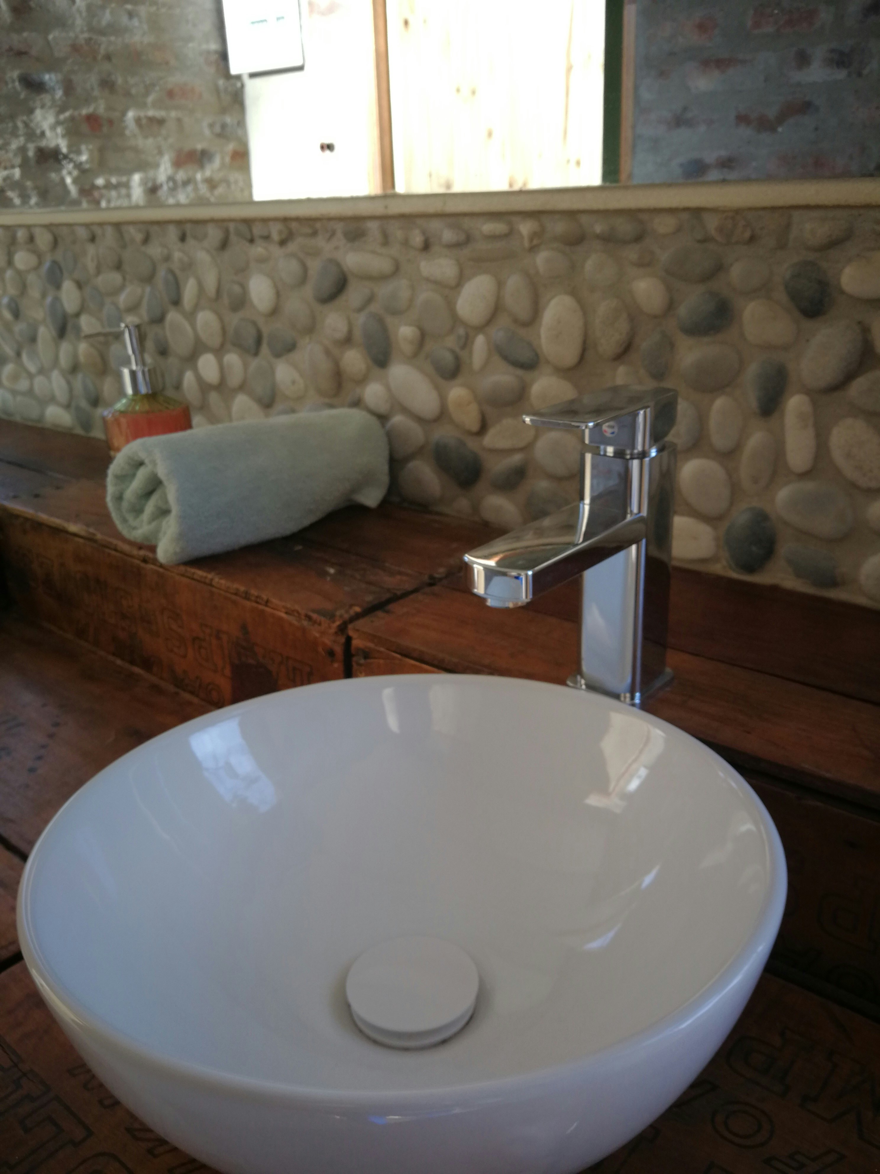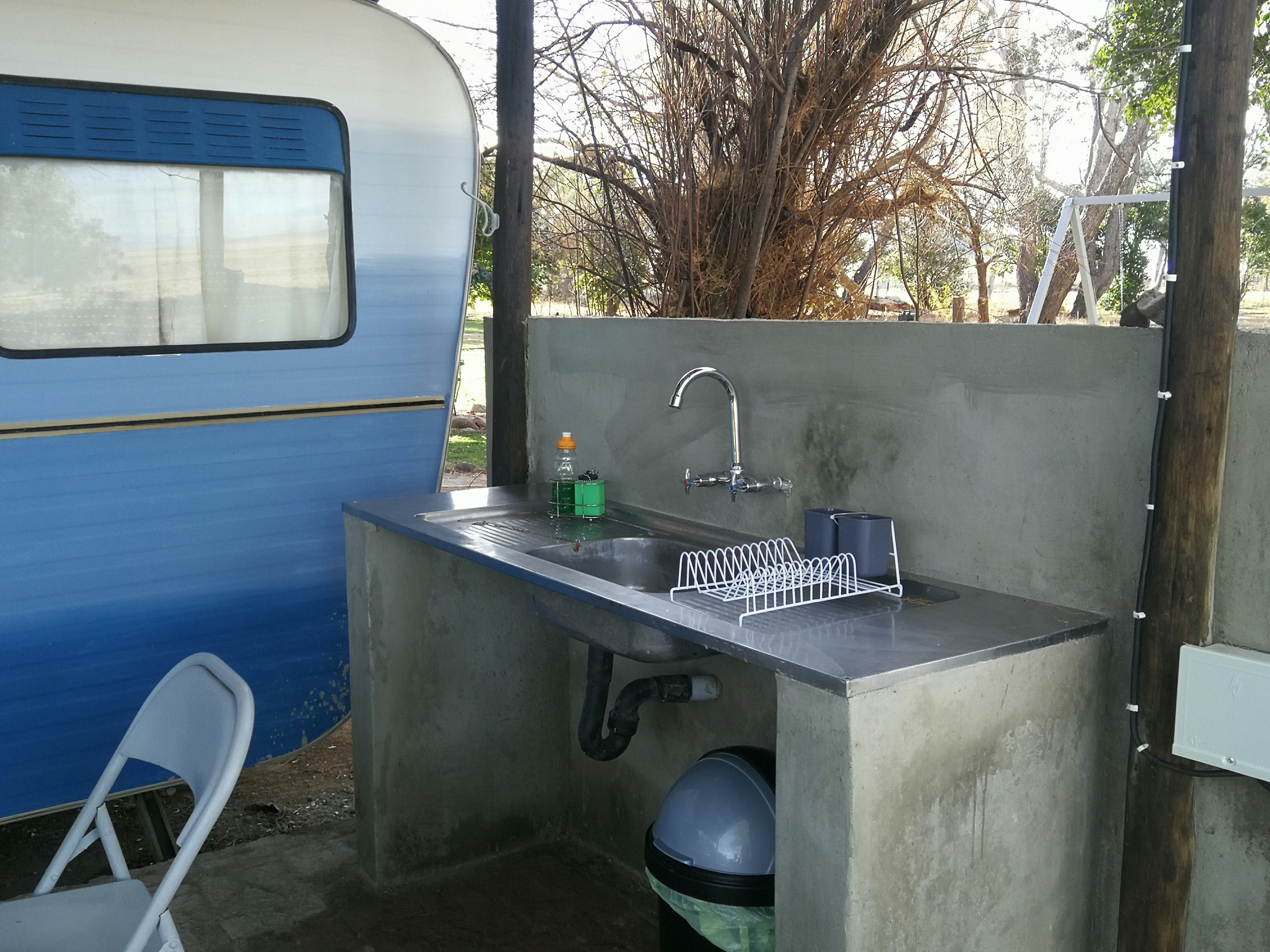 Die ablusiegeriewe het 2 storte, 2 aparte toilette en 'n oop wasbak-area. Daar is 'n opwasarea met 'n uitsig oor die Karoo-vlaktes. 'n Gasgeiser voorsien warm water en daar is Eskom-elektrisiteit.