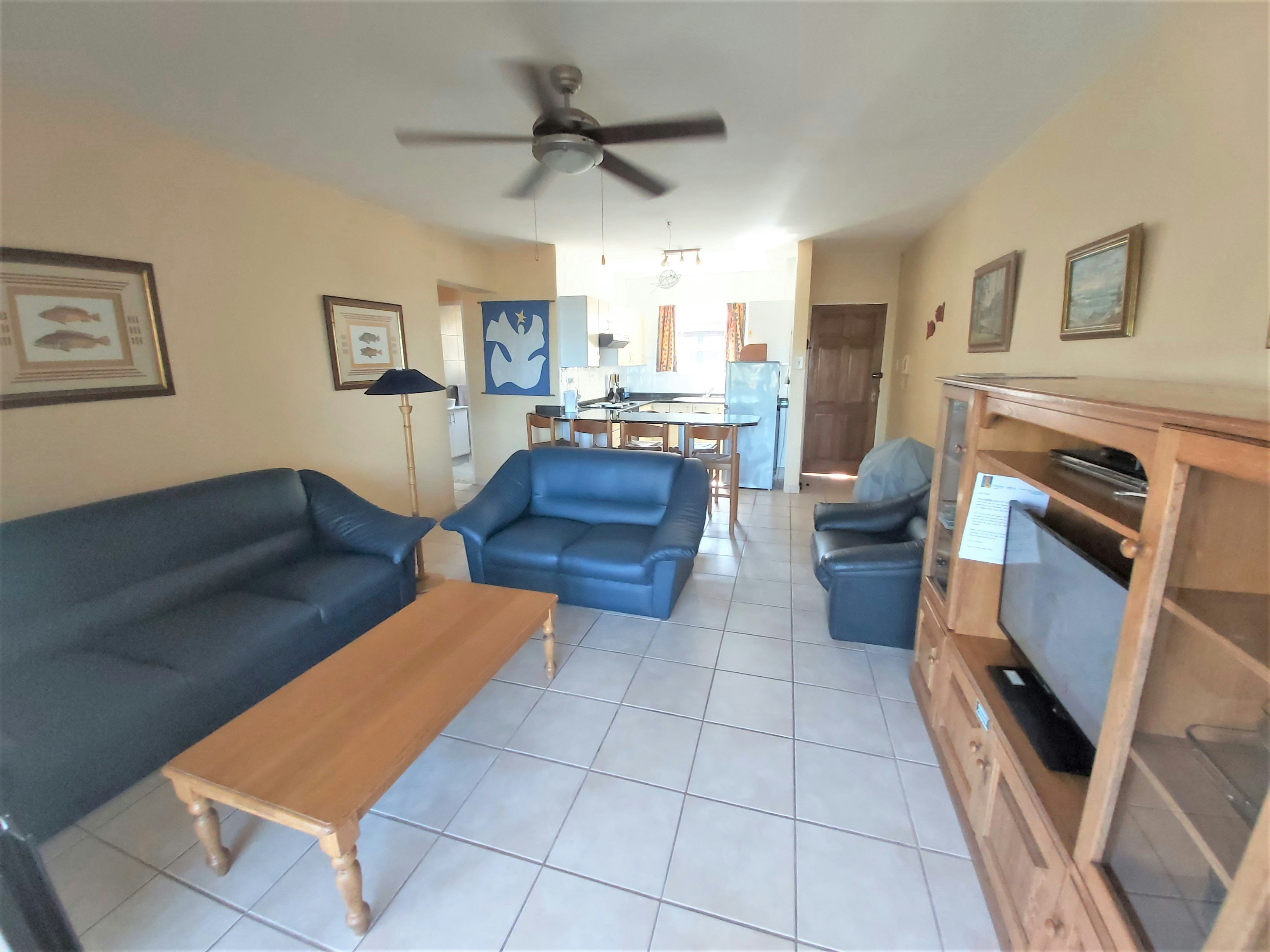 Die kombuis is goed toegerus vir selfsorg en sluit 'n ontbyttoonbank met stoele in. Die leefarea het 'n plafonwaaier en 'n TV met DStv. Die eenheid het ook gratis WiFi beskikbaar. Die leefarea maak deur skuifdeure oop na 'n balkon met buite-eetmeubels en Weber-braaigeriewe. Neem asseblief kennis dat daar slegs 1 toegewese parkeerplek per eenheid is.