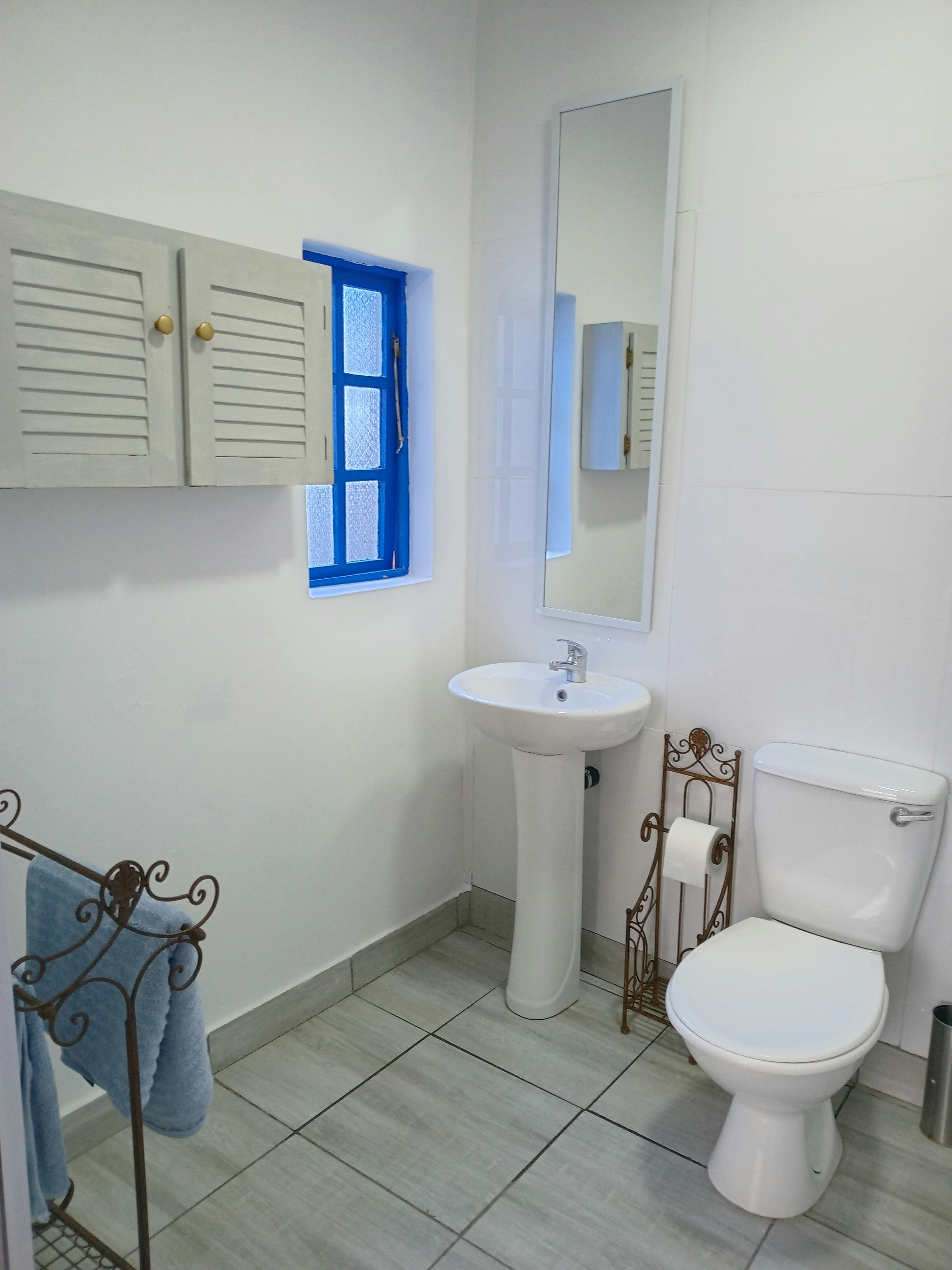 Kamer 1 is ingerig met 'n dubbelbed en bied 'n badkamer met 'n stort, toilet en wasbak. Die kombuisie is toegerus met 'n yskas-vrieskas, 'n ketel, eetgerei en breekware en sluit 'n ontbythoekie met gemaklike sitplek in. Gaste kan direk vanaf die voordeur in die 'Mediterreense' swembad duik. Braaigeriewe is gerieflik langs die woonstel geleë en gratis doringhout word voorsien.