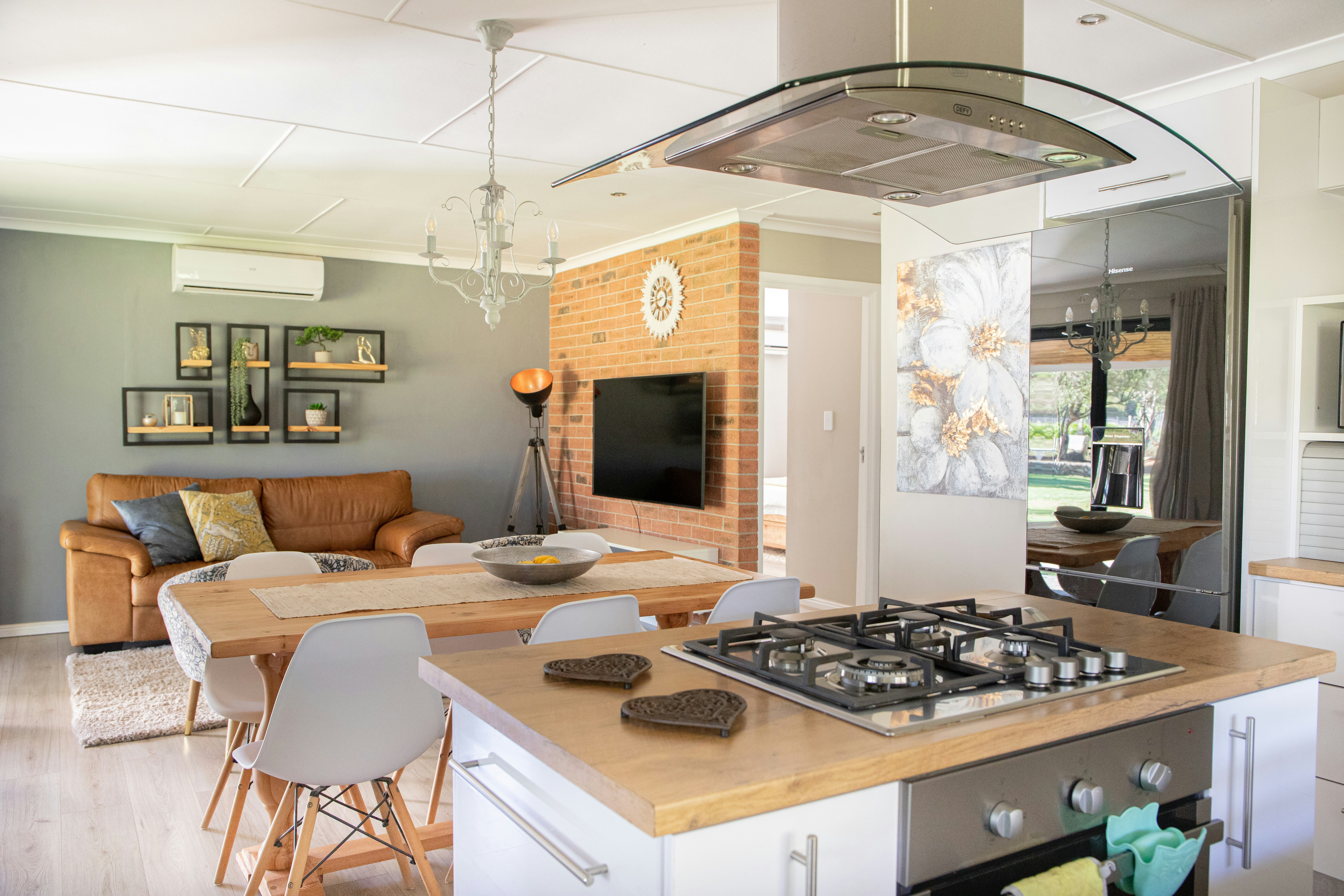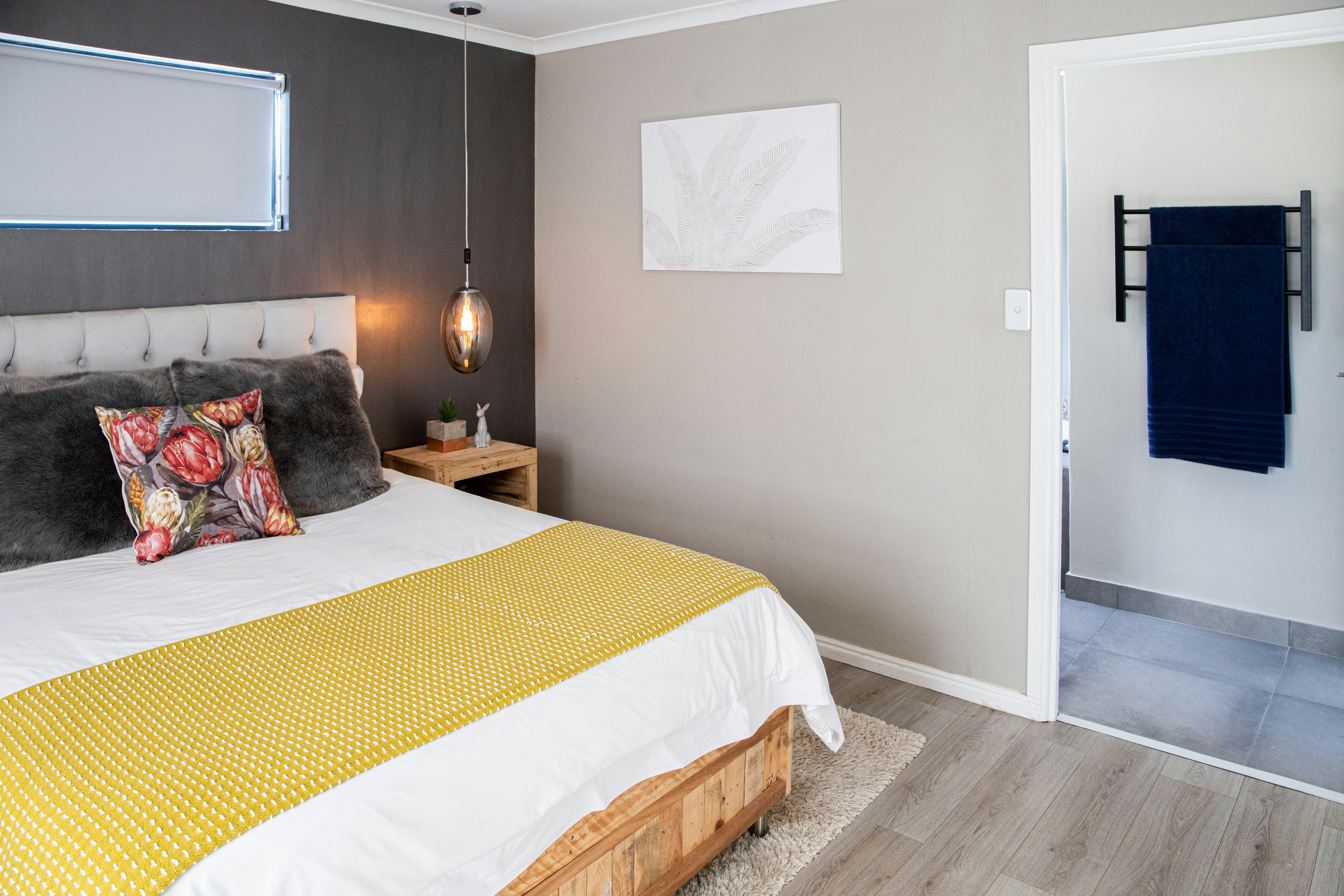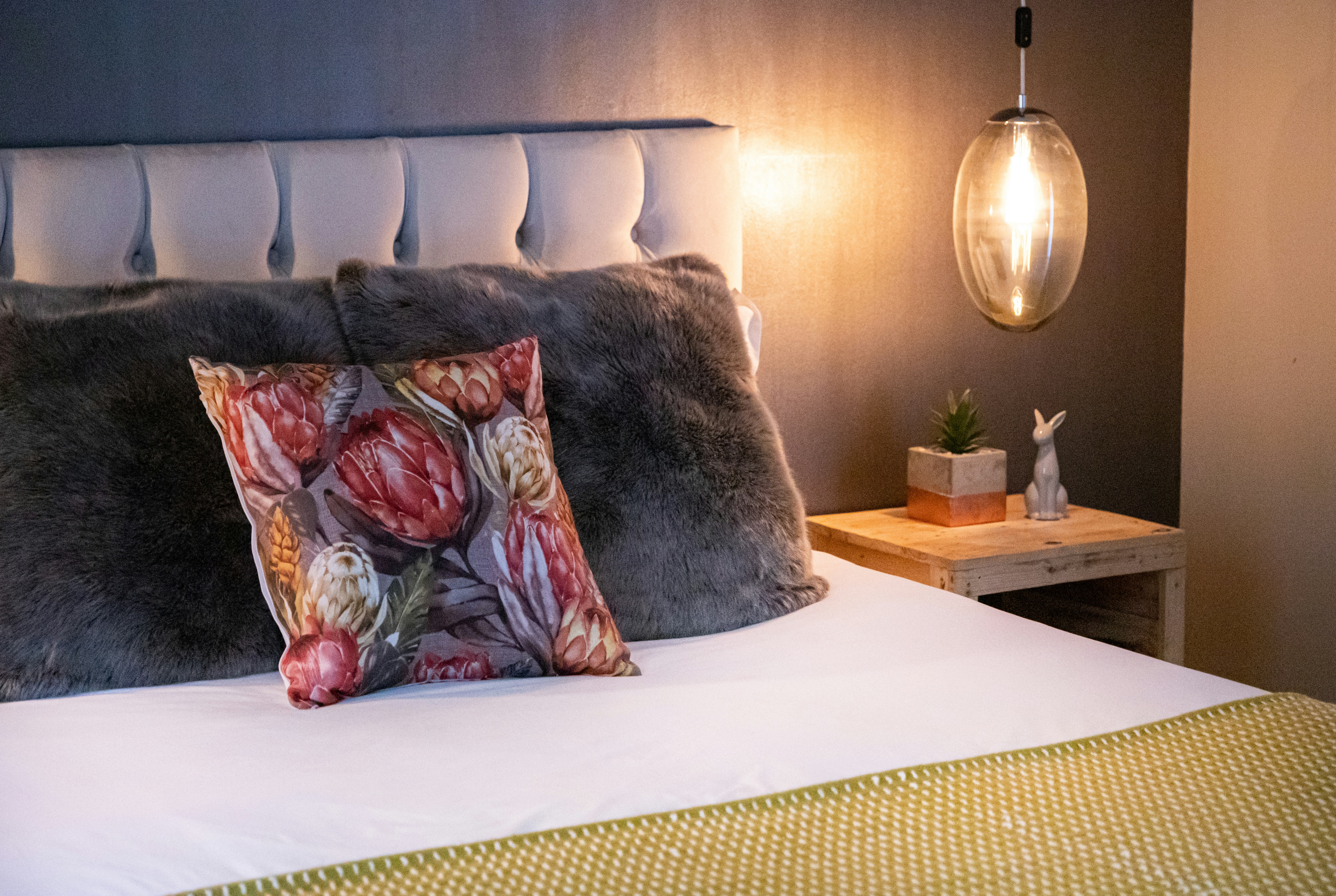 The unit has a huge open-plan dining, and living area as well as a fully equipped kitchen. The living area features a TV with selected DStv channels and a fireplace. Other amenities include free Wi-Fi Internet access and a built-in iPad with an on-demand music library. There is also an honesty bar, where we have pre-selected a few nice wines for you from the area.
