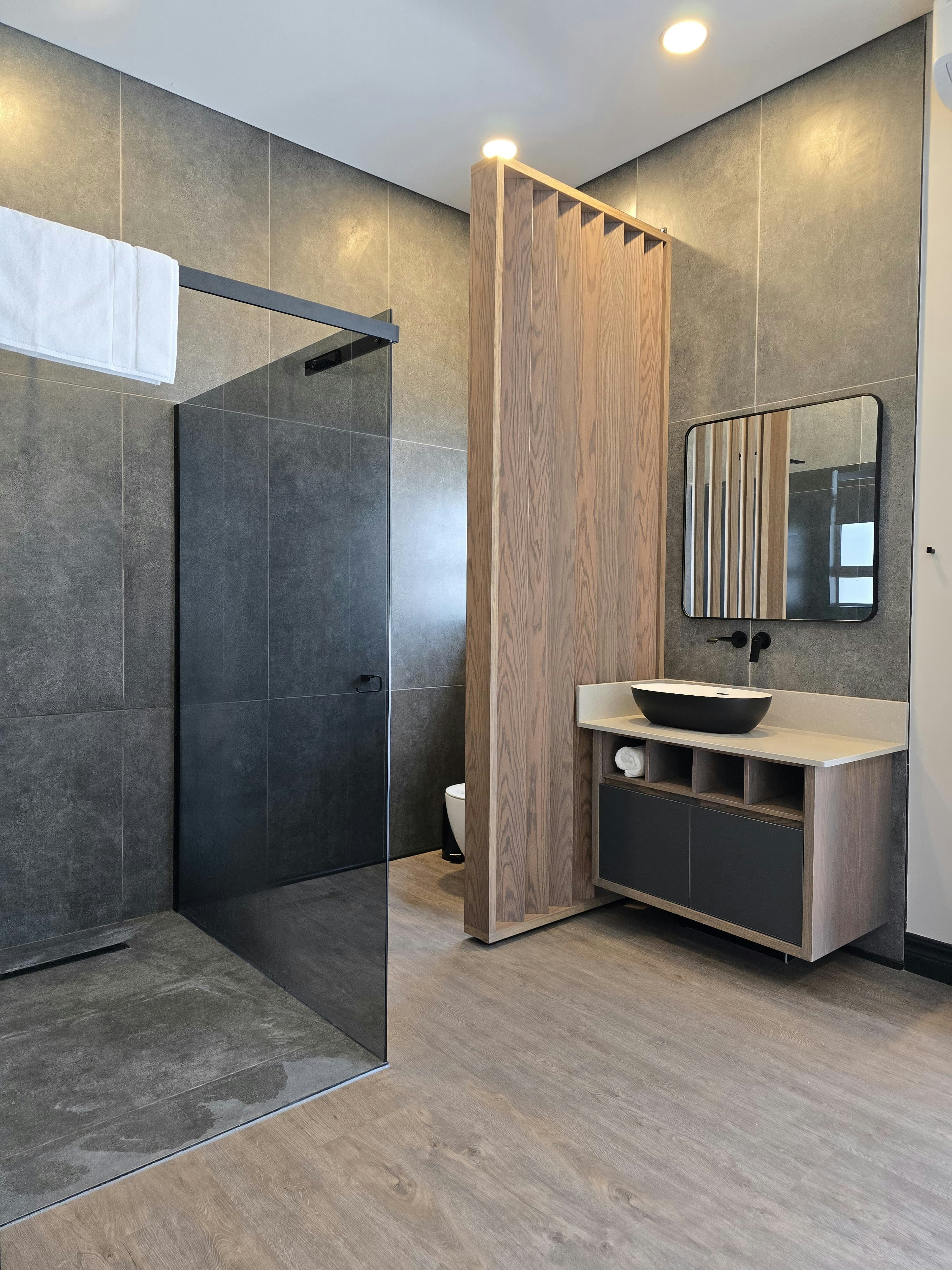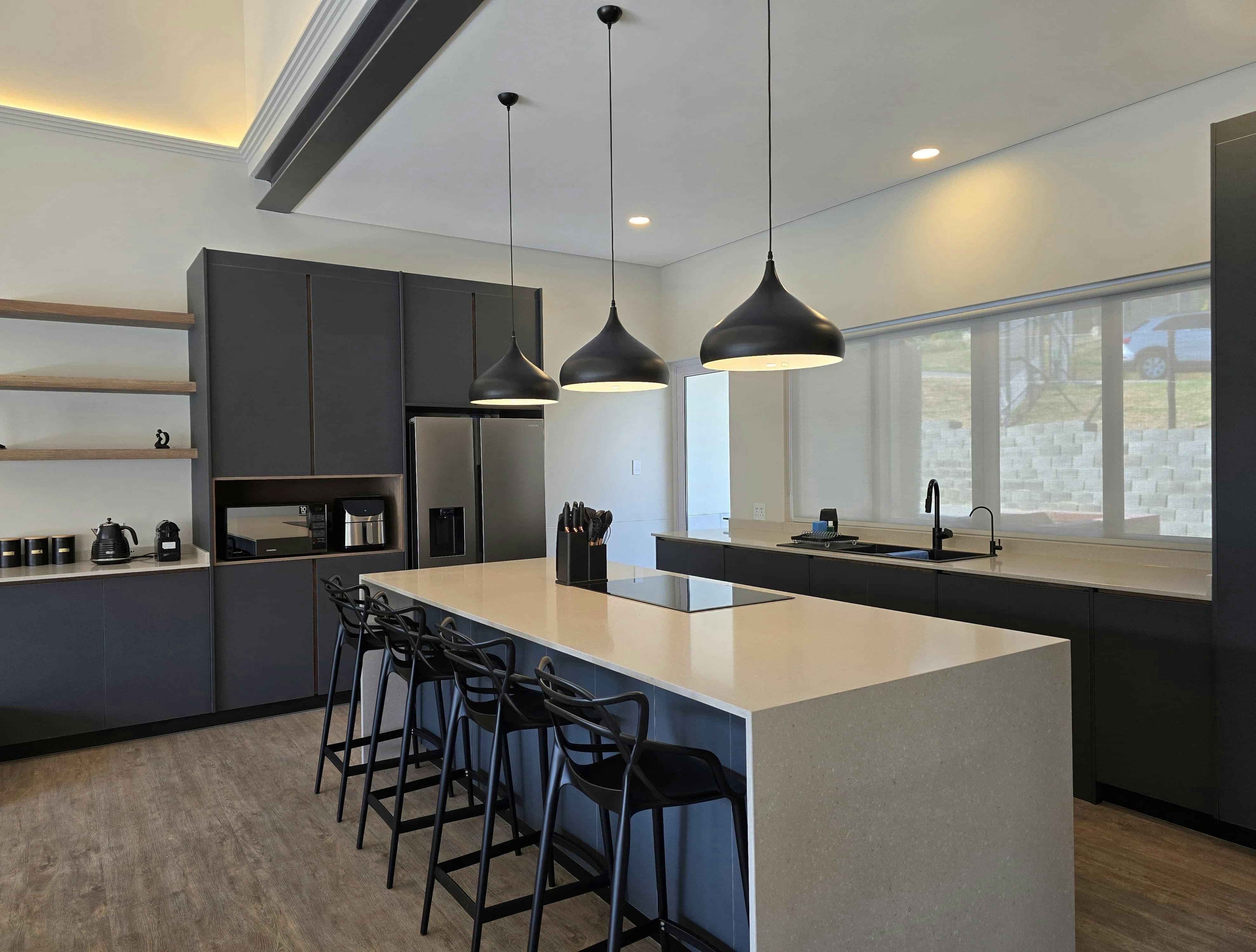 Die eiendom bied slaapplek vir tot 6 gaste en bestaan uit 3 slaapkamers met lugversorging, elk met 'n en suite-badkamer. Elke kamer het 'n koninggrootte-bed en 'n en suite-badkamer met 'n stort. Vars, kwaliteit linne en badhanddoeke word voorsien.