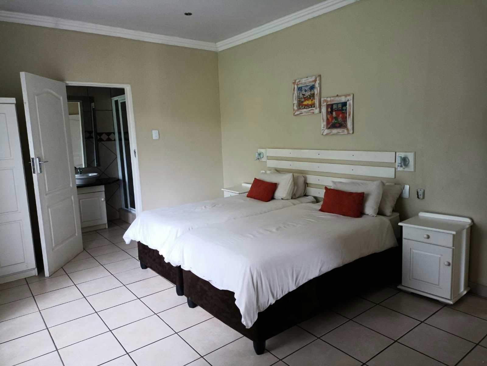 Die eenheid beskik oor 3 slaapkamers en 3 en suite-badkamers. Die hoofslaapkamer is ingerig met 'n dubbelbed en het 'n en suite-badkamer met 'n stort, toilet en wasbak. Die tweede en derde slaapkamers is elk ingerig met 2 enkelbeddens en beskik oor en suite-badkamers met 'n stort, toilet en wasbak.