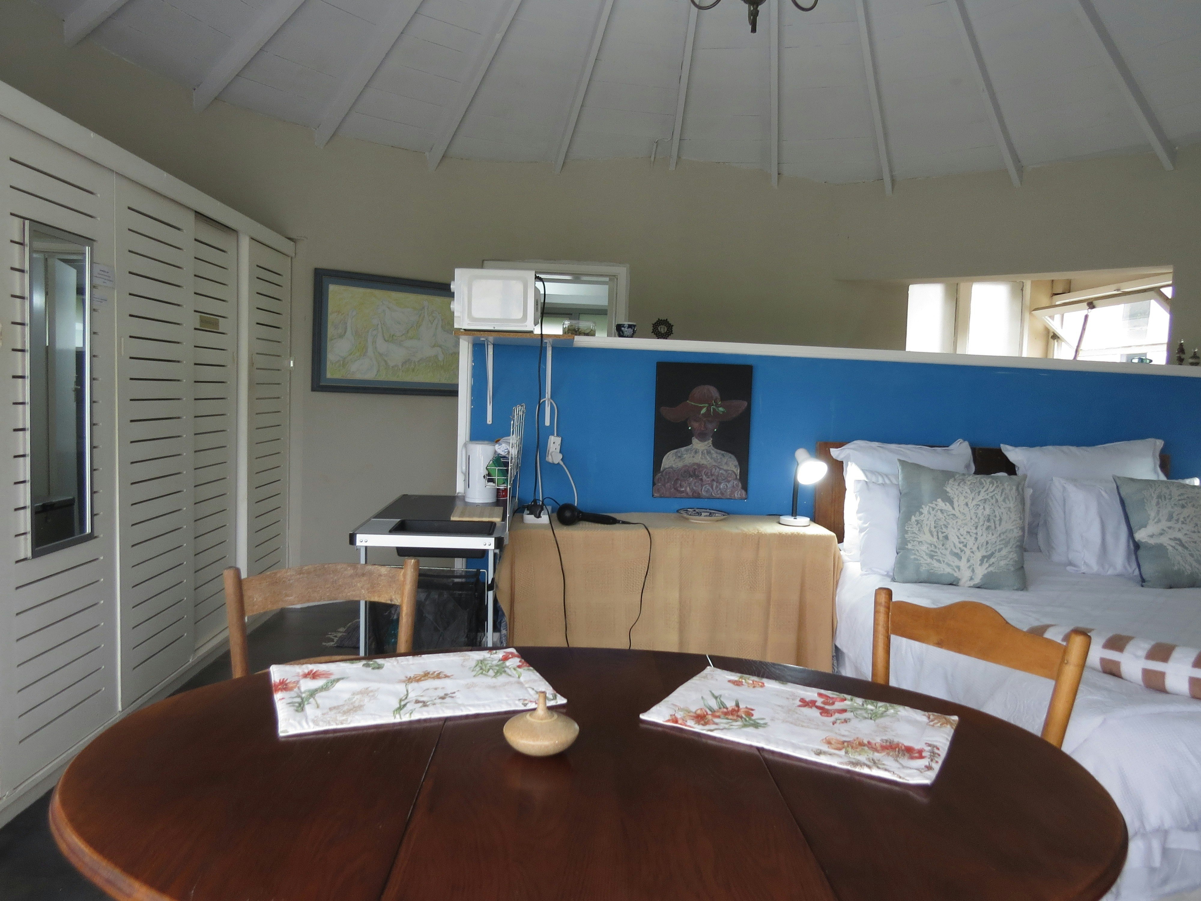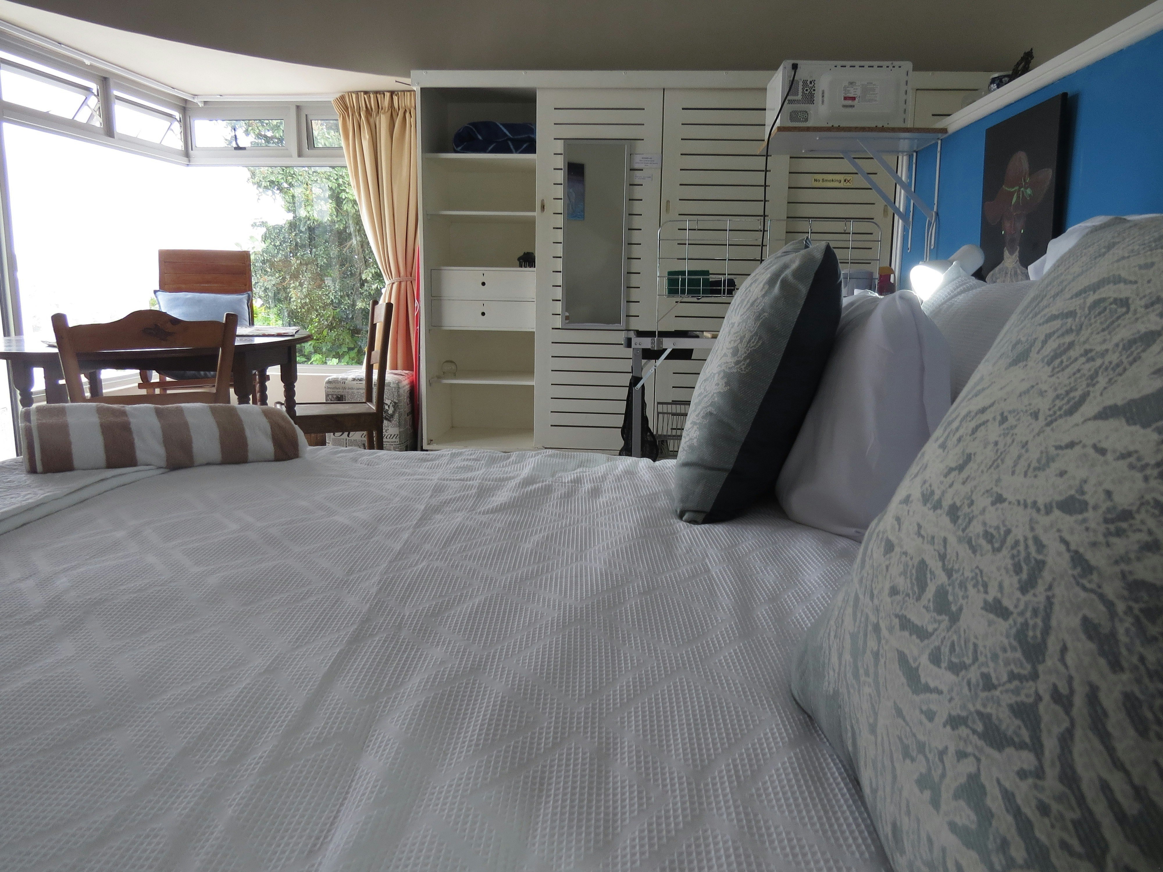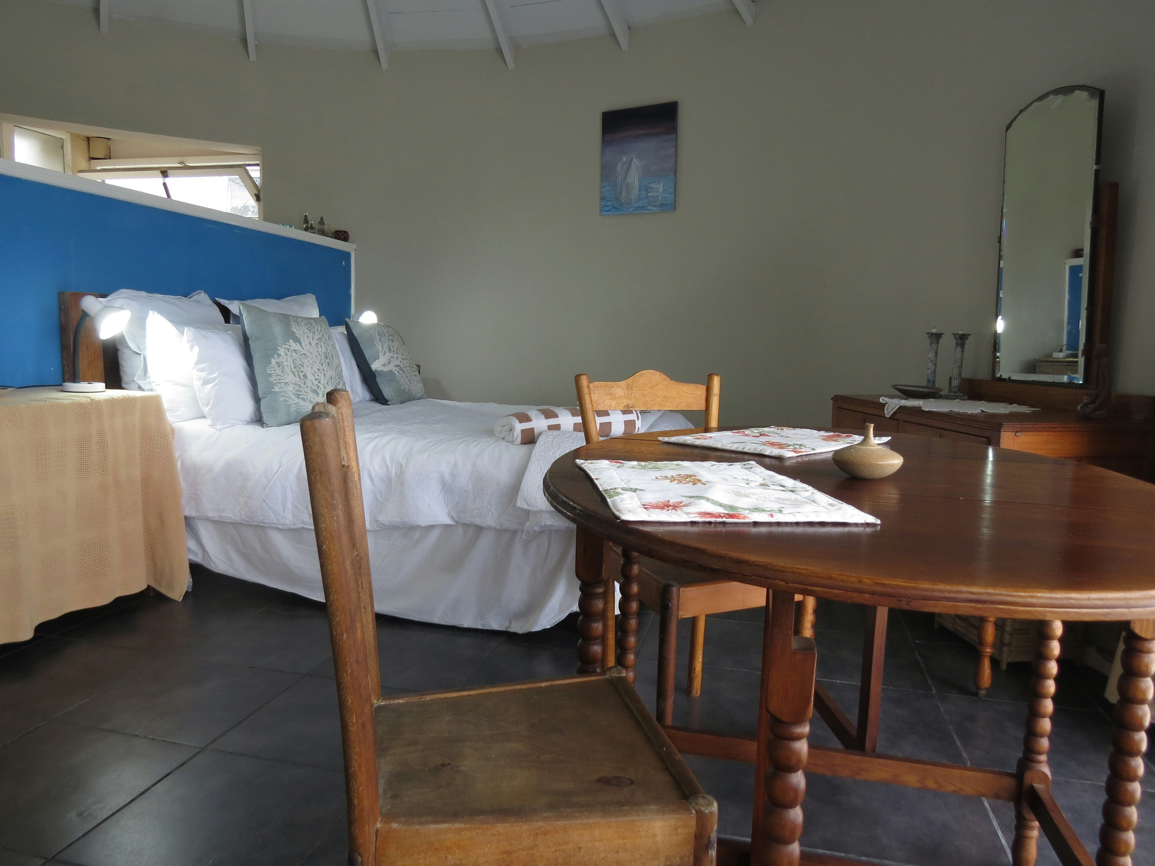 The open-plan room accommodates up to 2 guests and is furnished with a queen-size bed. The en-suite bathroom includes a shower, washbasin, and toilet. All linen and bath towels are provided; however, guests are required to bring their own beach towels.