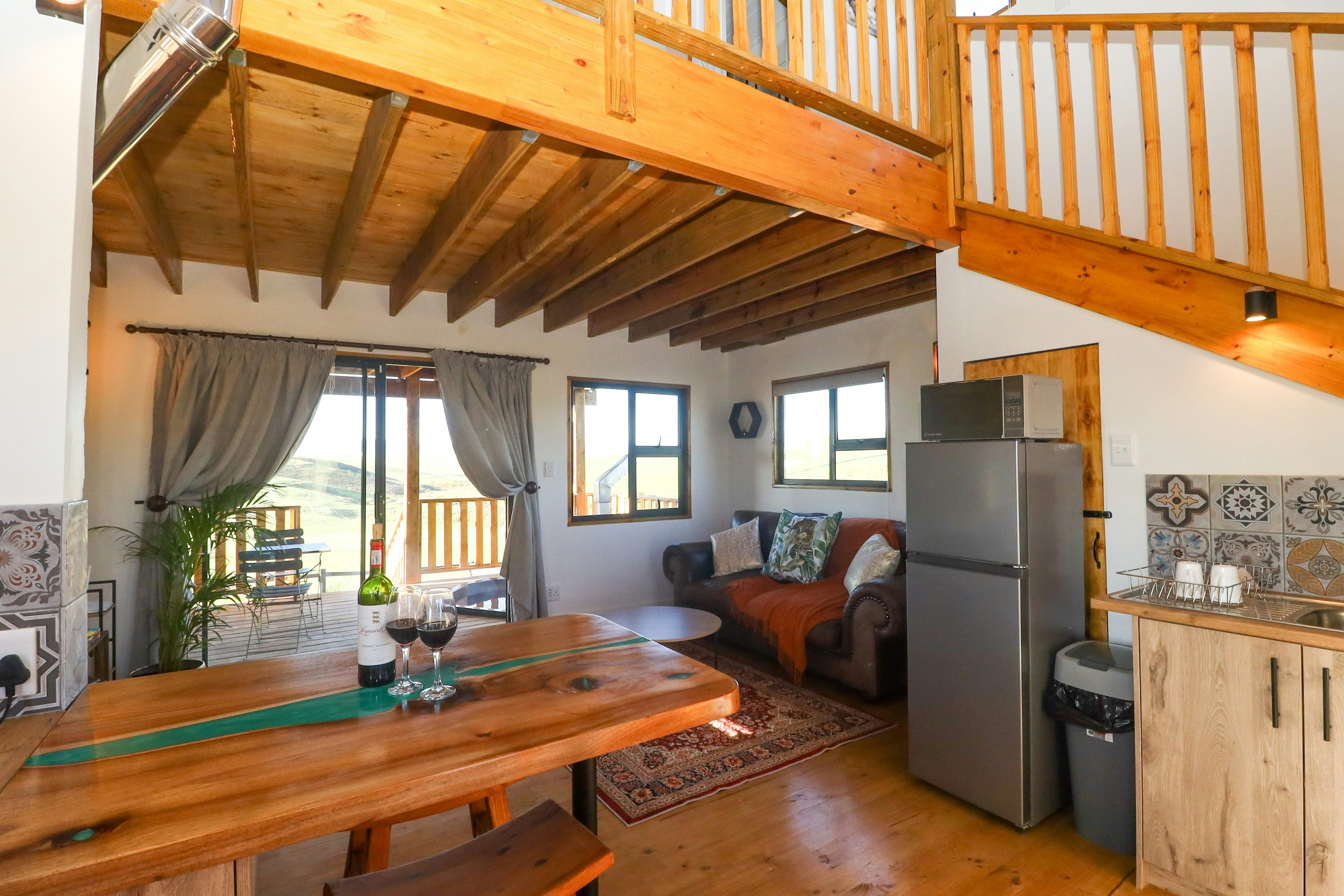 Guests can unwind on the covered deck, which features a wood-fired hot tub, braai facilities, and an outdoor dining area, all set against tranquil countryside views. Explore walking trails, or simply relax and breathe in the fresh country air. Whether for a quiet weekend away or an extended stay, Rolling Hills Farmstead 1-Bedroom Eco-Chalet provides a restful and memorable getaway in harmony with nature. Secure parking is available.