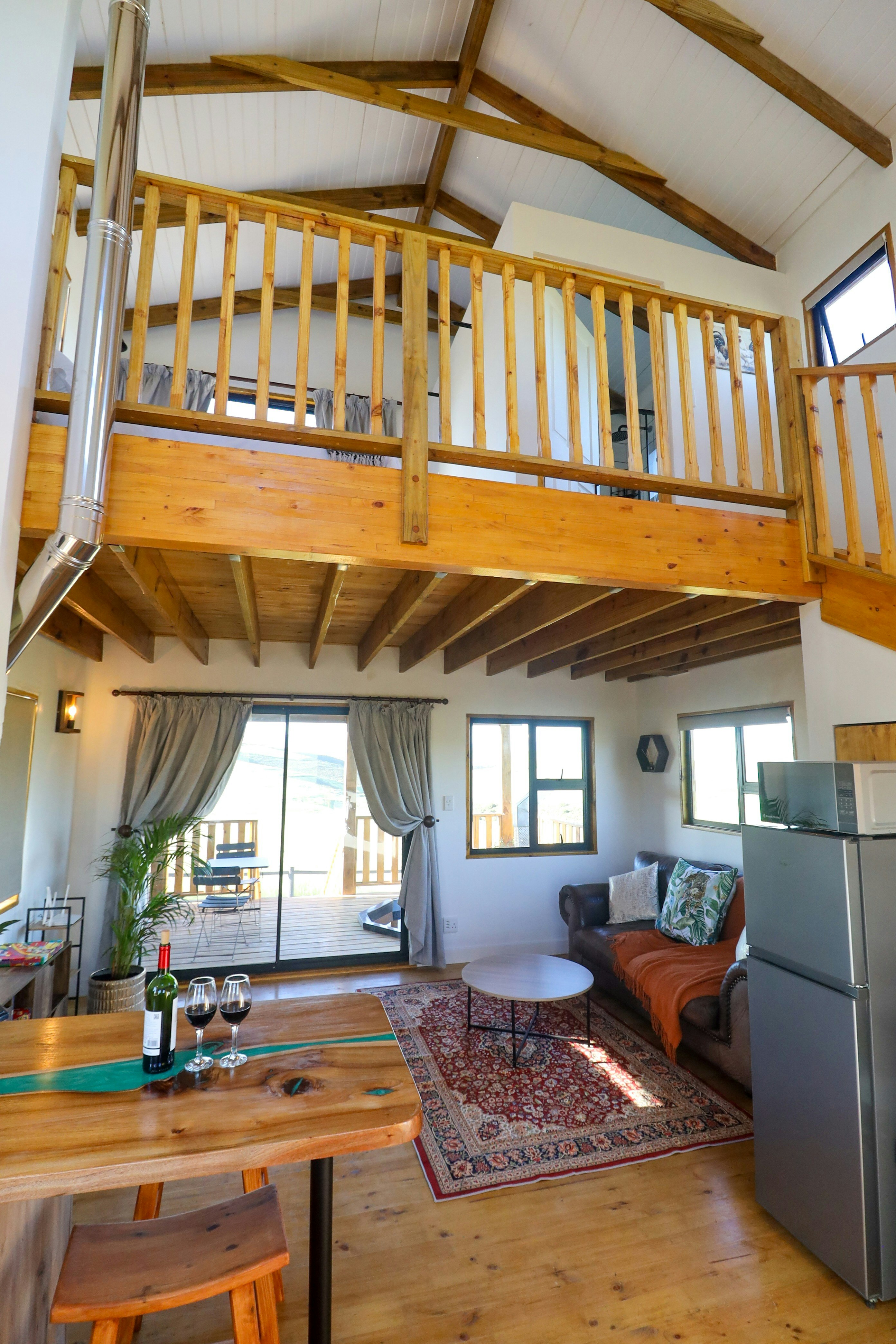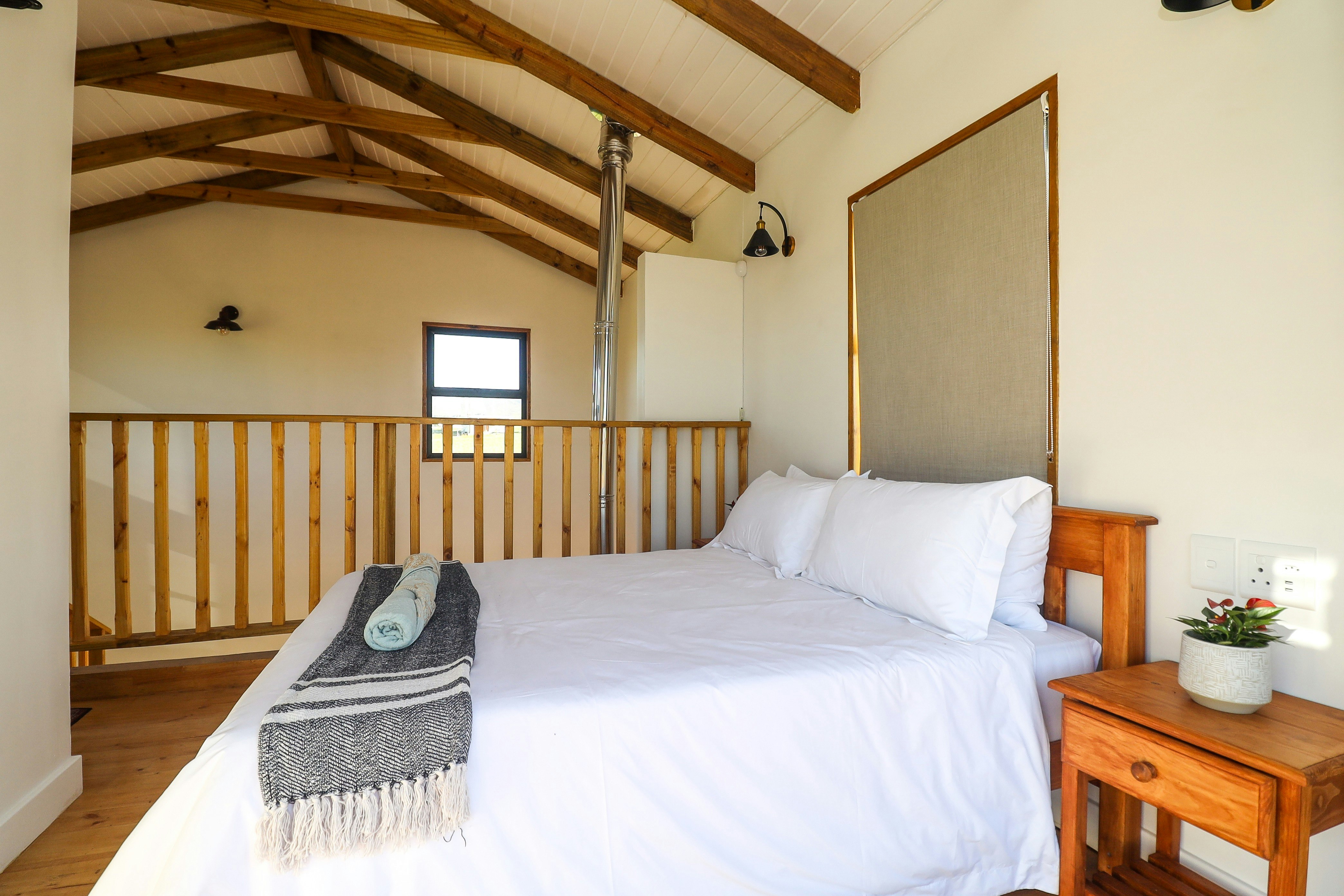 The chalet accommodates up to 2 guests and features a loft-style bedroom furnished with a queen-size bed. The en-suite bathroom is fitted with a shower, basin, and toilet. Linen and bath towels are provided. A private balcony, accessible only from the bedroom, offers an ideal spot to enjoy sunsets with a glass of wine.