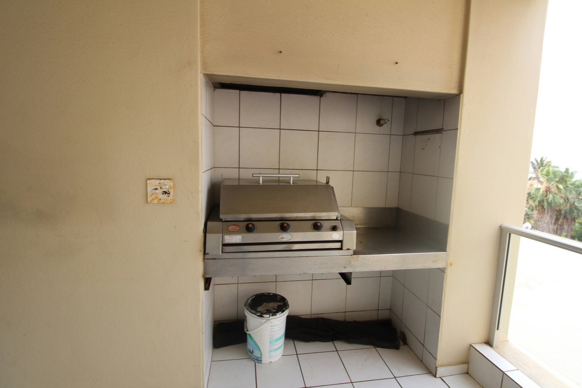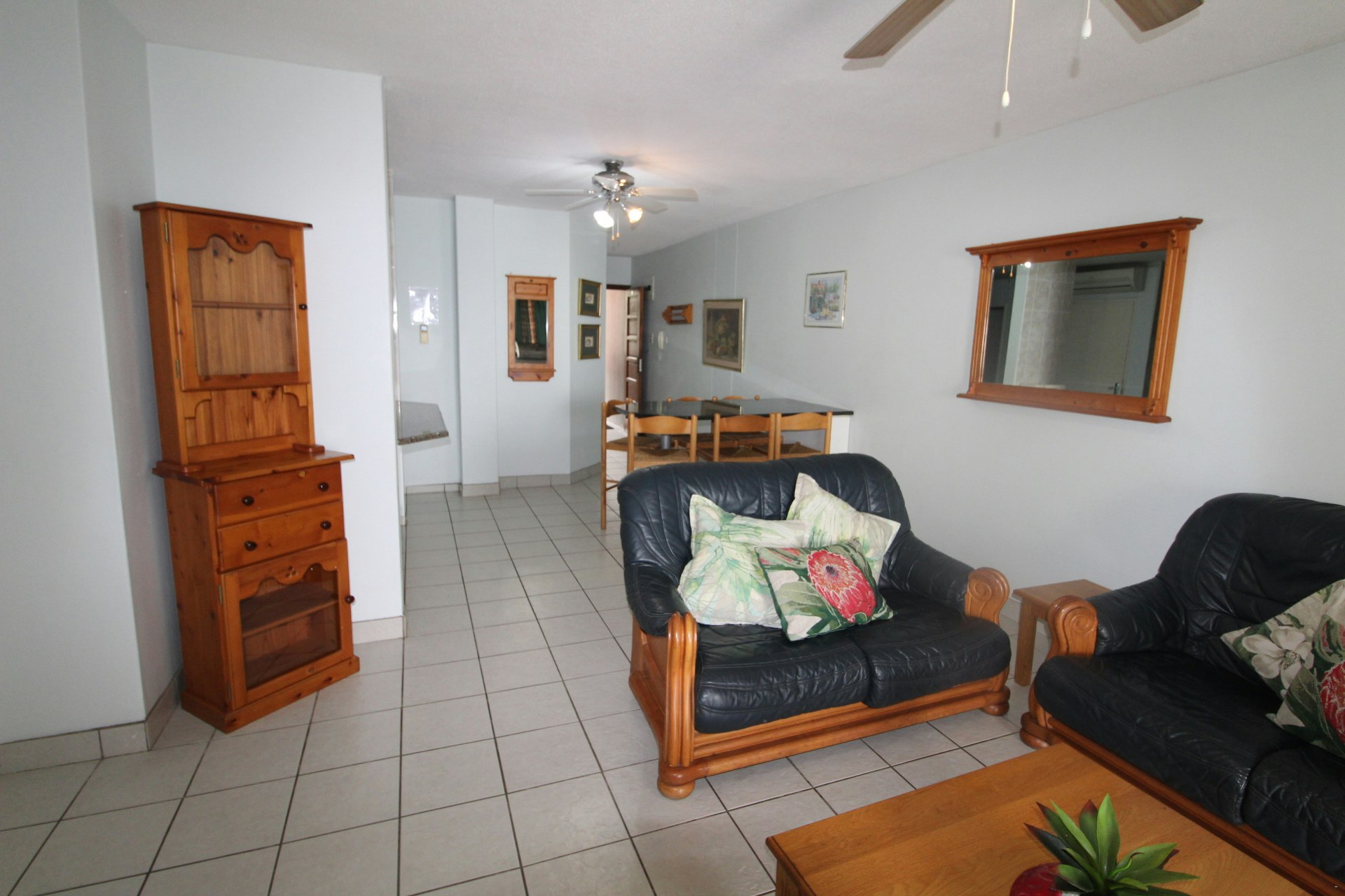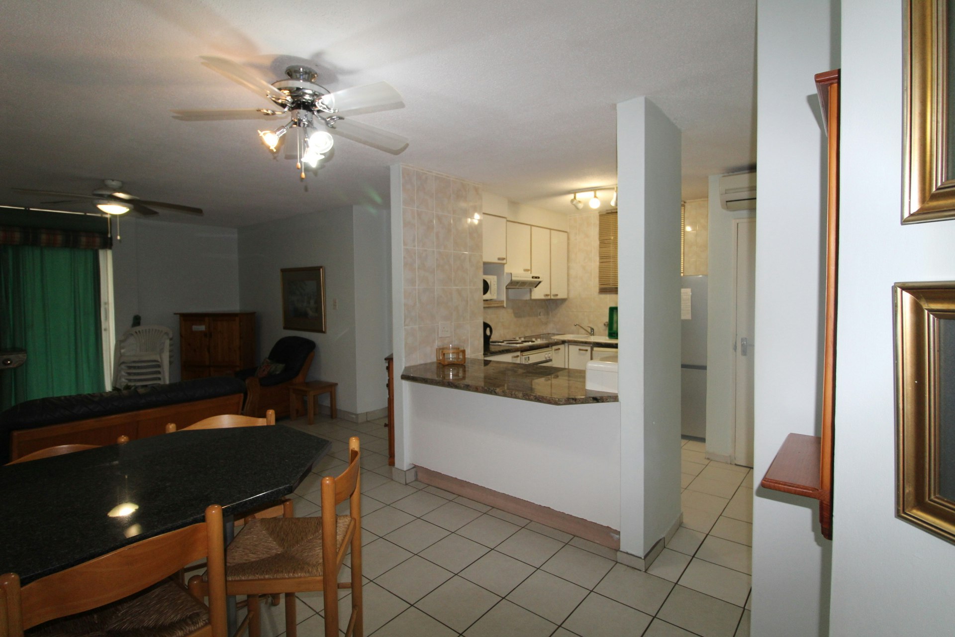 Die kombuis is vir selfsorg toegerus met 'n stoof, oond, yskas-vrieskas, mikrogolfoond en 'n skottelgoedwasser. Die eetarea het 'n etenstafel met sitplek vir 6. Die sitarea het 'n plafonwaaier en 'n TV. Die leefarea lei na 'n beskutte balkon met stoepmeubels en braaigeriewe.