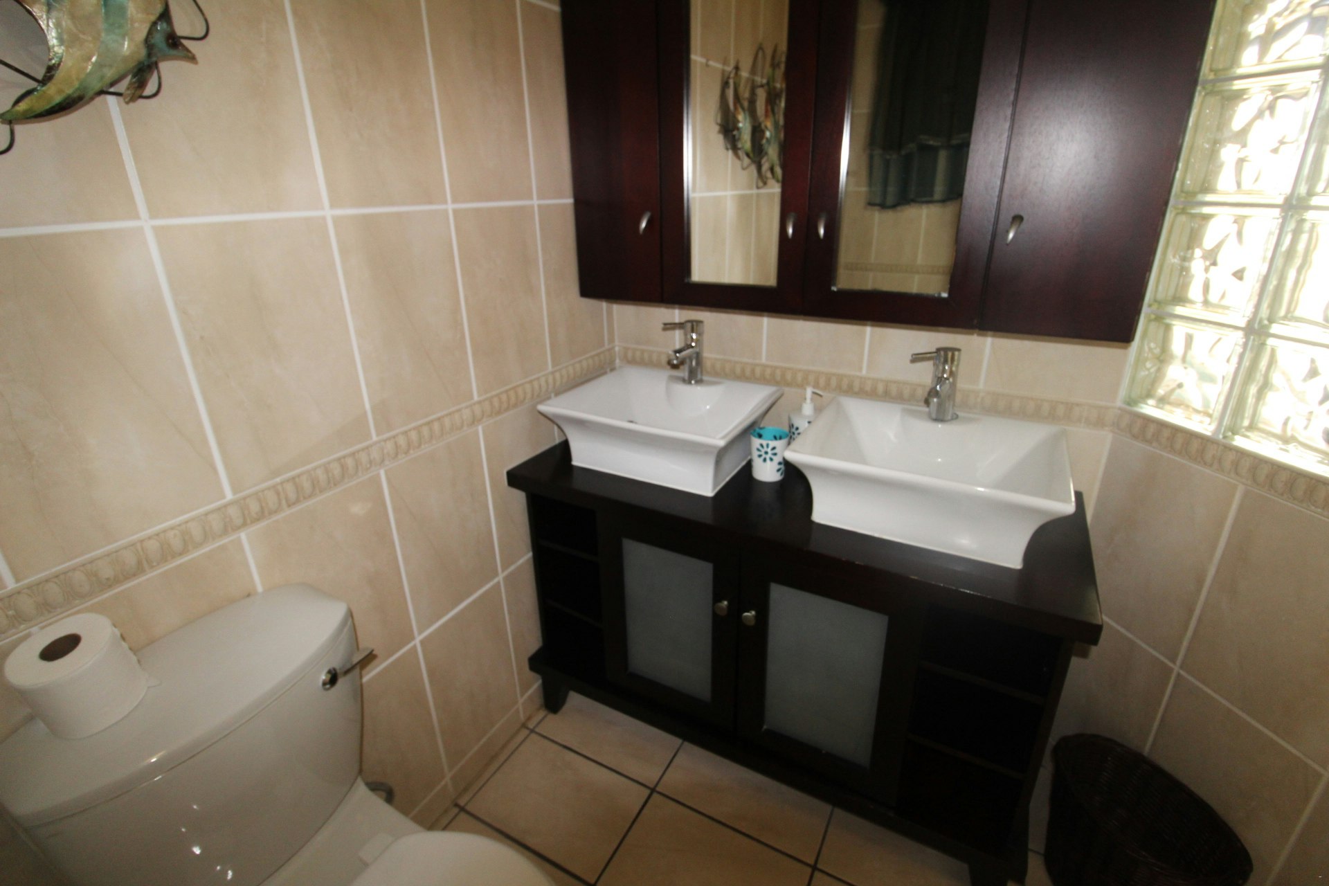 Rondevoux 18 can accommodate up to 6 guests and comprises 3 bedrooms, 2 bathrooms, and an open-plan kitchen, and living area. The main bedroom contains a double bed, and an en suite, and has a sliding door opening to the balcony. The second and third bedrooms each contain 2 single beds. These 2 rooms share a second bathroom. Each bedroom contains a ceiling fan.