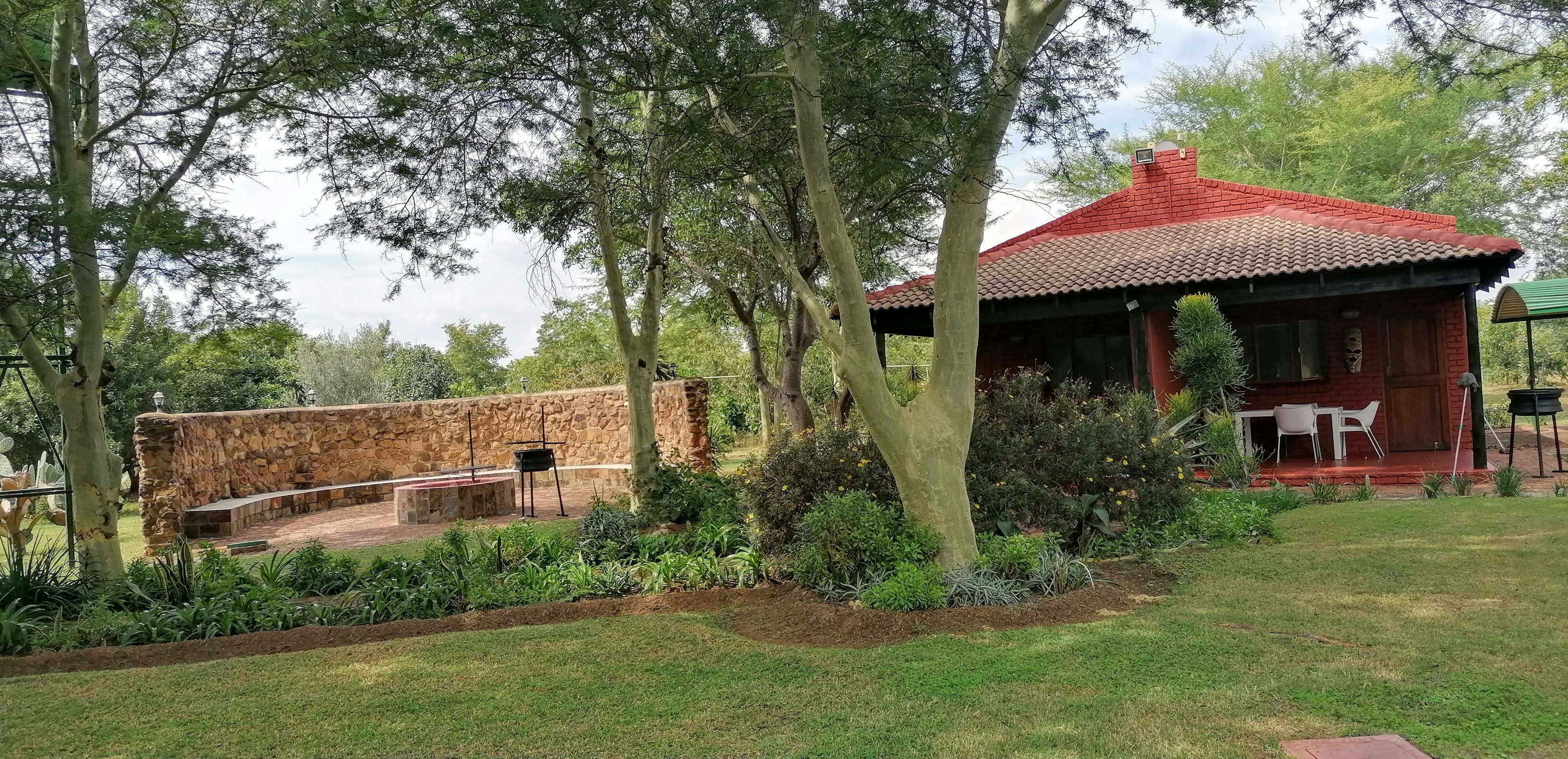 Rooibank skuil in die Dinokeng Groot-5 Wildreservaat in Gauteng. Ons bied verskeie verblyf-opsies op 'n werkende plaas.