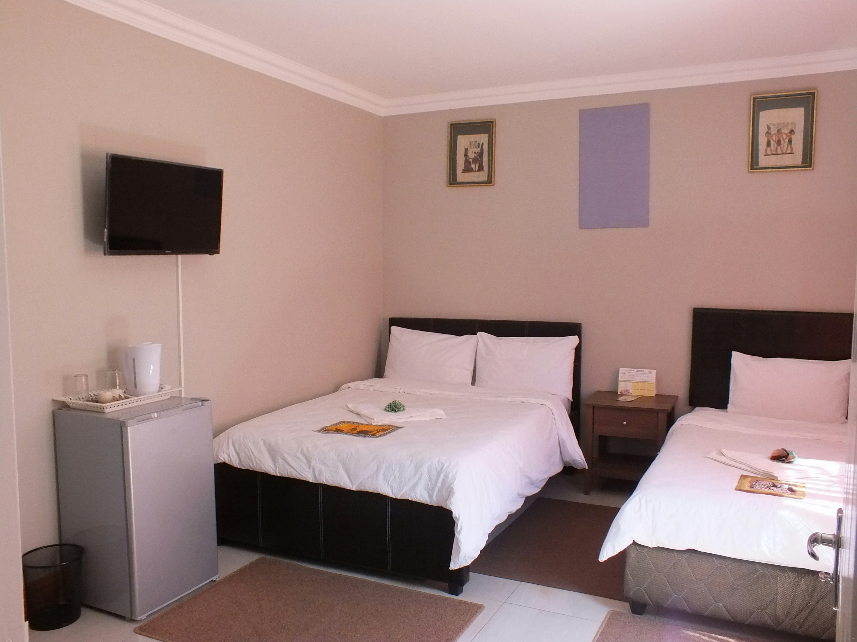 Die kamers is vernoem na Suid-Afrika, Egipte en Tanzania en het elk 'n dubbelbed, enkelbed en 'n en suite-badkamer met 'n stort, wasbak en toilet. Alle linne en handdoeke word voorsien. Geriewe in die kamer sluit gratis WiFi, lugversorging, 'n platskerm-TV met die volledige DStv-pakket, 'n yskassie en tee- en koffiemaakgeriewe in. Gaste kan rustig binne bly of die restuarant en kroeg verken.
