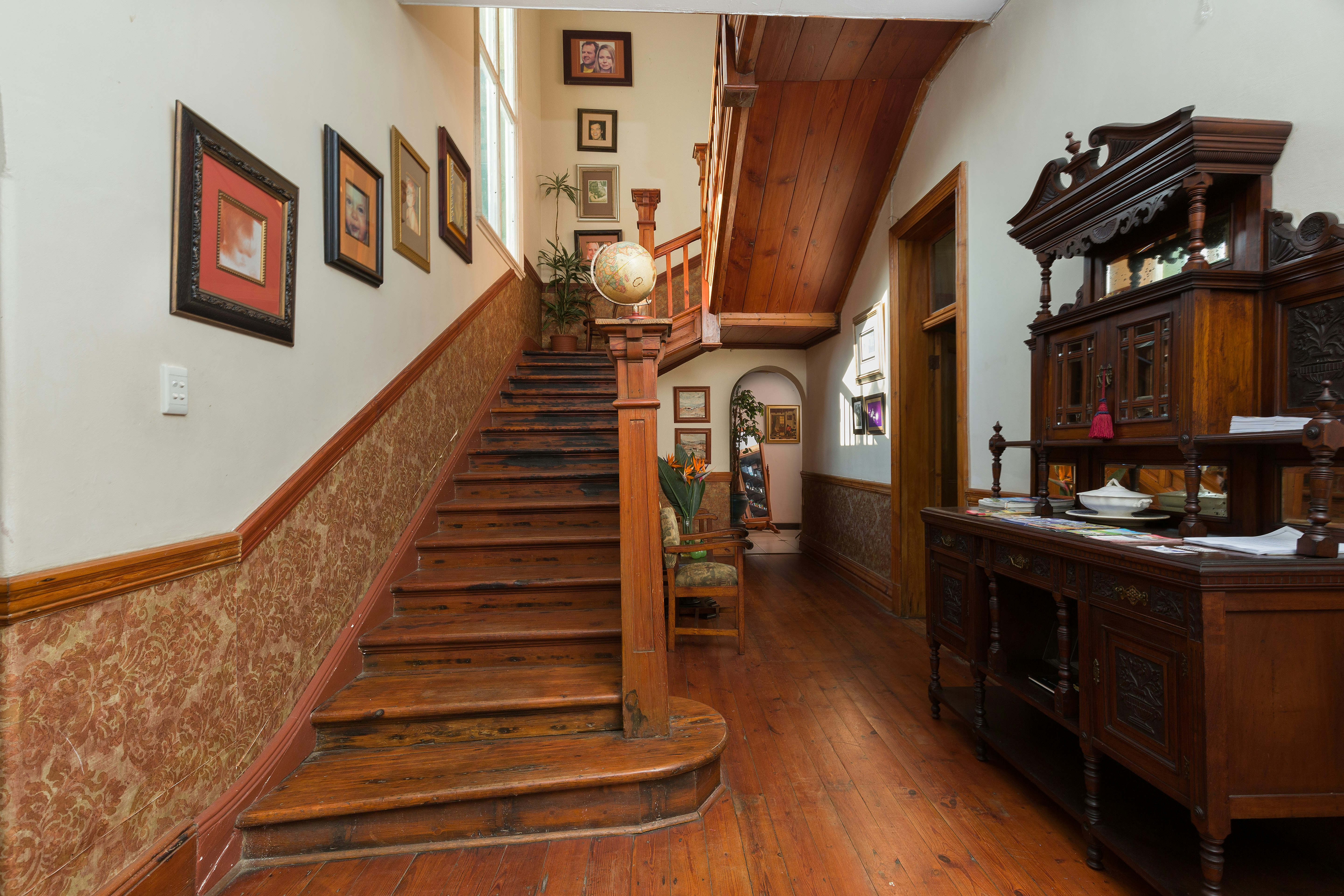 The large swimming pool looks down from the deck over the tall indigenous coastal dune forest. The wrap-around Victorian verandah is where breakfast is served in good weather, or alternatively in the formal dining room.
