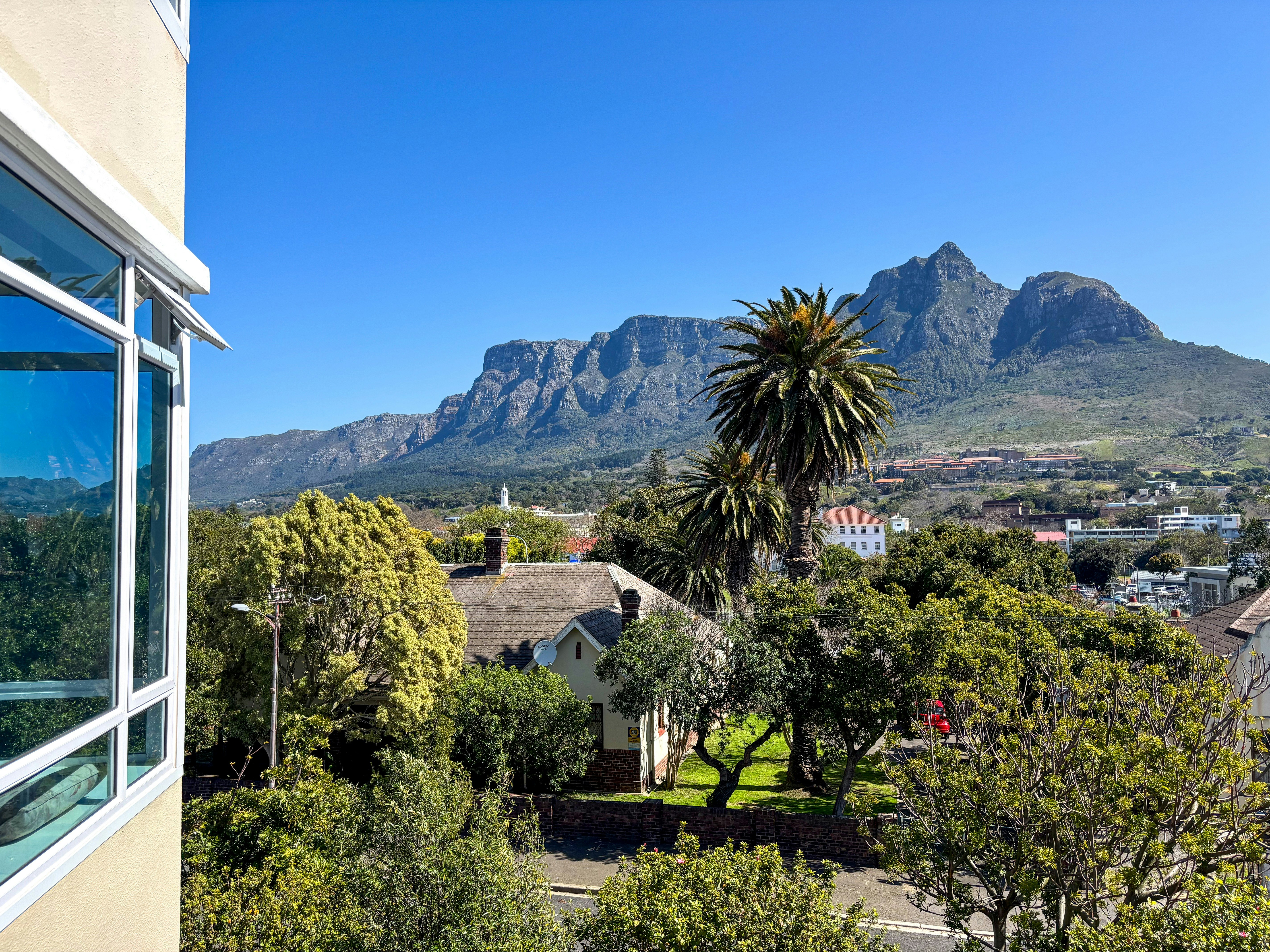 Die balkon spog met 'n ongelooflike uitsig oor Tafelberg. Veilige parkeerplek is in die kompleks beskikbaar.