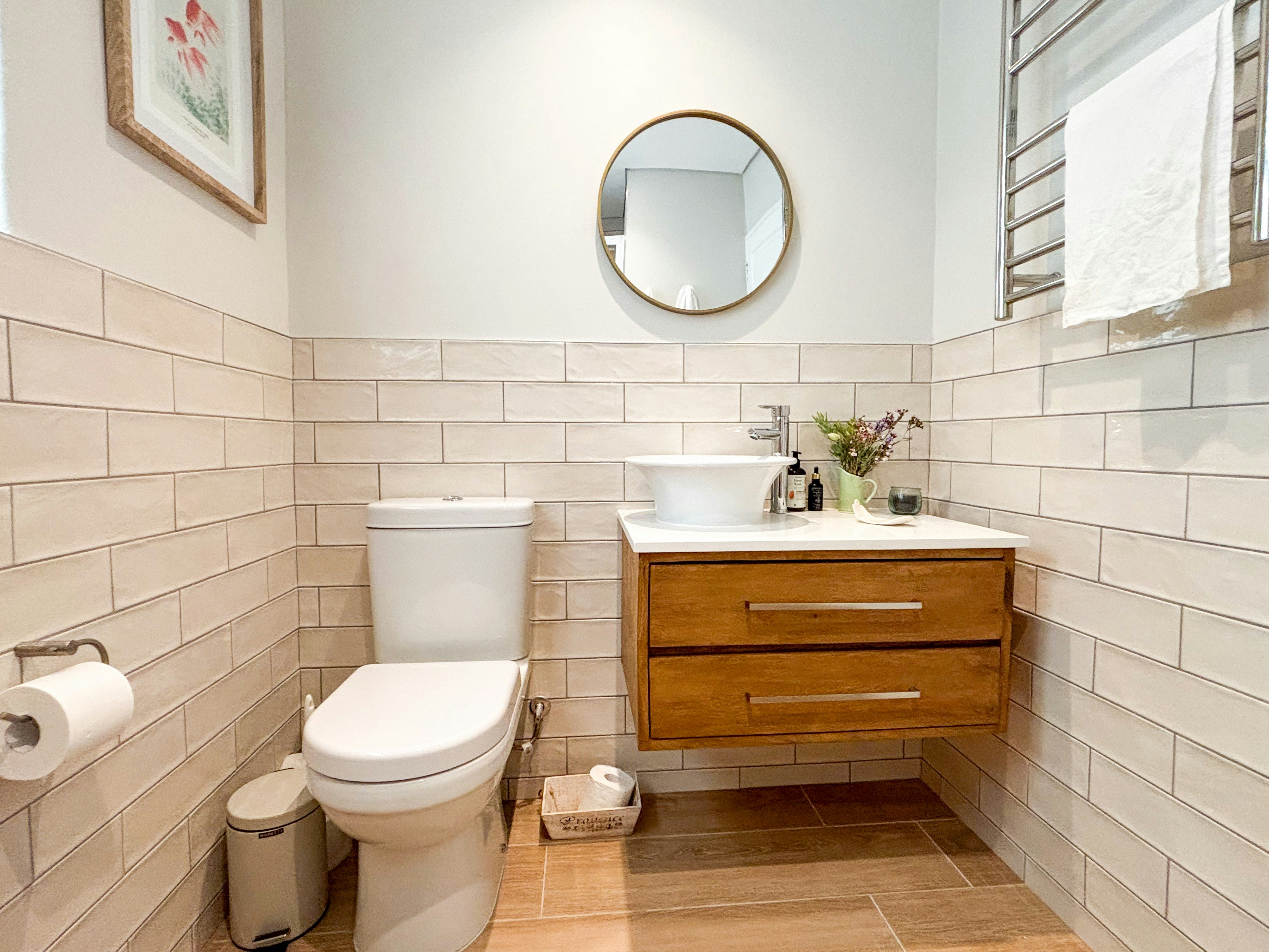 Dié woonstel beskik oor 2 slaapkamers en 'n badkamer met 'n stort, toilet en 'n wasbak. Daar is ook 'n aparte gastetoilet. Die hoofslaapkamer het 'n koninggrootte-bed. Die tweede slaapkamer het 'n dubbelbed.