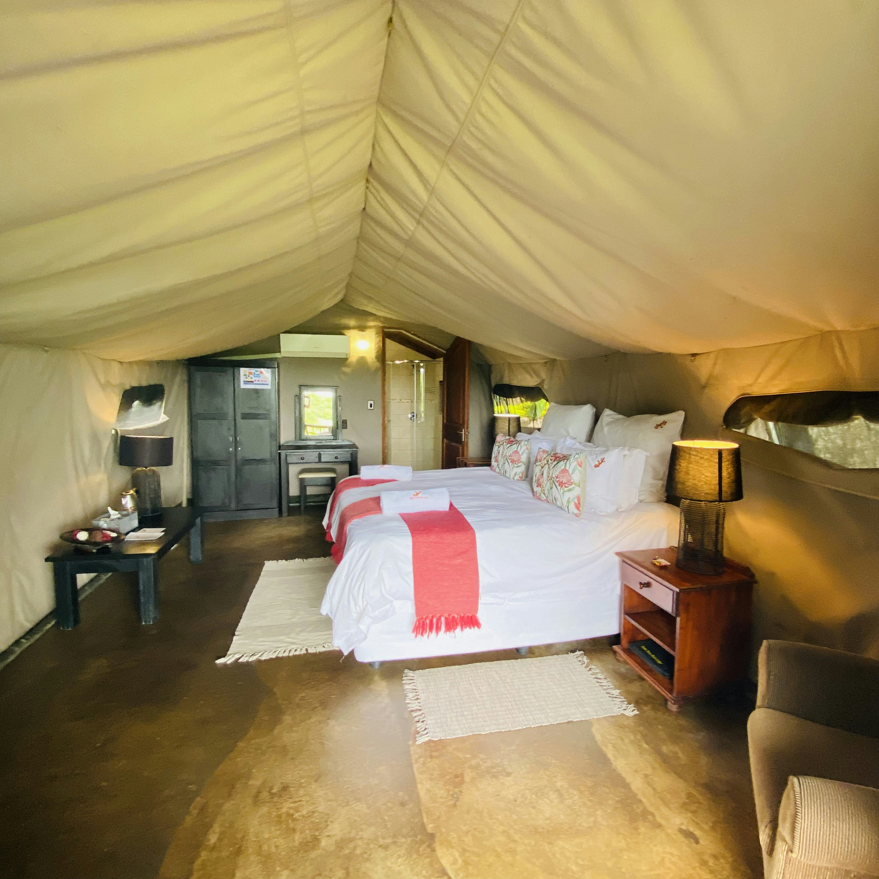 Sabie River Bush Lodge bied 9 Standaard Luukse En Suite-kamers met lugversorging en slaapplek vir maksimum 2 persone per kamer, 2 Luukse Gesinshutte met lugversorging en slaapplek vir 2 volwassenes en 2 kinders onder 12 jaar, 3 Luukse Lugversorgde Bostente met slaapplek vir 2 gaste, en 2 Luukse Rivierfront En Suite-tente met lugversorging en slaapplek vir 2 gaste.