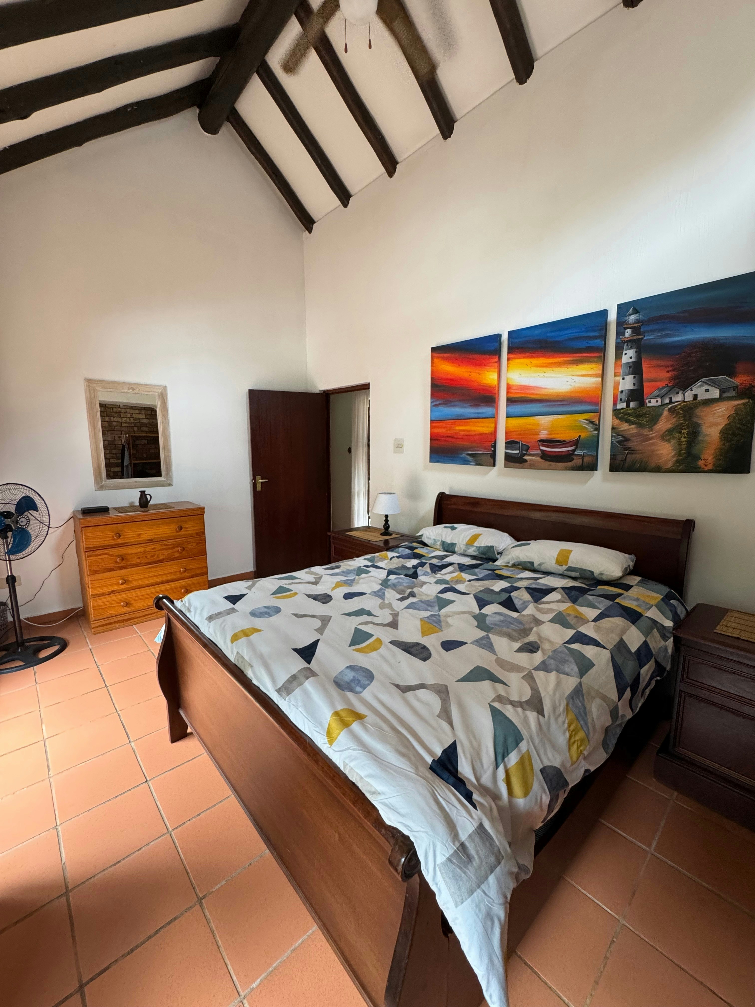 Dié vakansiehuis beskik oor 3 slaapkamers en 'n kothuis met 3 slaapkamers. Daar is 5 slaapkamers, elk met 'n koningingrootte-bed. Een van hierdie slaapkamers het 'n en suite-badkamer met 'n stort, toilet en wasbak. Daar is ook een slaapkamer met 2 enkelbeddens en 'n en suite-badkamer met 'n stort, toilet en wasbak. Boonop het 1 van die slaapkamers 'n enkelbed, 'n koningingrootte-bed en 'n en suite-badkamer met 'n bad, stort, toilet en wasbak.