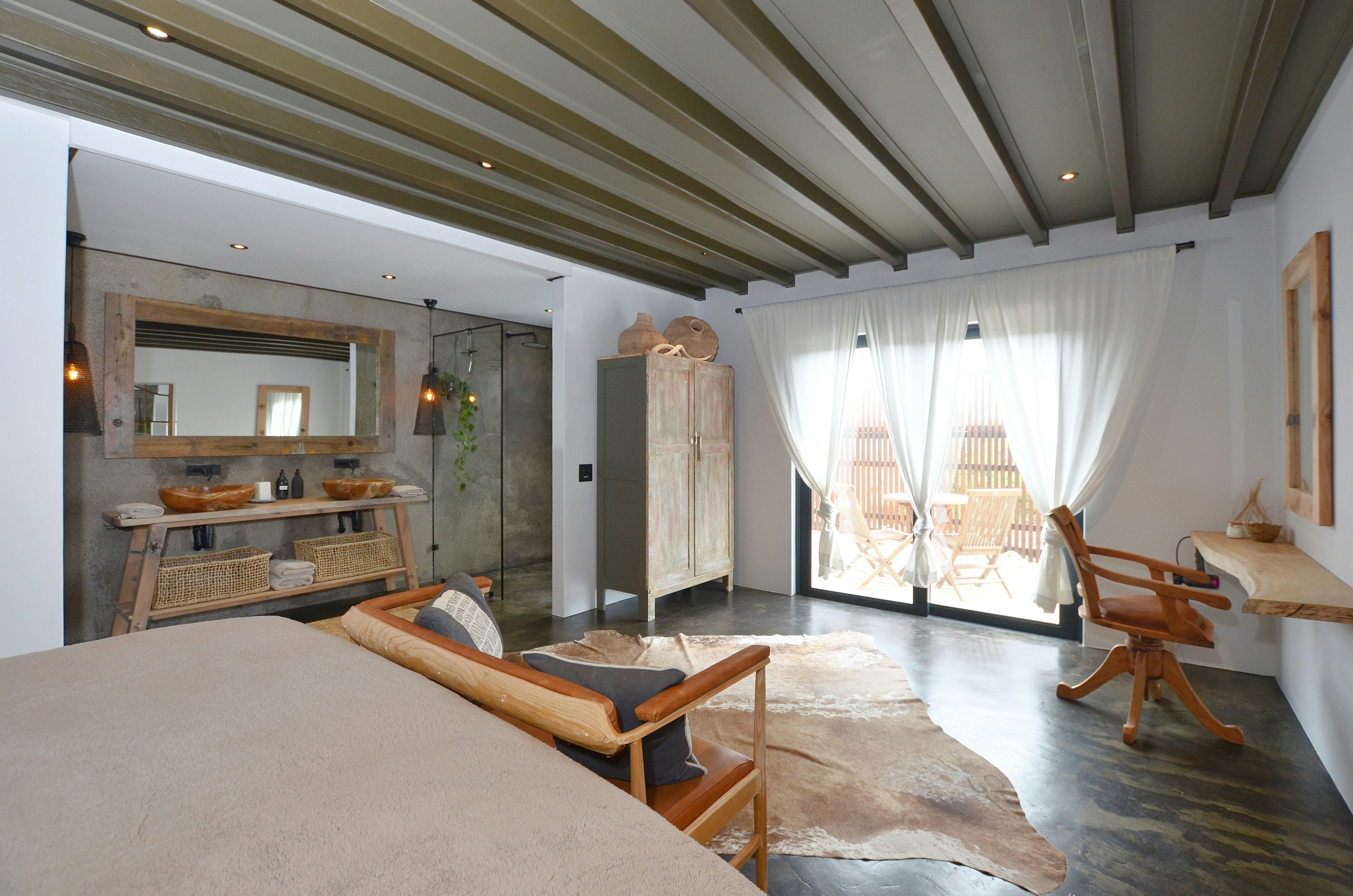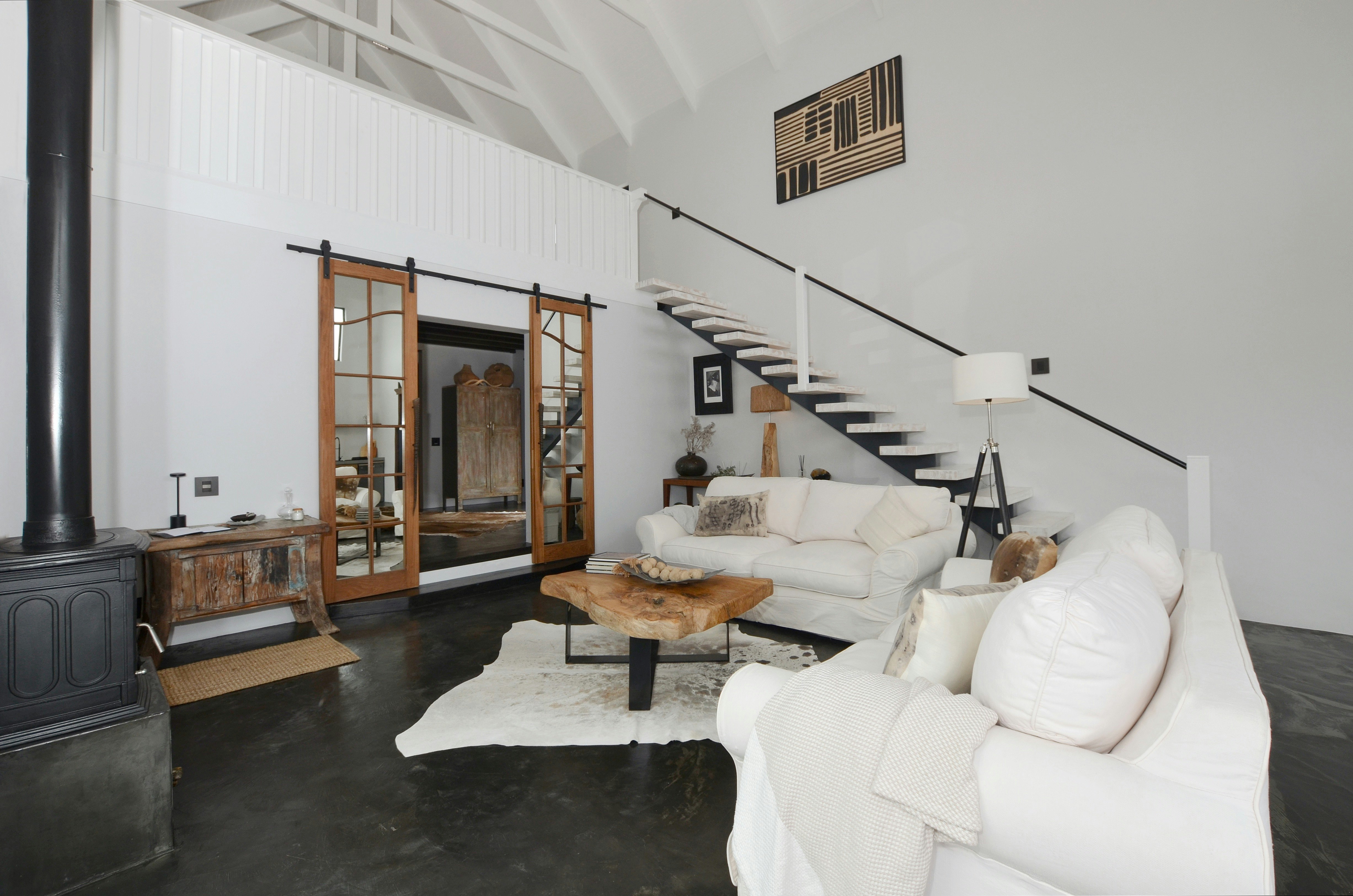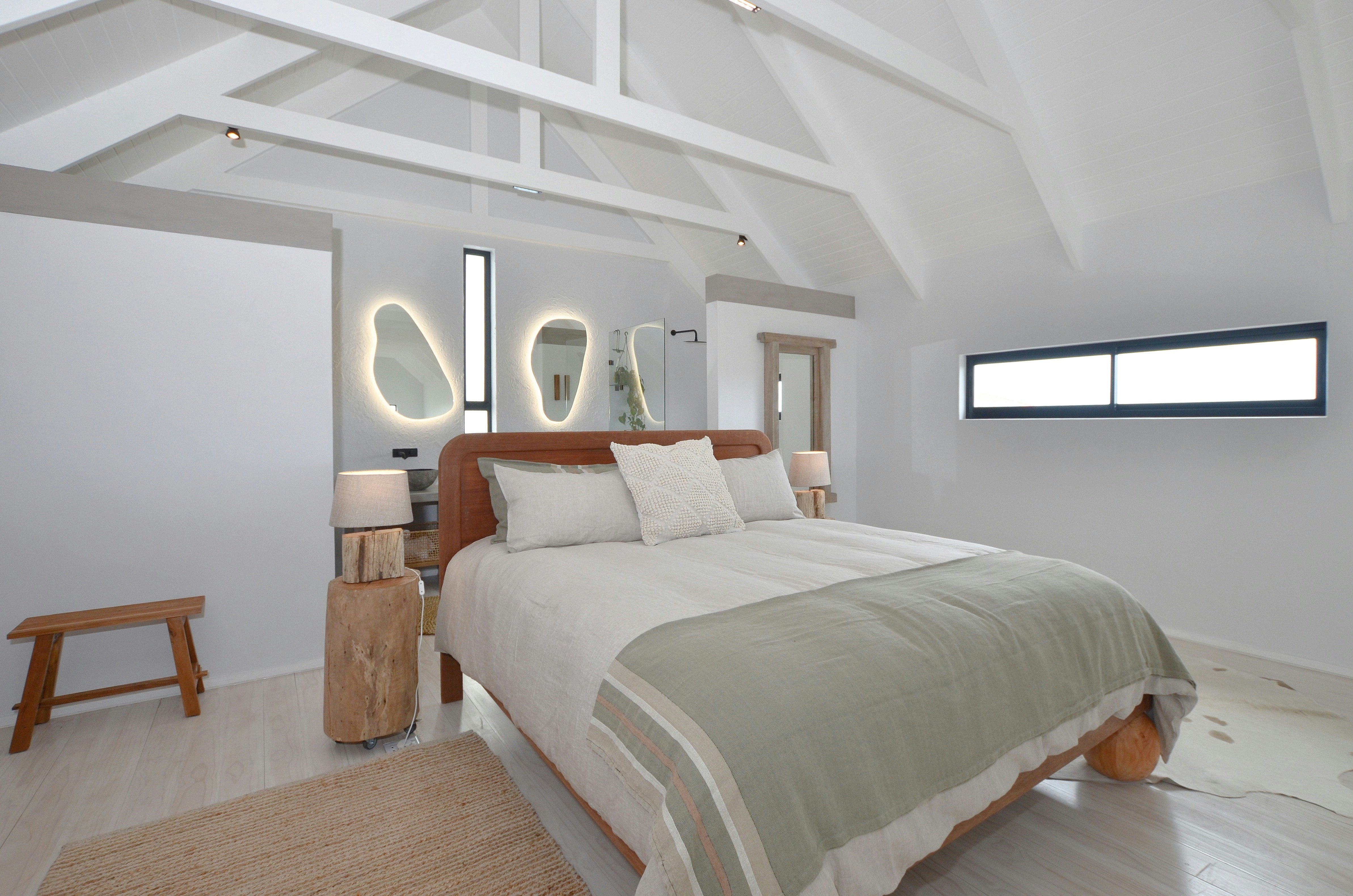 Hierdie huis bied slaapplek vir tot 4 gaste en 'n kleuter in 2 slaapkamers, elk met 'n en suite-badkamer. Die eerste slaapkamer is ingerig met 'n koninggrootte-bed en 'n bababedjie, terwyl die solderslaapkamer ingerig is met 'n koninggrootte-bed. Beide en suite-badkamers is toegerus met 'n stort, dubbelwasbak en toilet. Linne, bad- en swemhanddoeke word voorsien.