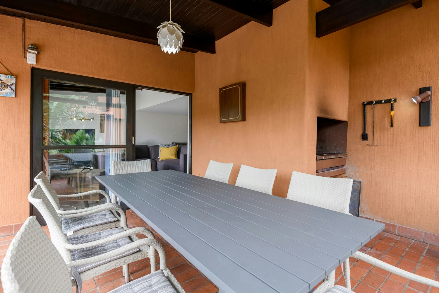 Die kombuis is ten volle toegerus met 'n gasstoof, oond, yskas-vrieskas en 'n mikrogolfoond. Die eenheid het ook 'n skottelgoedwasser, wasmasjien en 'n tuimeldroër. Die eetkamerarea het sitplek vir 8 mense en daar is ook gemaklike sitplek en 'n TV met 'n volle DStv-pakket in die sitkamer. Daar is 'n klein omsetter wat die TV, DStv en WiFi aan die gang hou. WiFi is beskikbaar. Die leefarea lei na 'n patio met buitemeubels en braaigeriewe.