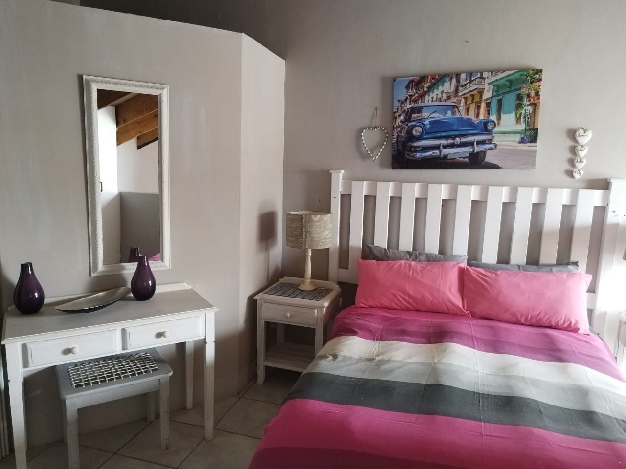 It has an open-plan kitchen and living area. The kitchen is fully equipped for self-catering with a stove, oven, fridge-freezer, microwave, and cutlery and crockery. There is also a breakfast bar with stools. The dining area has seating space for 6 people with a built-in braai area; while the lounge has a comfy lounge suite and a wall-mounted flat-screen TV with selected DStv channels. The complex has a communal swimming pool. Please bring your own bath and swimming towels.