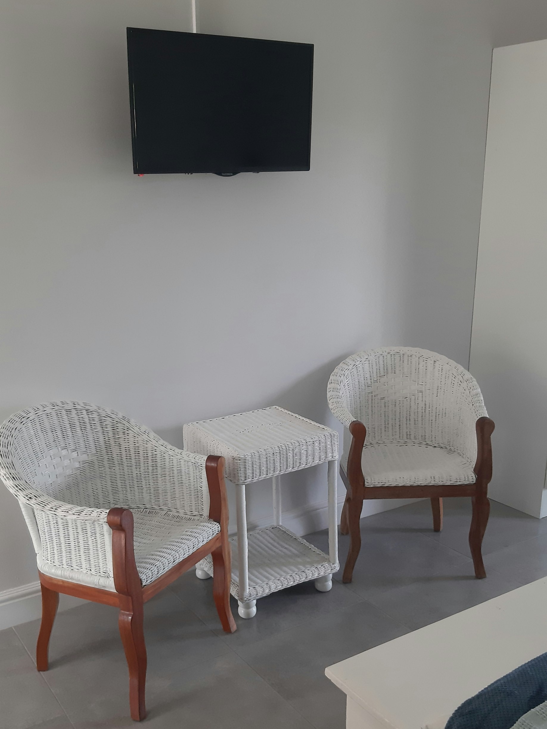 Die kombuisie is toegerus met basiese kookgeriewe, insluitend 'n yskas-vrieskas, mikrogolf, ketel, eetgerei en breekware. Daar is 2 stoele en 'n platskerm-TV met 'n verskeidenheid DStv-kanale. Wi-Fi internet is beskikbaar.