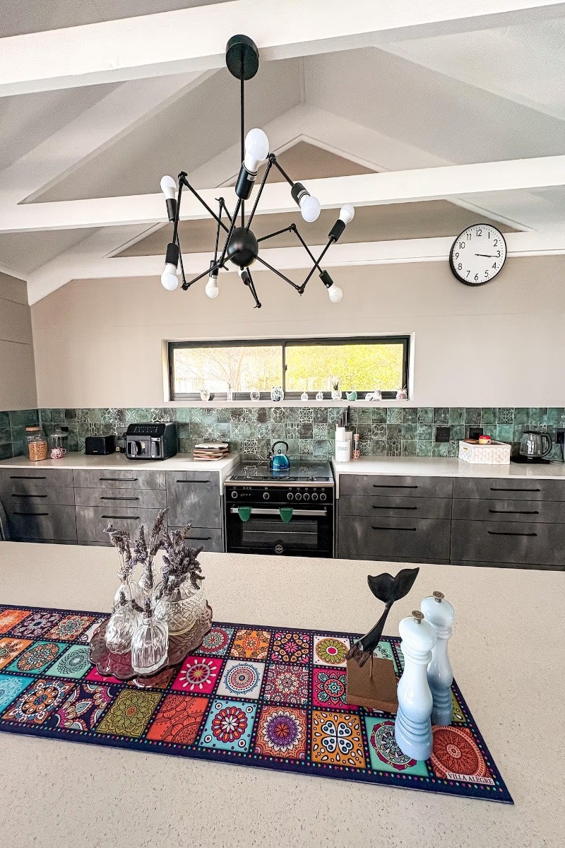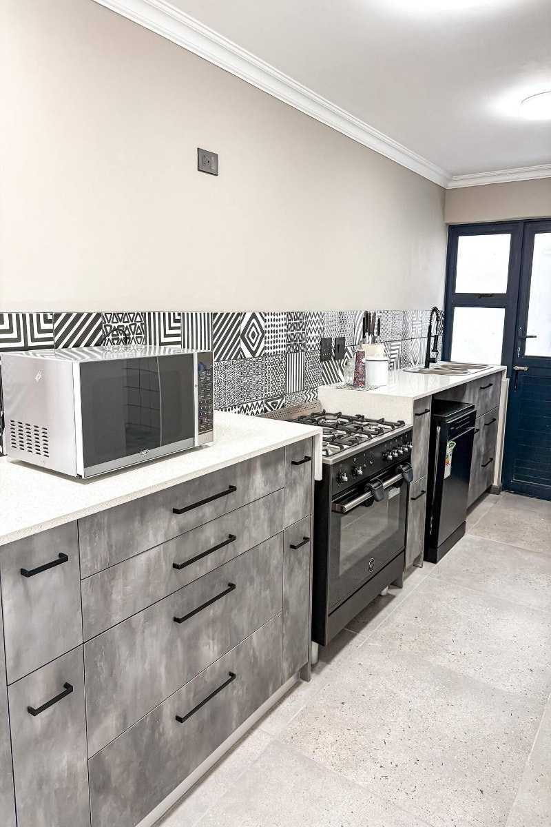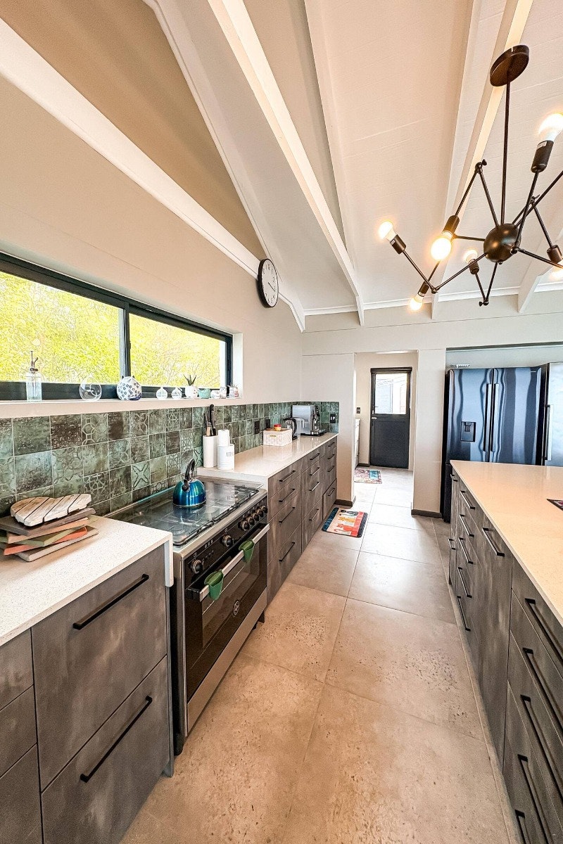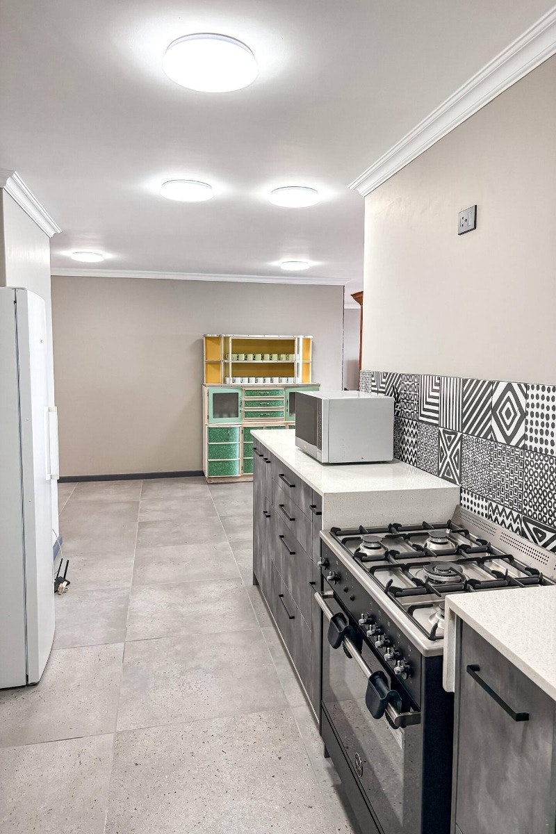 Die ruim oopplan-leefarea sluit 'n moderne kombuis in wat toegerus is met 'n yskas-vrieskas, gasstoof, oond, mikrogolfoond, eetgerei en breekware, en tee- en koffiemaakgeriewe. 'n Skottelgoedwasser is ook in die opwaskamer beskikbaar vir ekstra gerief. Aangrensend aan die kombuis is 'n eetkamertafel met 12 sitplekke wat moeiteloos in die gemaklik gemeubileerde sitkamer vloei, kompleet met 'n slim-TV met stromingsdienste en asemrowende see-uitsigte. Gratis WiFi is ook beskikbaar.