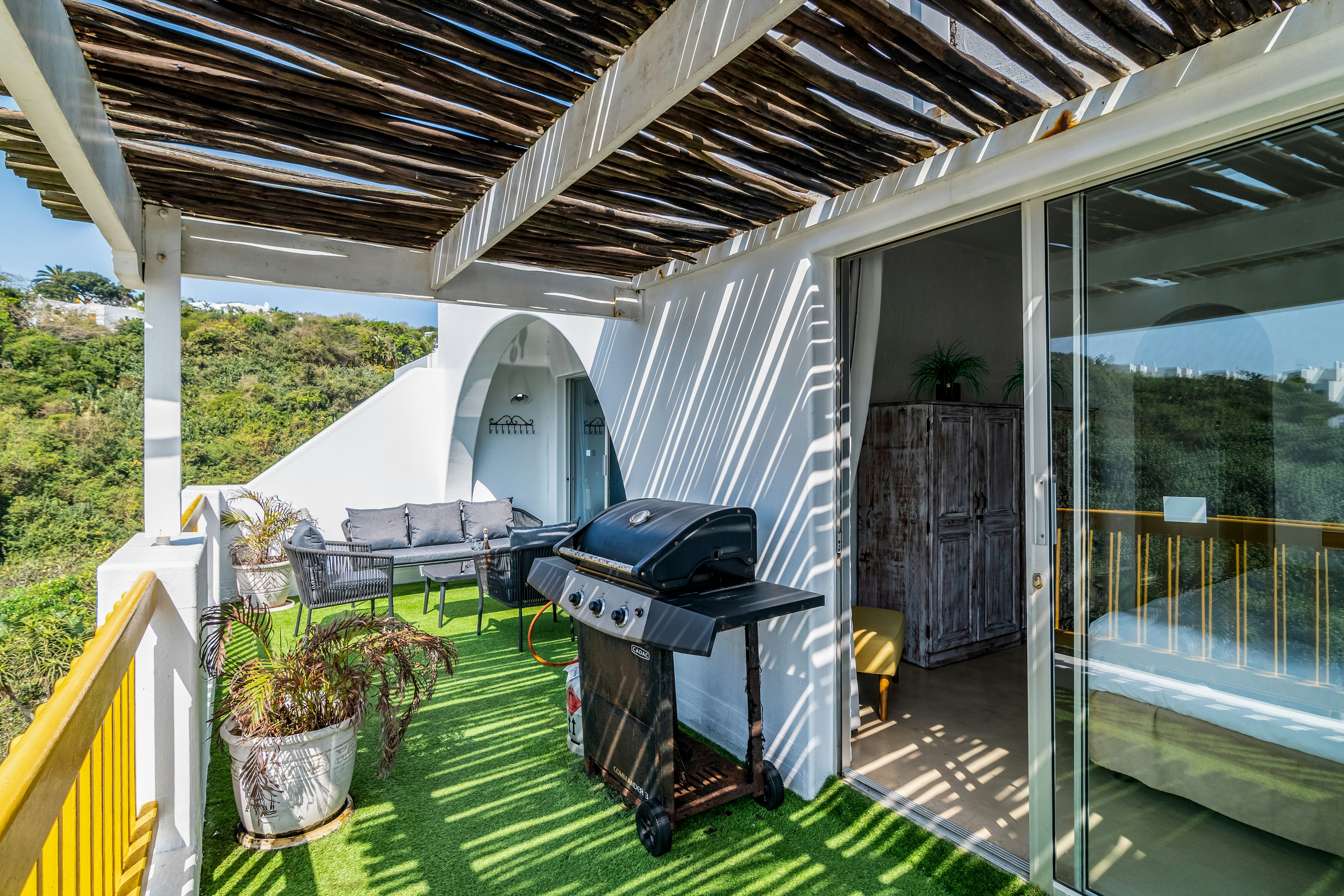 Die leefarea lei na 'n stoep met sitplek, 'n draagbare gasbraai en 'n see-uitsig in die verte. Gaste het ook toegang tot die kompleks se geriewe wat 6 gemeenskaplike swembaddens, gemeenskaplike braaigeriewe, 'n walviskykdek, 'n klimraam, staproetes en direkte toegang tot 2 aparte strande wat met trappe bereik word, insluit. Gaste het ook toegang tot 'n enkeltoesluitmotorhuis en beperkte besoekersparkeerplek.