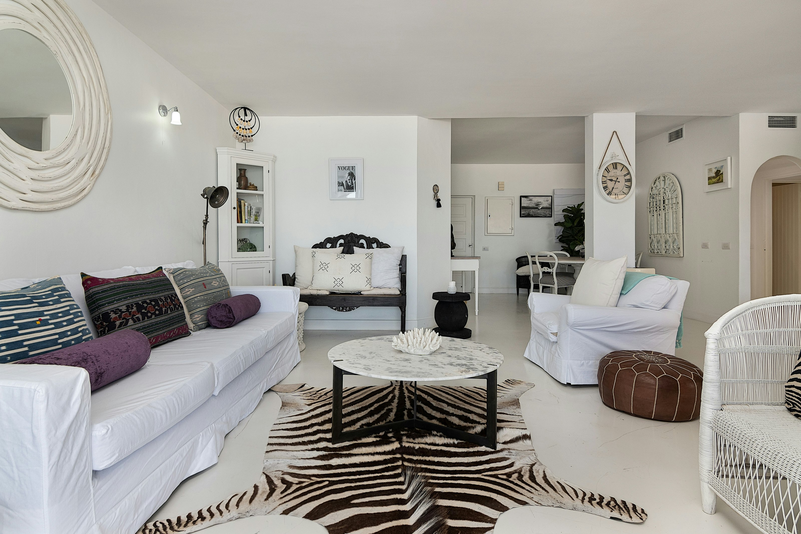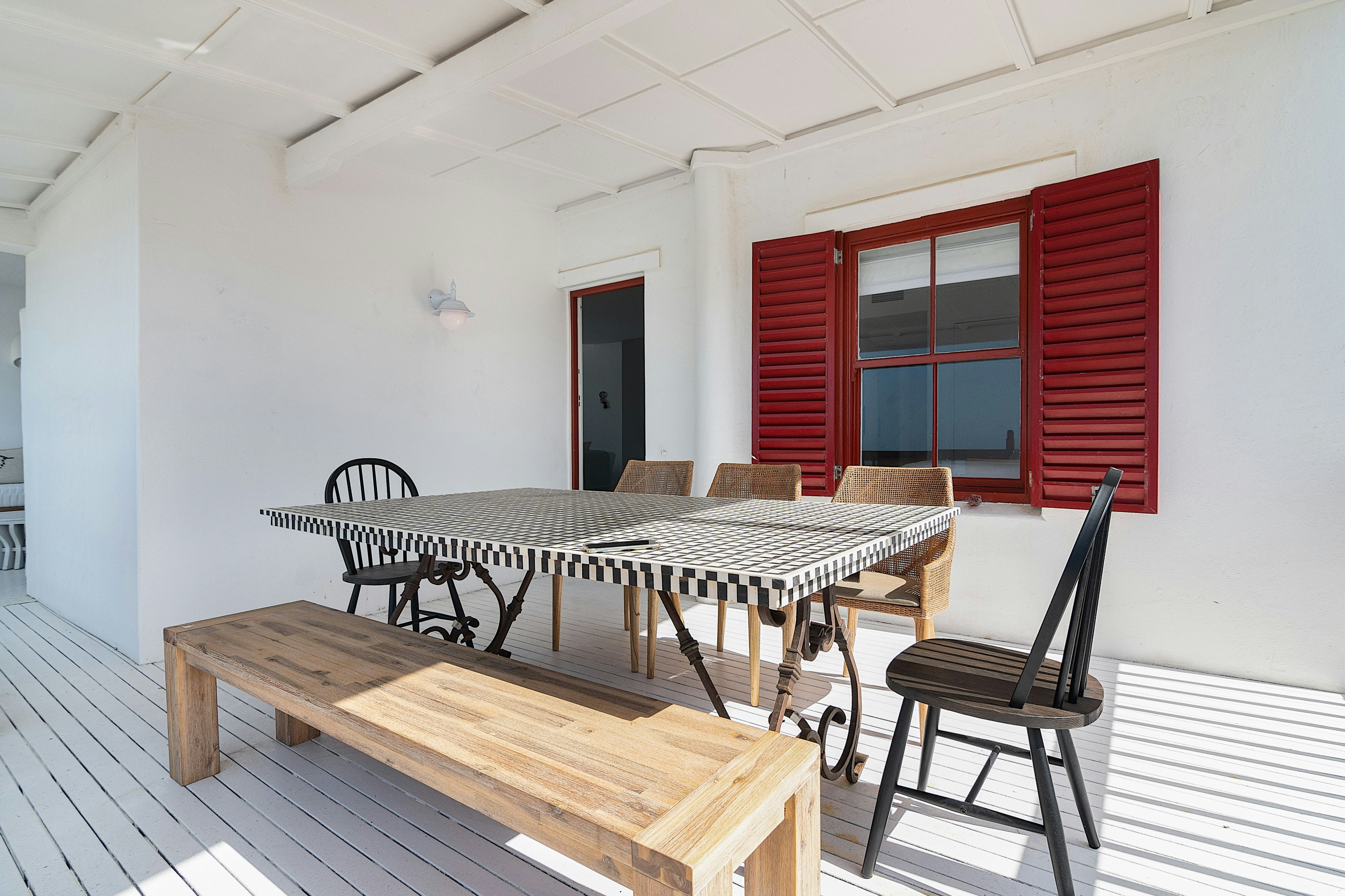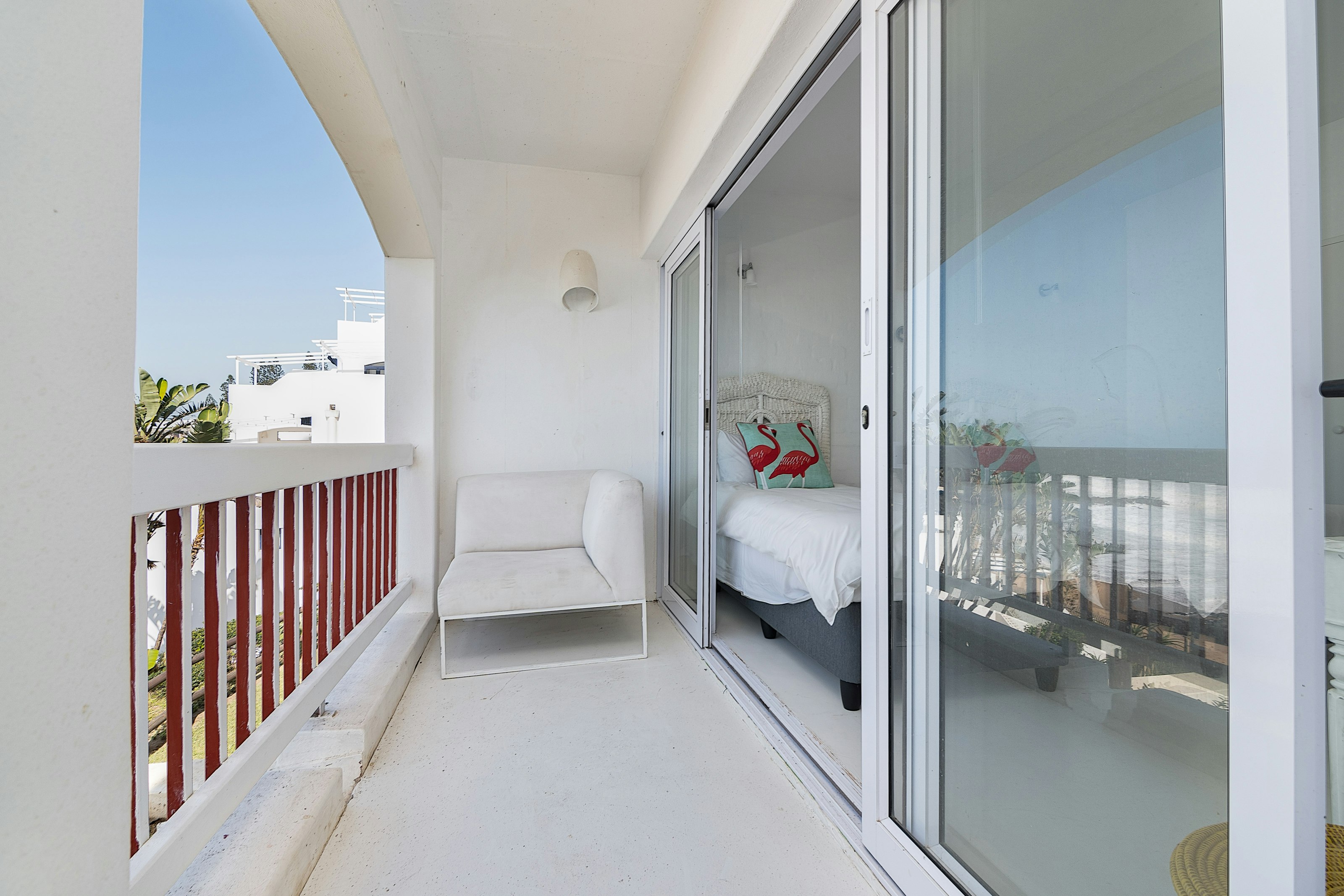 Die sitarea se skuifdeure lei na die balkon met 'n see-uitsig, sitplek en 'n houtskoolbraai.