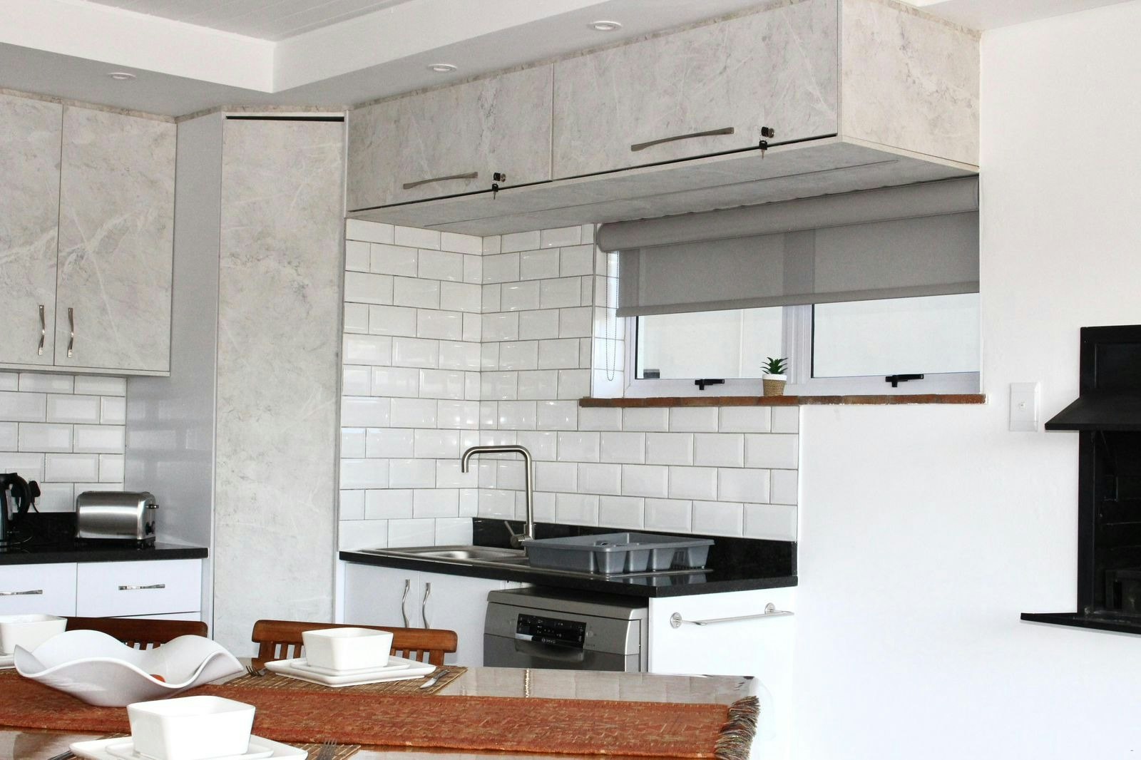 Die oopplan-kombuis is met 'n yskas-vrieskas, gasstoof, oond, mikrogolf, skottelgoedwasser, eetgerei, breekware, tee- en koffiemaakgeriewe en 'n etenstafel toegerus. Die leefarea het 'n rusbank, TV en 'n ingeboude binnebraai. WiFi is beskikbaar.