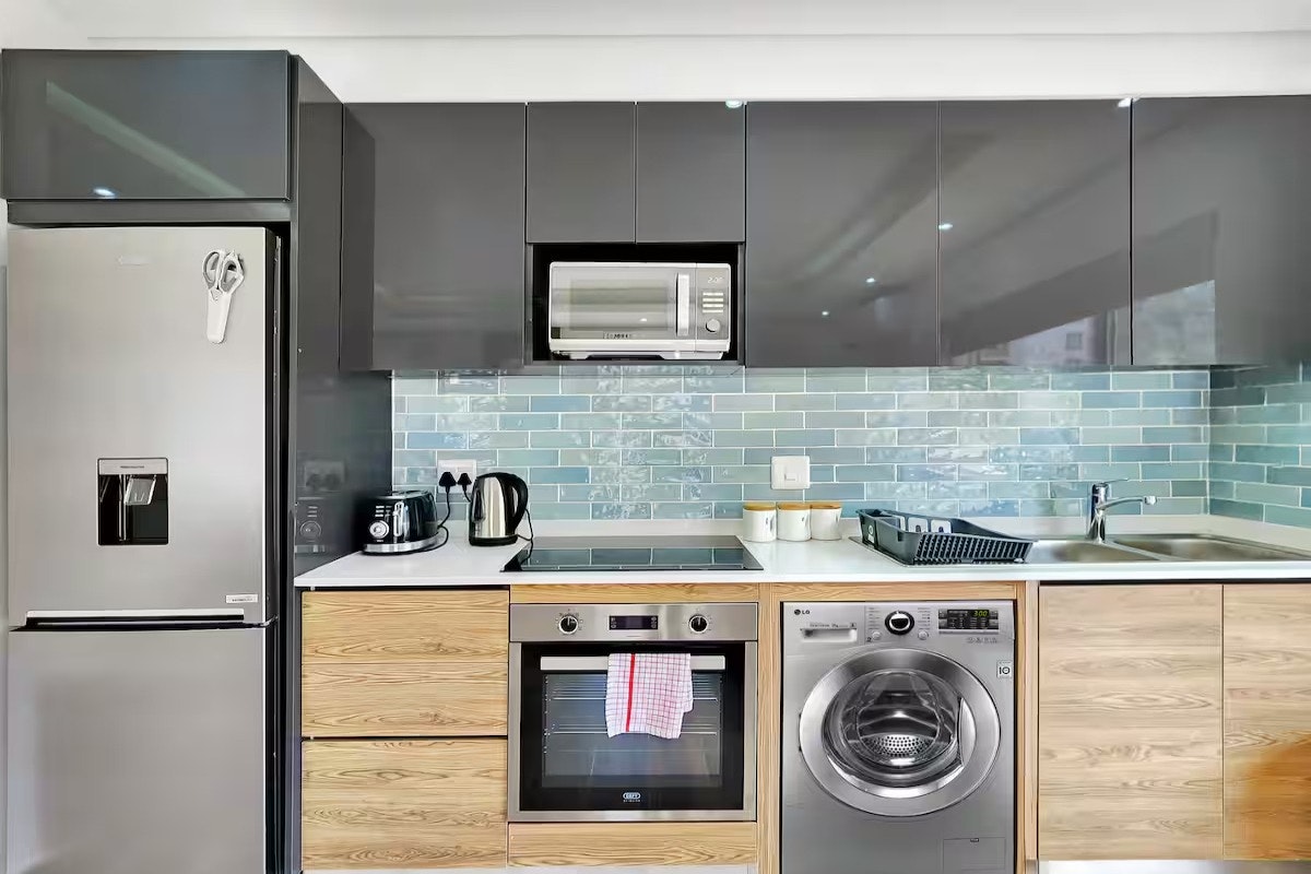 Die leefarea sluit 'n moderne kombuis in wat toegerus is met 'n yskas-vrieskas, stoof, oond, mikrogolfoond, eetgerei en breekware, en tee- en koffiemaakgeriewe, sowel as 'n wasmasjien vir ekstra gerief. Aangrensend aan die kombuis is 'n eetarea met 'n tafel vir 4 en 'n knus sitkamer met gemaklike sitplek, 'n slim-TV met stromingsdienste, en WiFi-toegang beskikbaar regdeur.