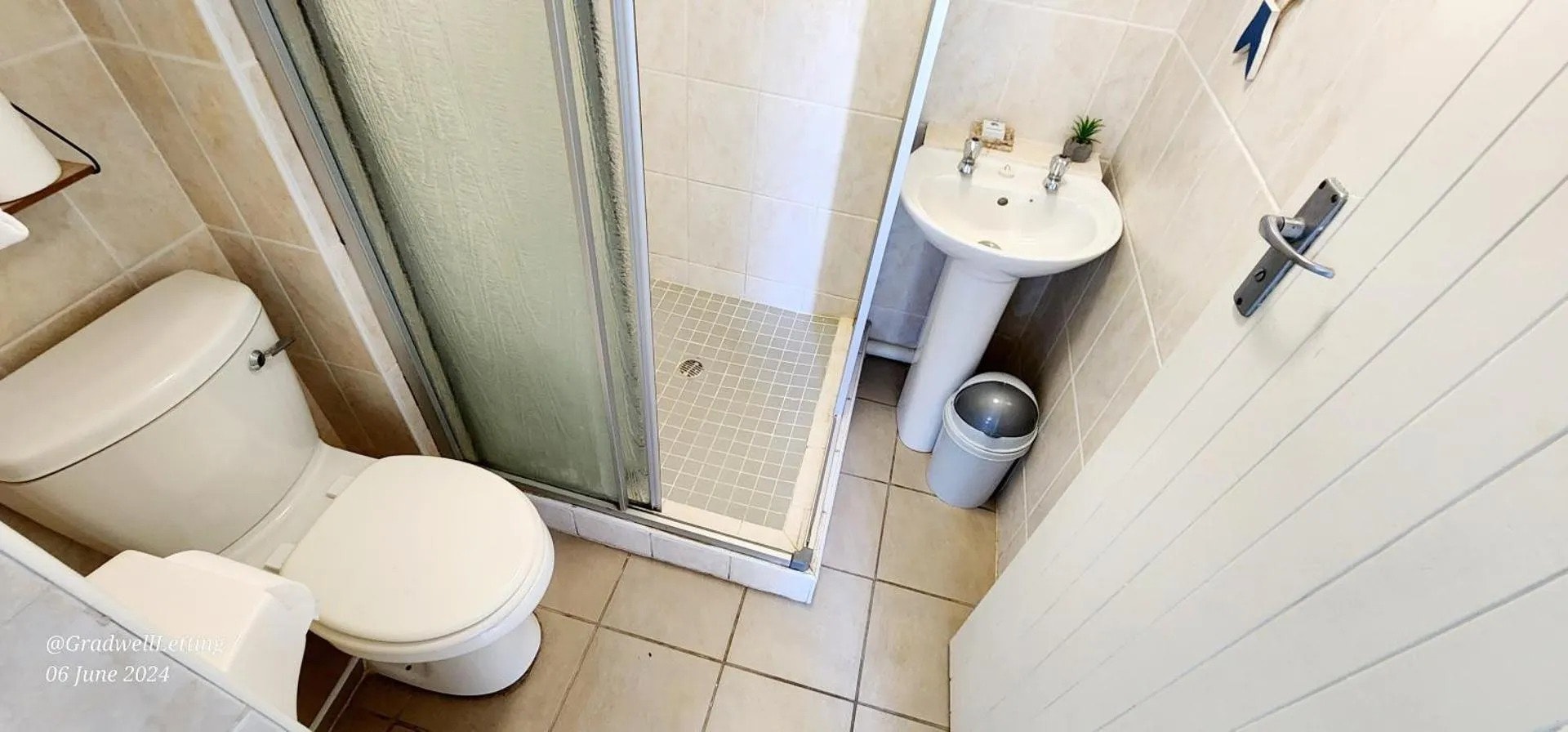 The apartment comprises 2 en-suite bedrooms and can accommodate 5 guests. The first bedroom has a king-size bed and an en-suite bathroom with a bath, washbasin and toilet, while the second bedroom has 2 single beds and an en-suite bathroom with a shower. All linen and bath towels are provided.
