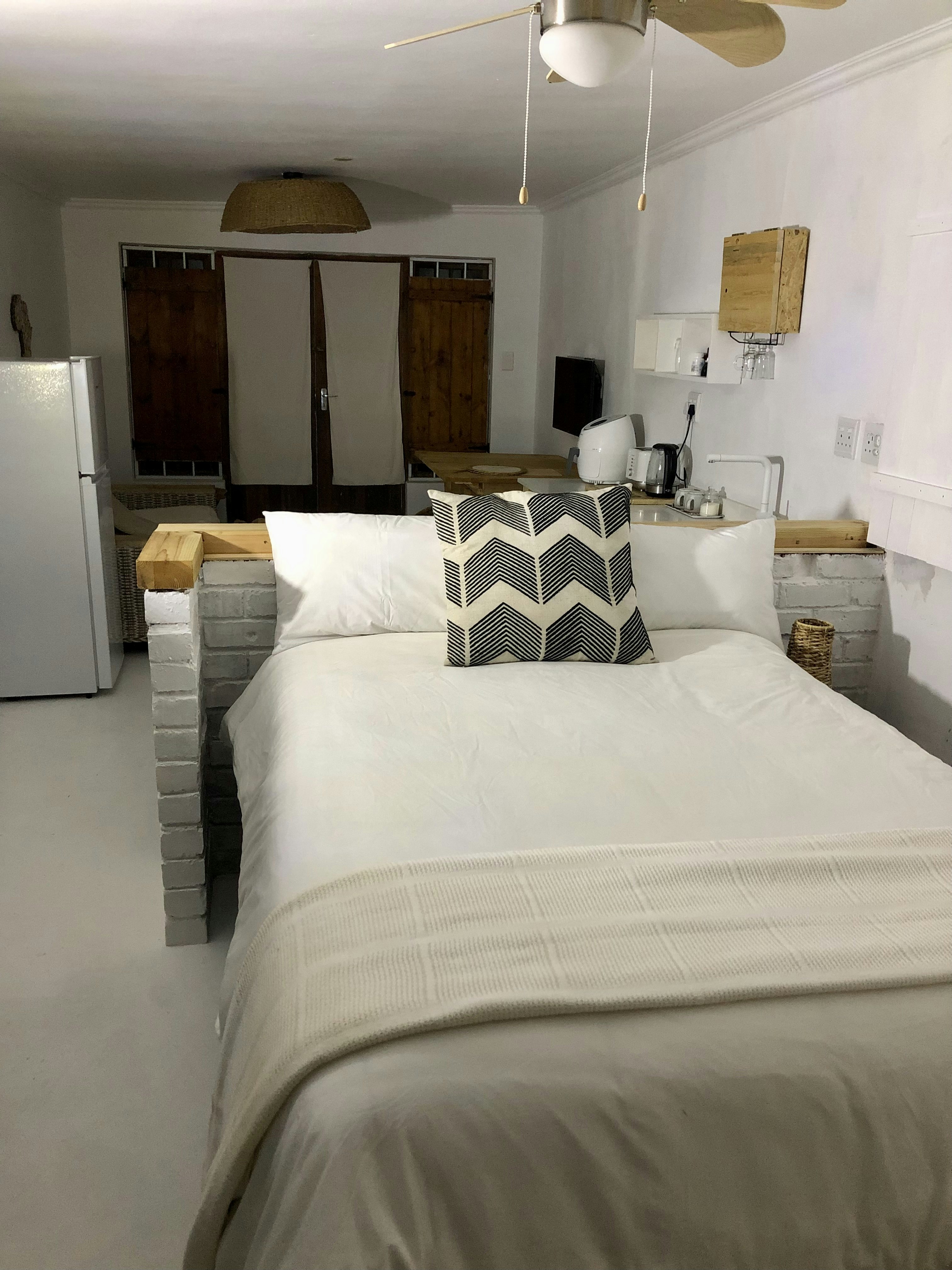 Die grondvloer-eenheid is ideaal vir 'n paartjie of 'n enkelreisiger en beskik oor 'n oopplan-ontwerp wat bestaan uit leefarea en toegeruste kombuis, 'n koningingrootte-bed en en suite-stort.