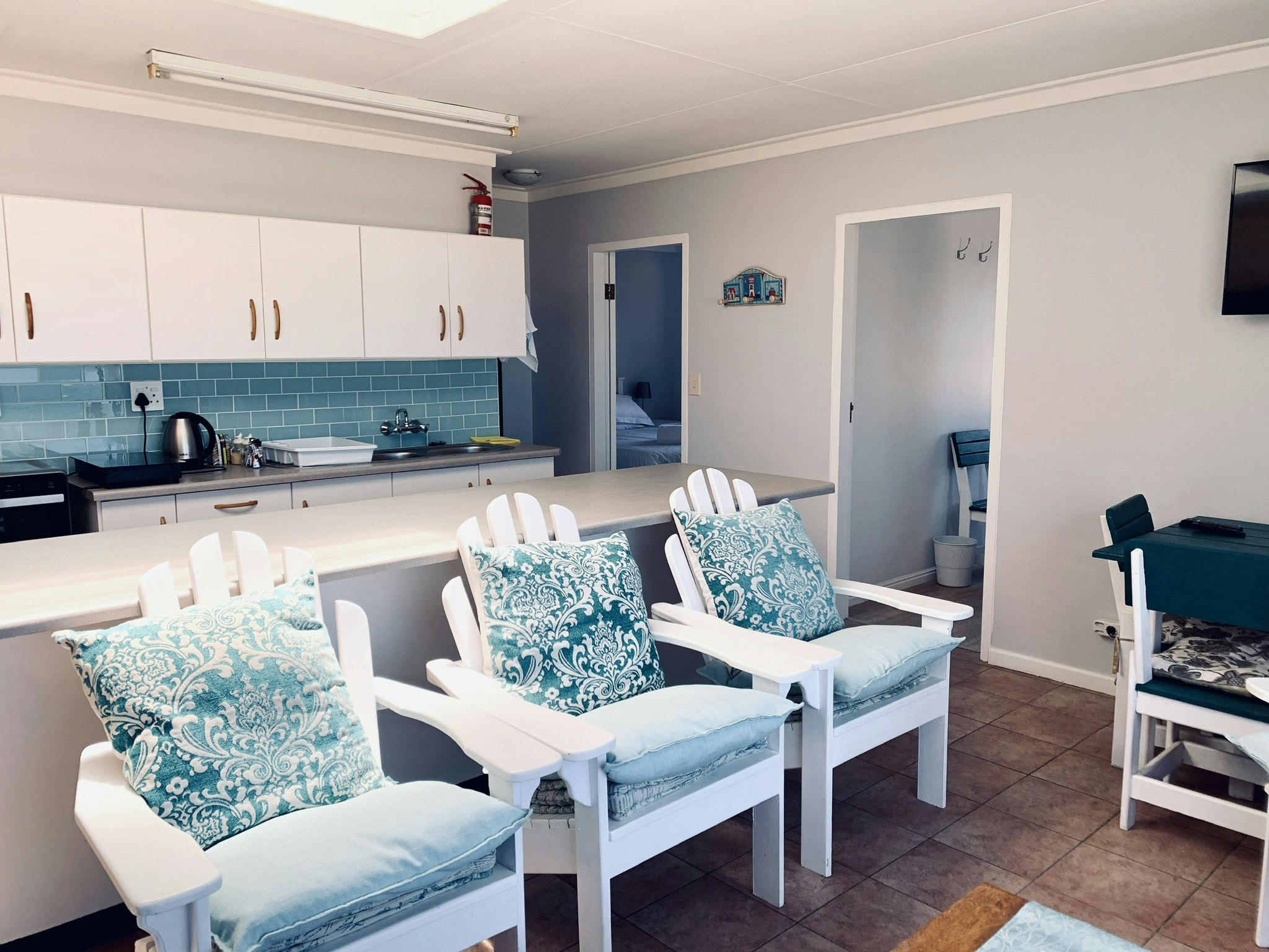 Die kamers het elk gemaklike beddens, gehaltelinne, badhanddoeke en 'n privaat ingang. Albei eenhede het geriewe soos tee- en koffiemaakgeriewe, 'n TV met DStv en 'n klein balkon met 'n see-uitsig. Die hoofhuis beskik oor 4 slaapkamers en 3 badkamers en die woonstel beskik oor 2 slaapkamers en 'n badkamer. Elke eenheid bied toegang tot 'n privaat, ingeboude binnebraai, 'n kisvrieskas en wasgeriewe.