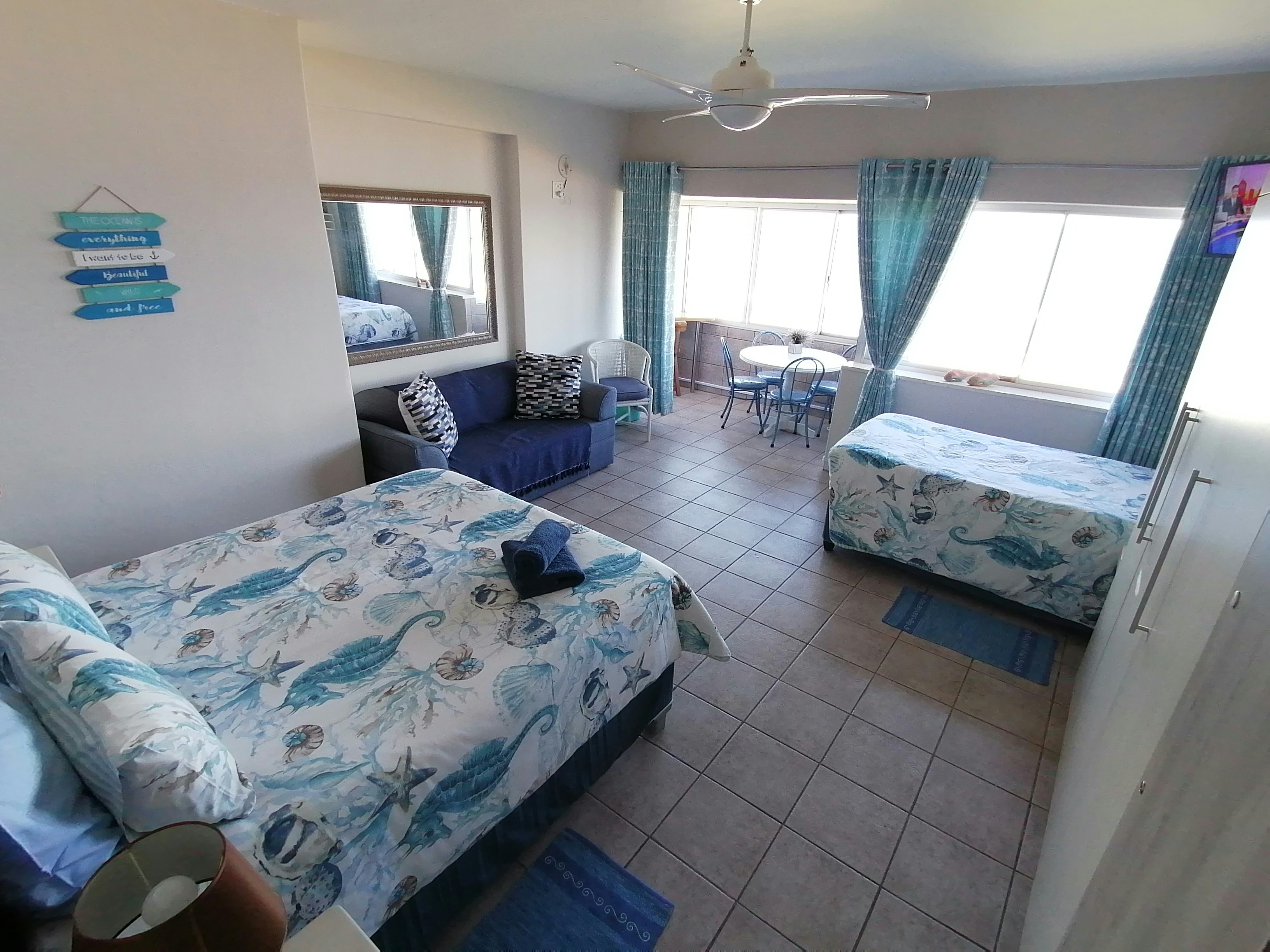 Die woonstel kyk uit oor die see en strand en beskik oor 'n gekombineerde leef- en slaaparea, 'n privaat badkamer en 'n aparte kombuis. Die slaaparea het 'n koningingrootte-bed, 'n enkelbed en 'n enkelslaapbank. Die badkamer het 'n stort en 'n toilet. Die woonstel het plafonwaaiers.